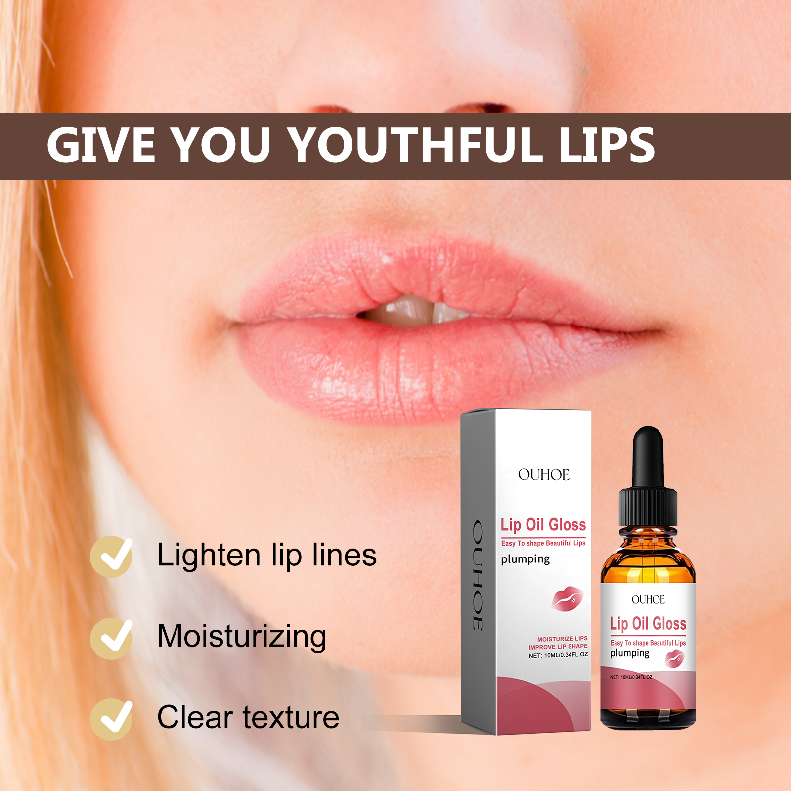 OUHOE Lip Oil Gloss, Moisturizing And Hydrating Lip Care Lighten Lip Lines Hydrating And Anti-Cracking Essential Oil