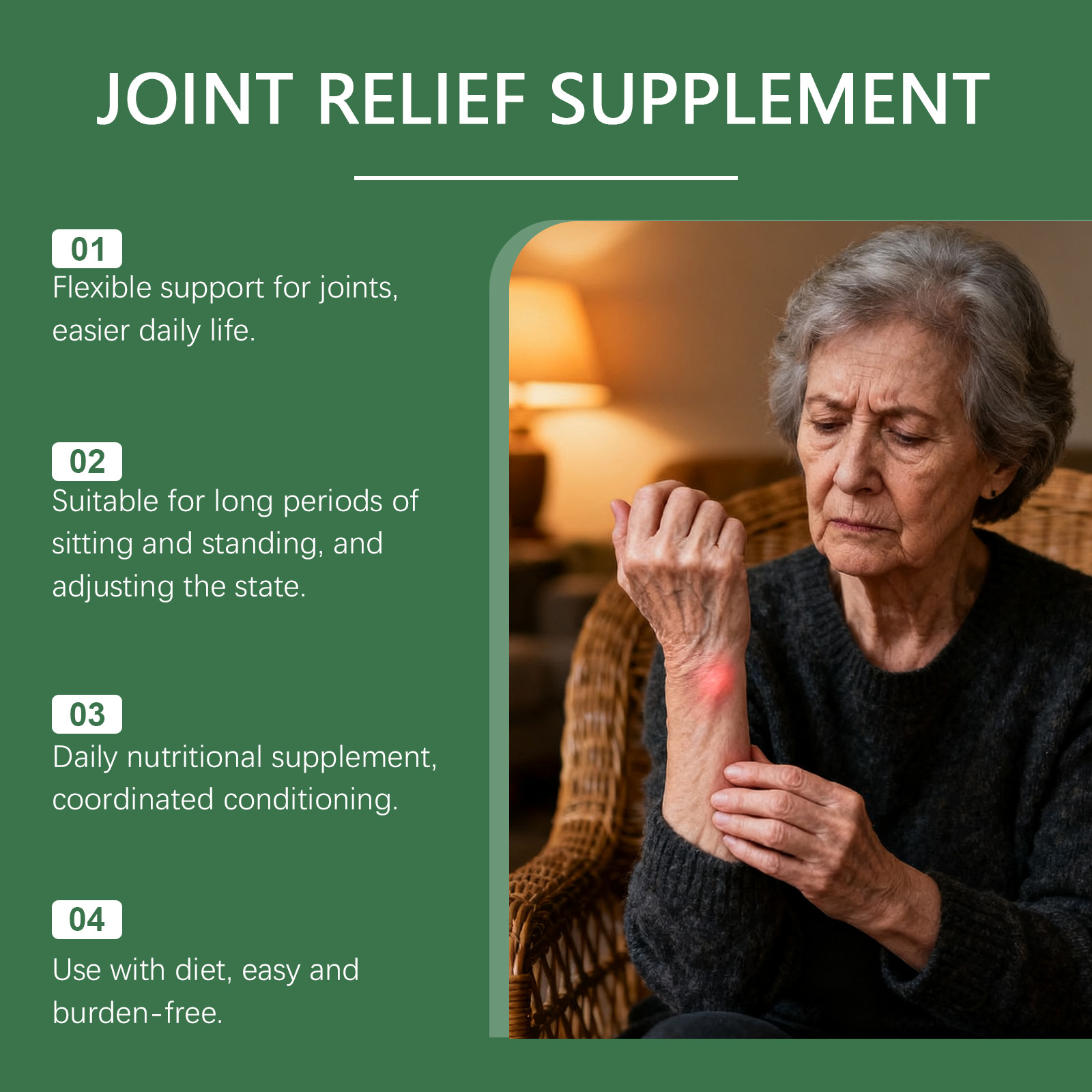 我们的辣木全合一补充剂,由明胶胶囊、玉米淀粉精心调配而成。专为免疫支持平衡状态,支持软骨,健康功能设计。使用方法极为便捷:一天一次4粒,餐前30分钟服用,用水送服。并且它可以缓解关节,不适感受,促进关节,代谢循环。