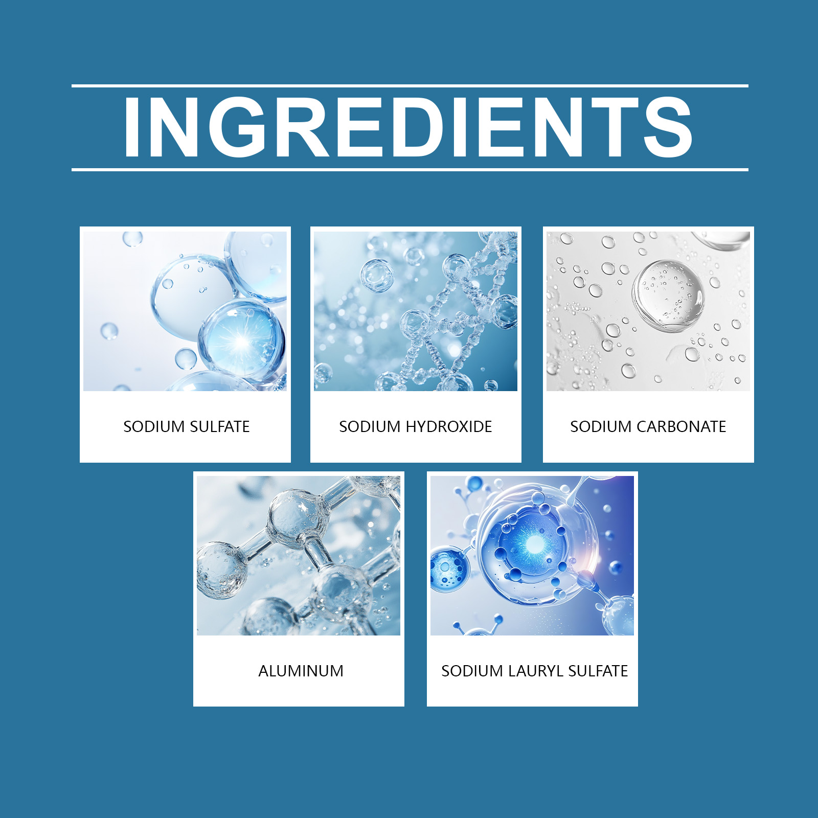我们的管道疏通粉,由硫酸钠、氢氧化钠精心调配而成。专为创新的快速溶解配方可瞬间分解顽固堵塞,迅速溶解如头发、油脂和皂垢等粘性污渍,有效恢复管道畅通,强大的清洁技术可深层清洁管道,分解长期积聚的油脂和污垢,防止二次堵塞并延长管道寿命设计。使用方法极为便捷:打开瓶盖,将适量本产品倒入管道中。等待15分钟让污垢溶解,然后用大量热水冲洗。并且它可以有助于溶解有机污渍,加速清洁过程并蒸发它们而不留下任何残留物。