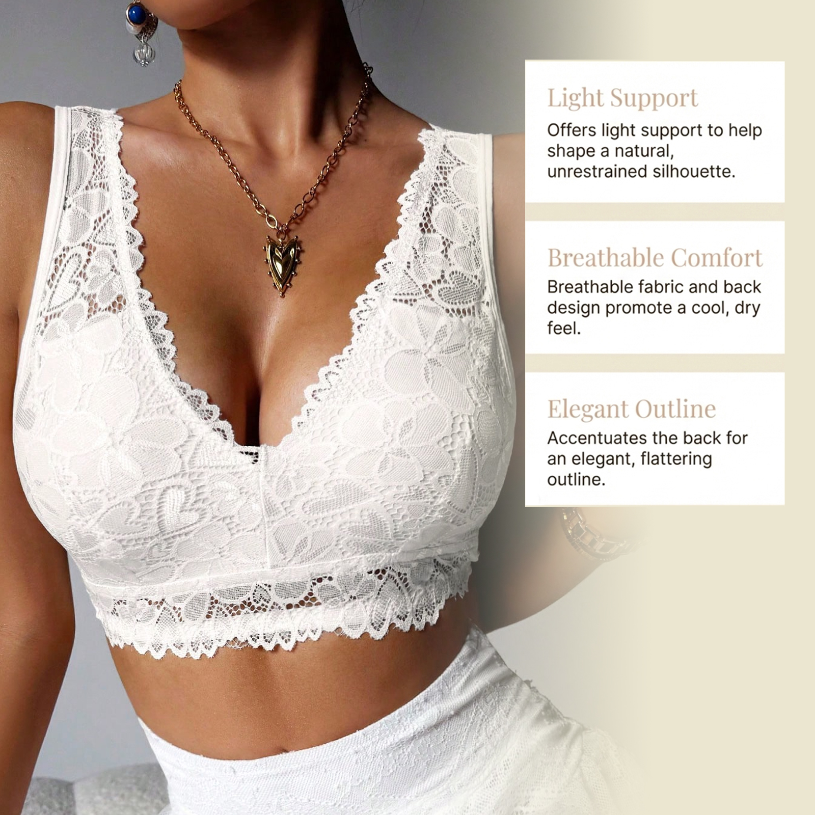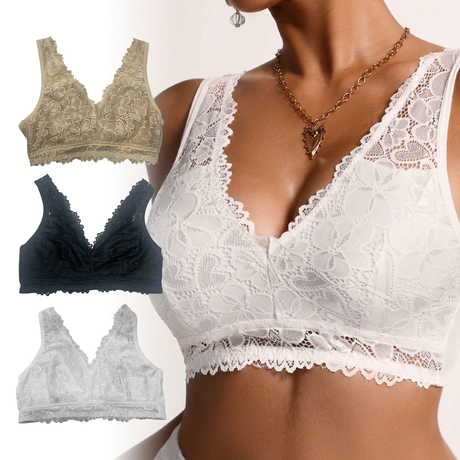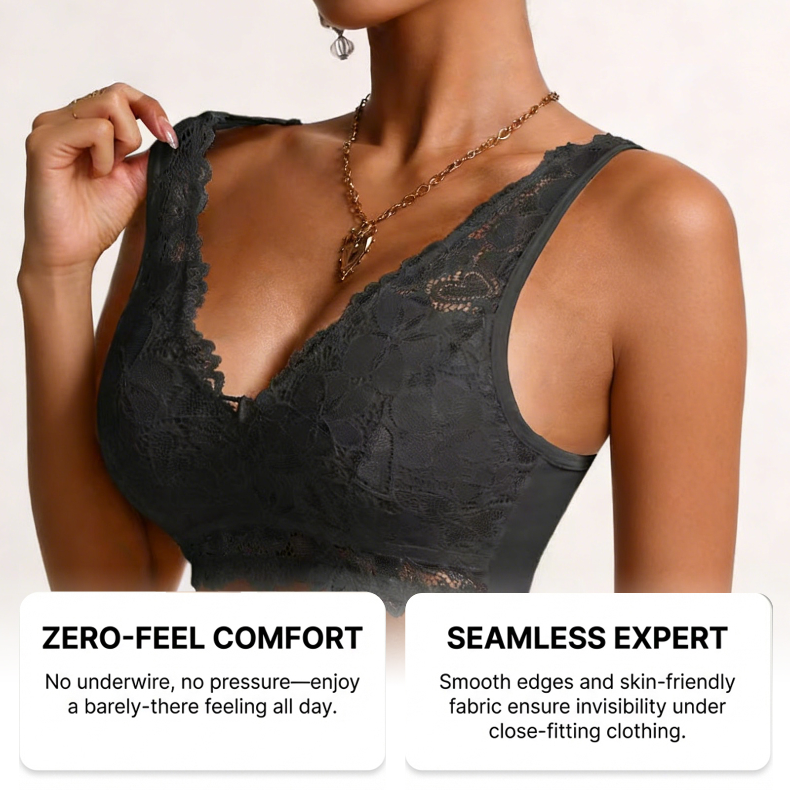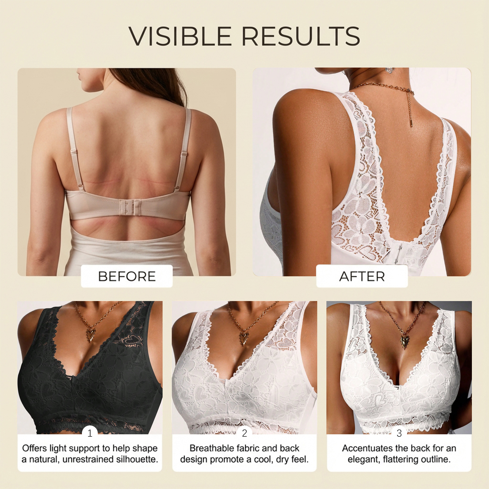 Zeriluna Sexy Lace V-Neck Bra, Skin-Friendly And Breathable Design, Fashionable Gathering, Comfortable And Seamless, Beautiful Back Bra