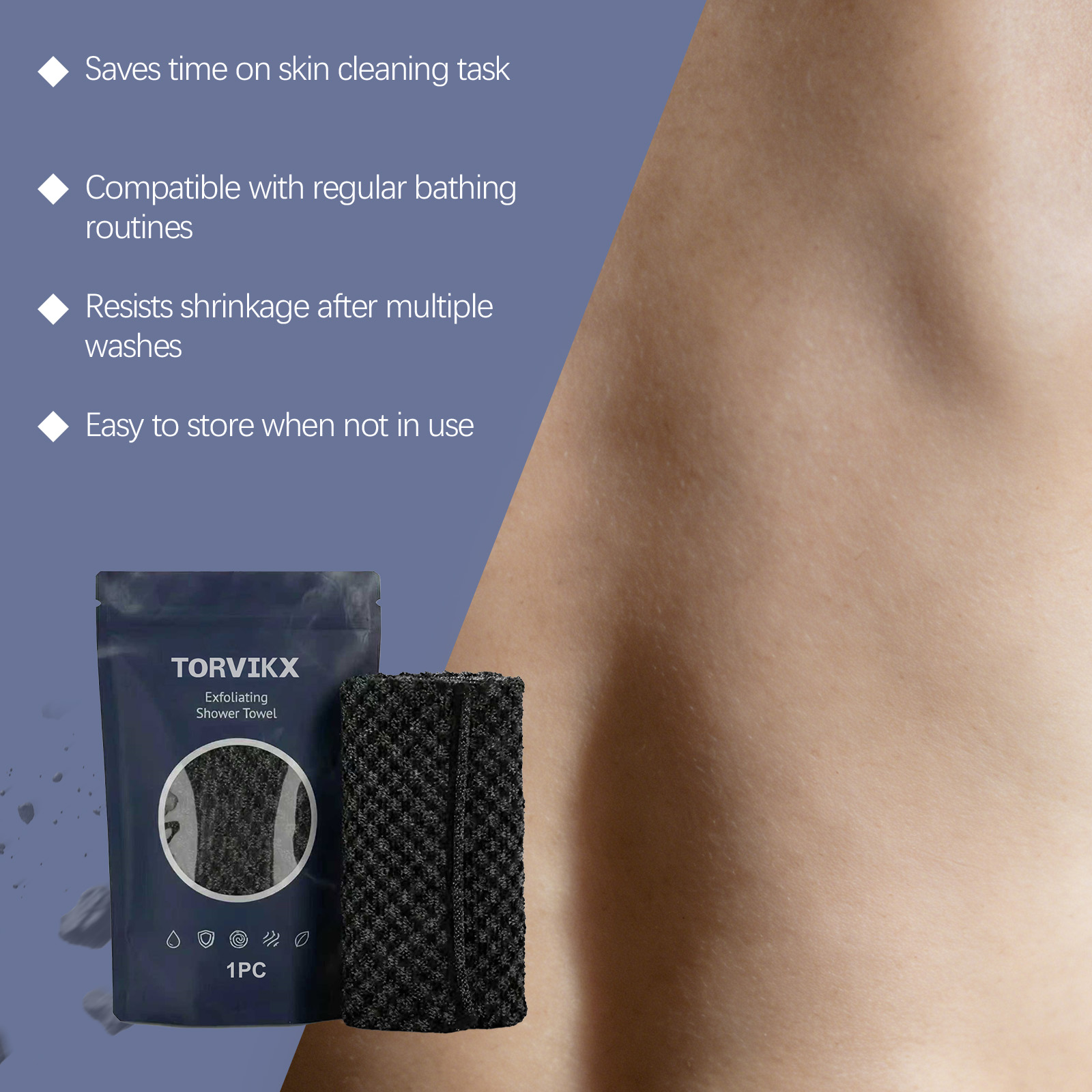 TORVIKX Exfoliating Bath Towels Are Skin-Friendly, Soft And Gentle, Clean The Skin Smoothly And Are Easy To Carry As Travel Bath Products