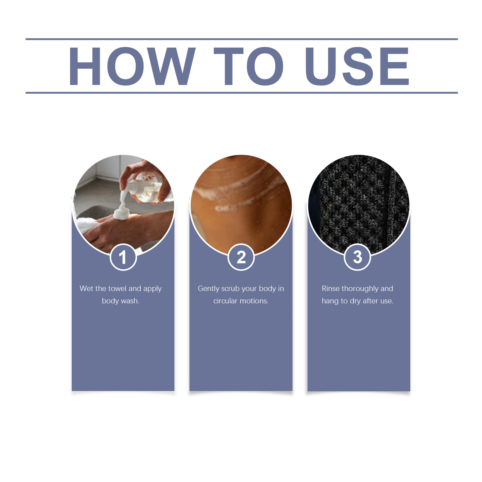 我们的去角质沐浴巾,由涤纶,碳纤维精心制作而成。专为有效清洁皮肤设计。使用方法极为便捷:1. 将毛巾弄湿,涂抹沐浴露。 2. 以打圈的方式轻轻擦拭身体。 3. 使用后彻底冲洗干净,悬挂晾干。并且可以提供舒适的皮肤触感。