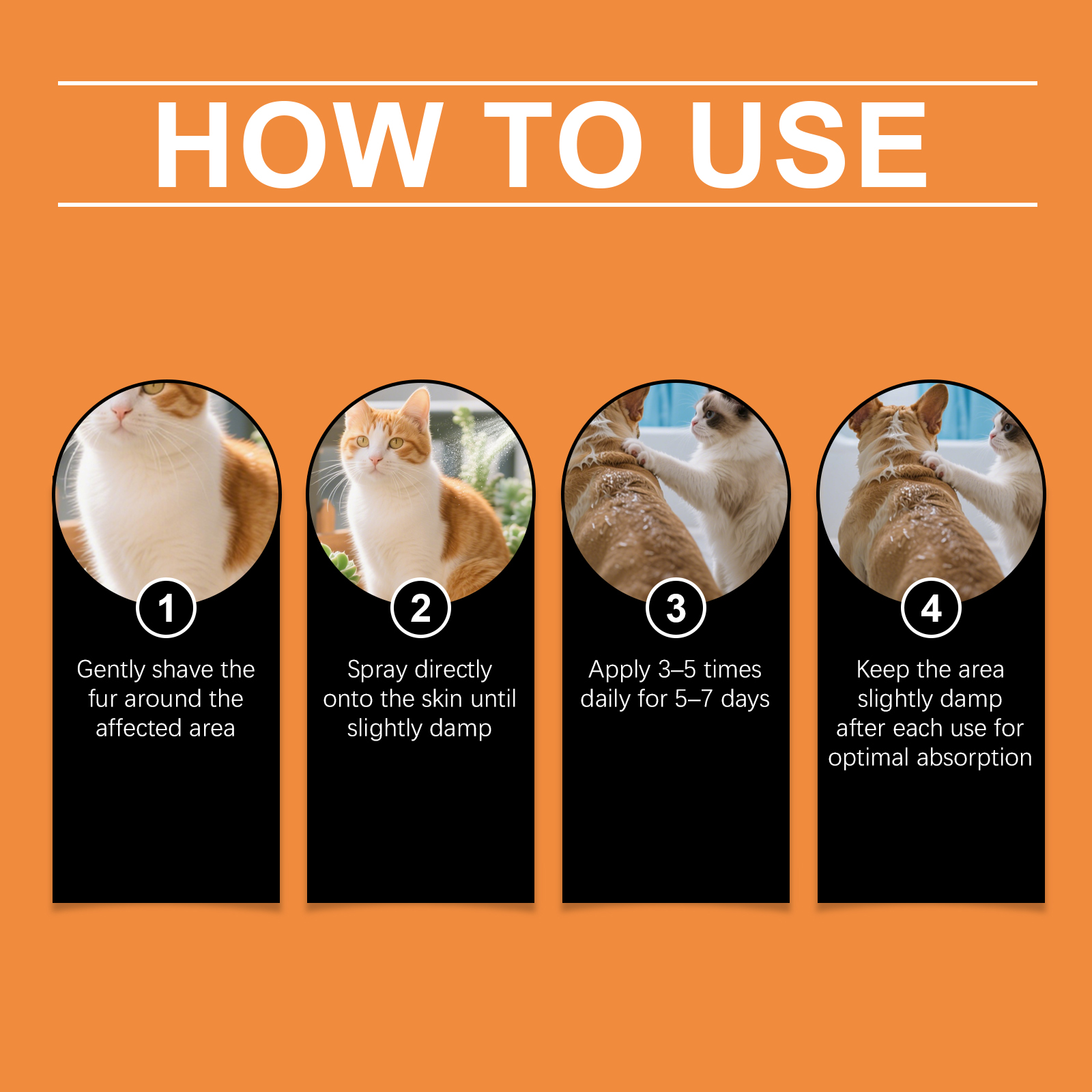 我们的宠物皮肤护理喷雾,由甘草根提取物、龙胆提取物精心调配而成。专为针对特定皮肤问题的护理设计。使用方法极为便捷:轻轻剃除患处周围的毛发,直接喷洒在皮肤直到略微湿。每日使用3-5次,持续5-7天,每次使用后保持区域微湿,以达到最佳吸收效果。并且它具有无毒且不刺激的配方。