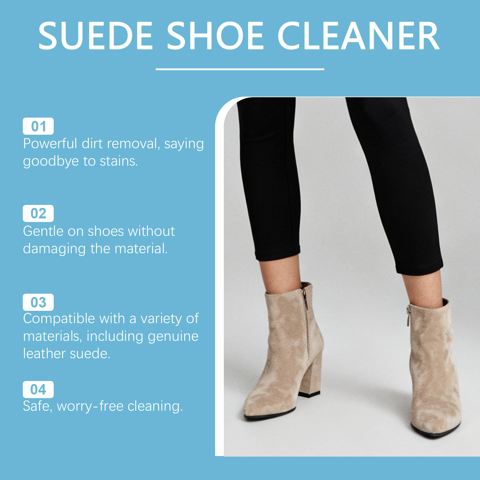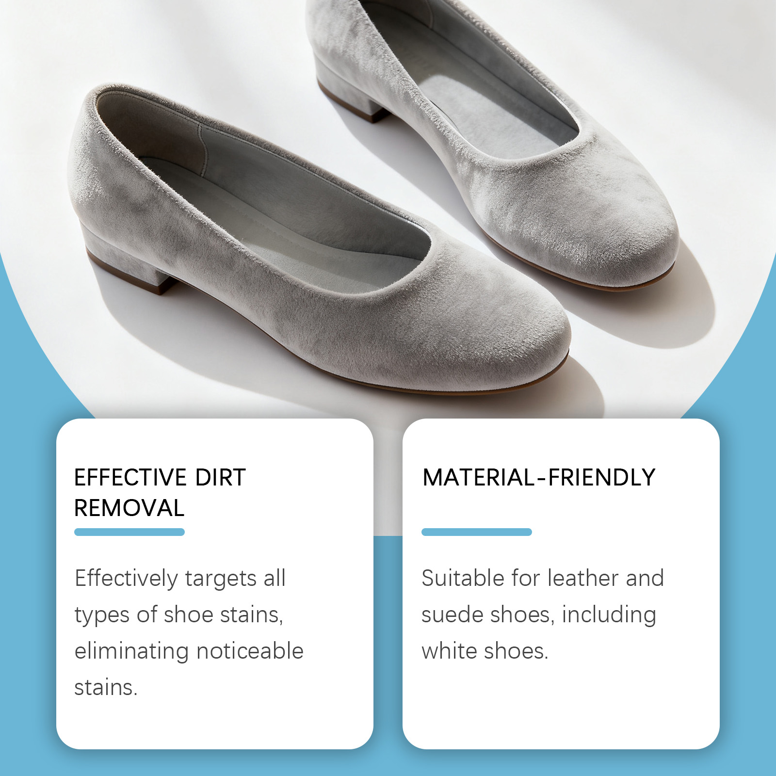 我们的绒面革鞋清洁套装,由硬脂酸、甘油精心调配而成。专为有效针对各种鞋类污渍设计。使用方法极为便捷:1.将少量产品涂抹在鞋子不显眼的部位(如鞋跟内侧),以确保不会导致鞋子材料变色或损坏。2.将适量产品涂抹于鞋面,来回刷动,以溶解污渍。擦拭鞋面,以去除多余清洁剂。清洁后,让鞋子在阴凉通风处自然风干,避免阳光直射或高温烘干。并且适用于皮革和绒面革鞋子,包括白色鞋子。