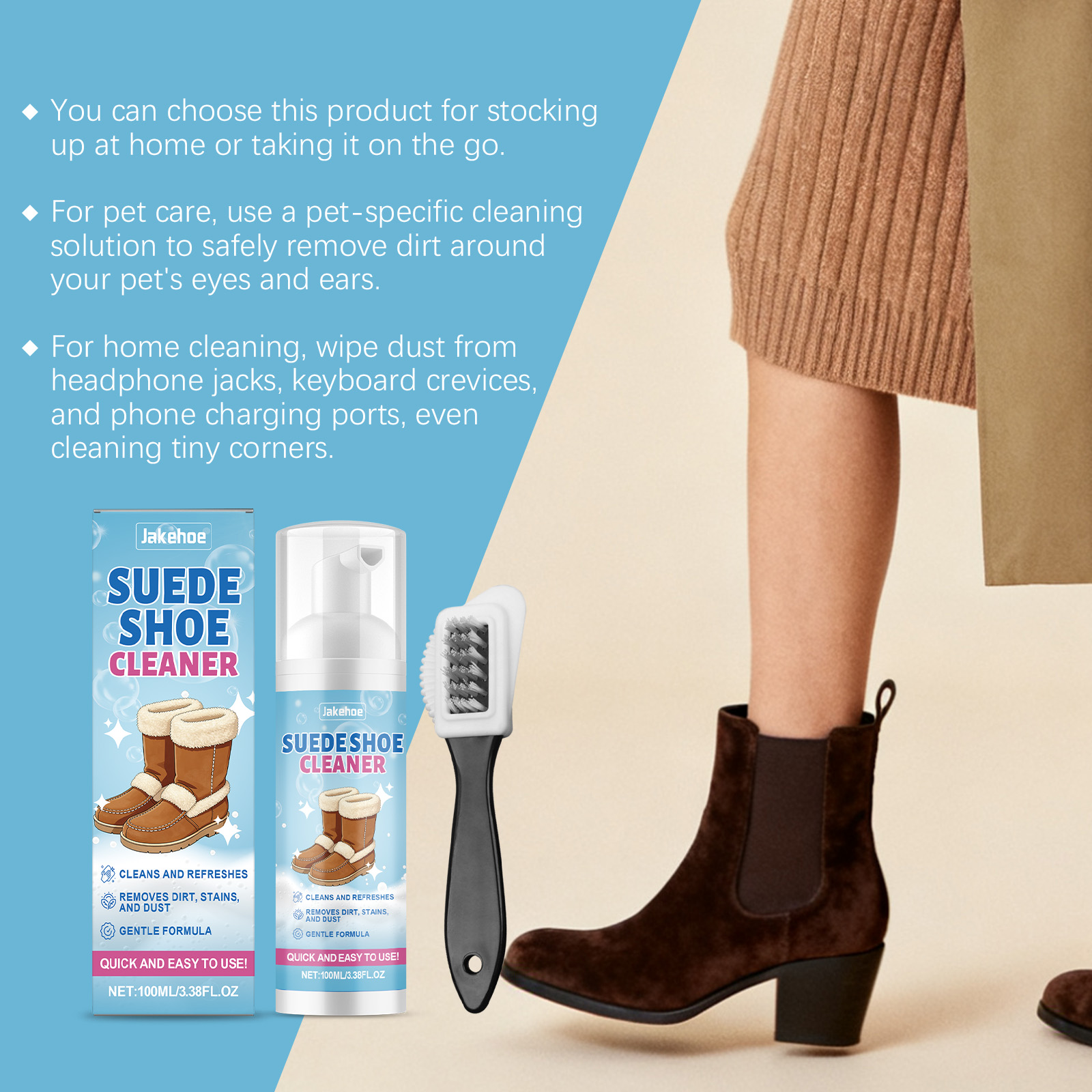 Jakehoe Nubuck Leather Shoe Cleaning Set - Daily Cleaning For Nubuck, Suede, Snow Boots And Sandals - Remove Stains