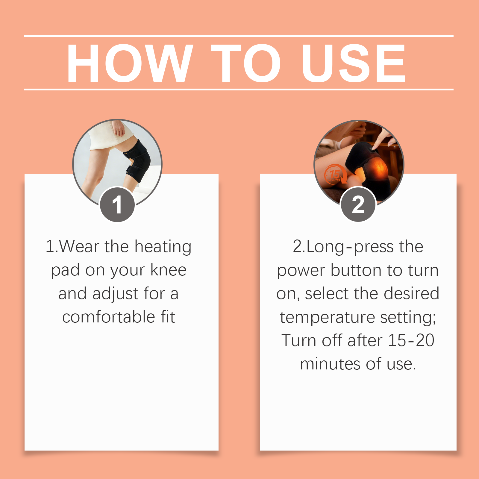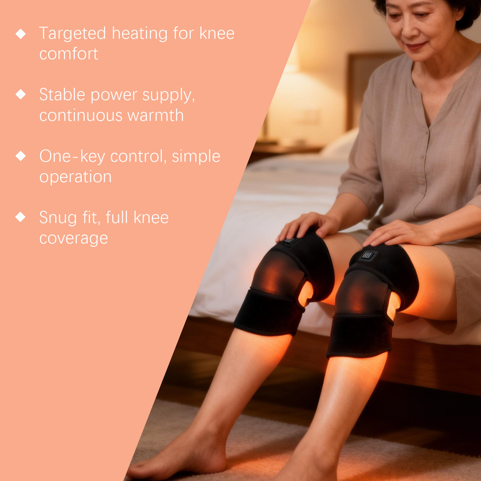 我们的保暖加热护膝,由潜水料精心调配而成。专为贴合膝关节设计。使用方法极为便捷:1.将加热垫佩戴在膝盖上,并调整至舒适贴合。2.长按电源键开机,选择所需温度设置,使用15-20分钟后关闭。并且采用专用电缆,持续加热。操作简单,适合老年人和儿童使用。