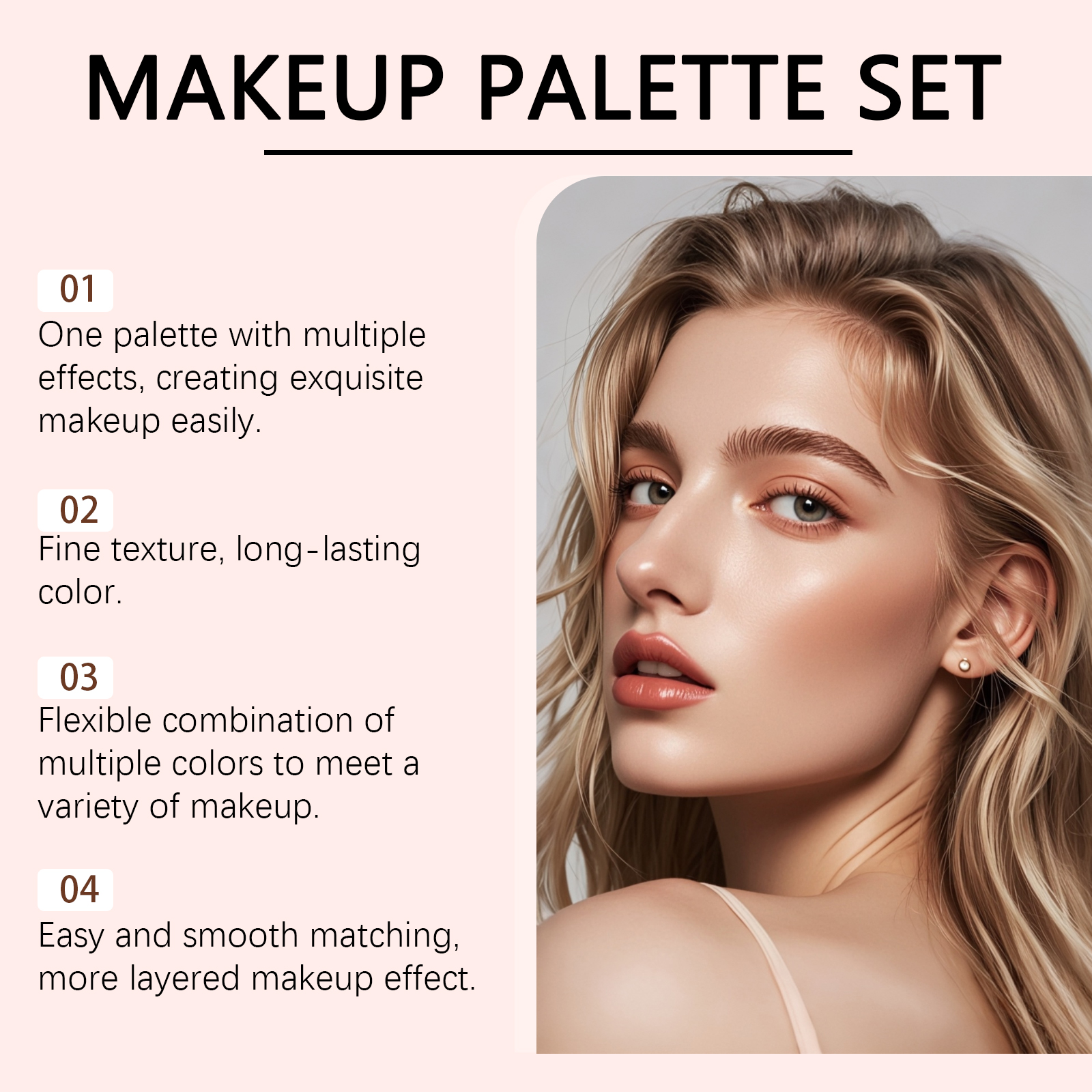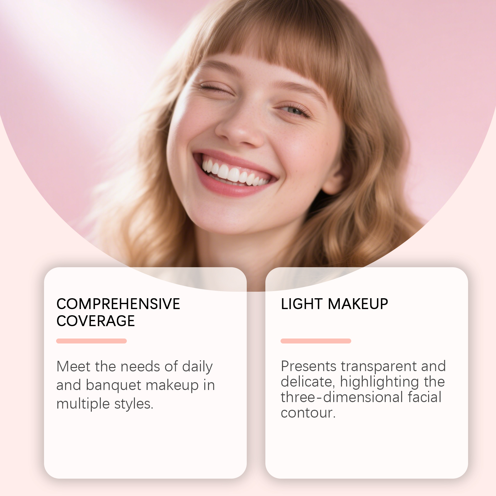 我们的彩妆盘组合套装 01#,由云母、硅石精心调配而成。专为满足日常和宴会化妆的多种风格需求设计。使用方法极为便捷:1.清洁面部肌肤并进行基础护肤。2.使用匹配的化妆刷,将粉底均匀涂抹在面部所需区域,如颧骨或下颌线,直至达到理想效果。3.使用与之相匹配的化妆刷或指尖从化妆盘上取用适量色彩。你既可以将它用作眼影、面部高光、暗影塑造或腮红,也可将其涂抹于眼睑、前额、鼻梁颧骨及其他需要突出和修饰的部位。并且可以呈现透明且精致的妆效,突出面部三维轮廓。