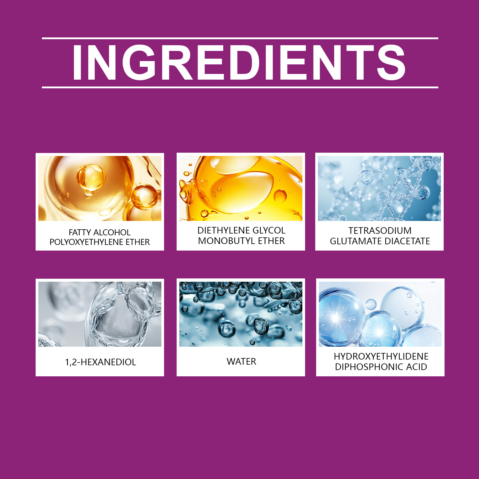| 成分 | 脂肪醇聚氧乙烯醚、二乙二醇丁醚 |