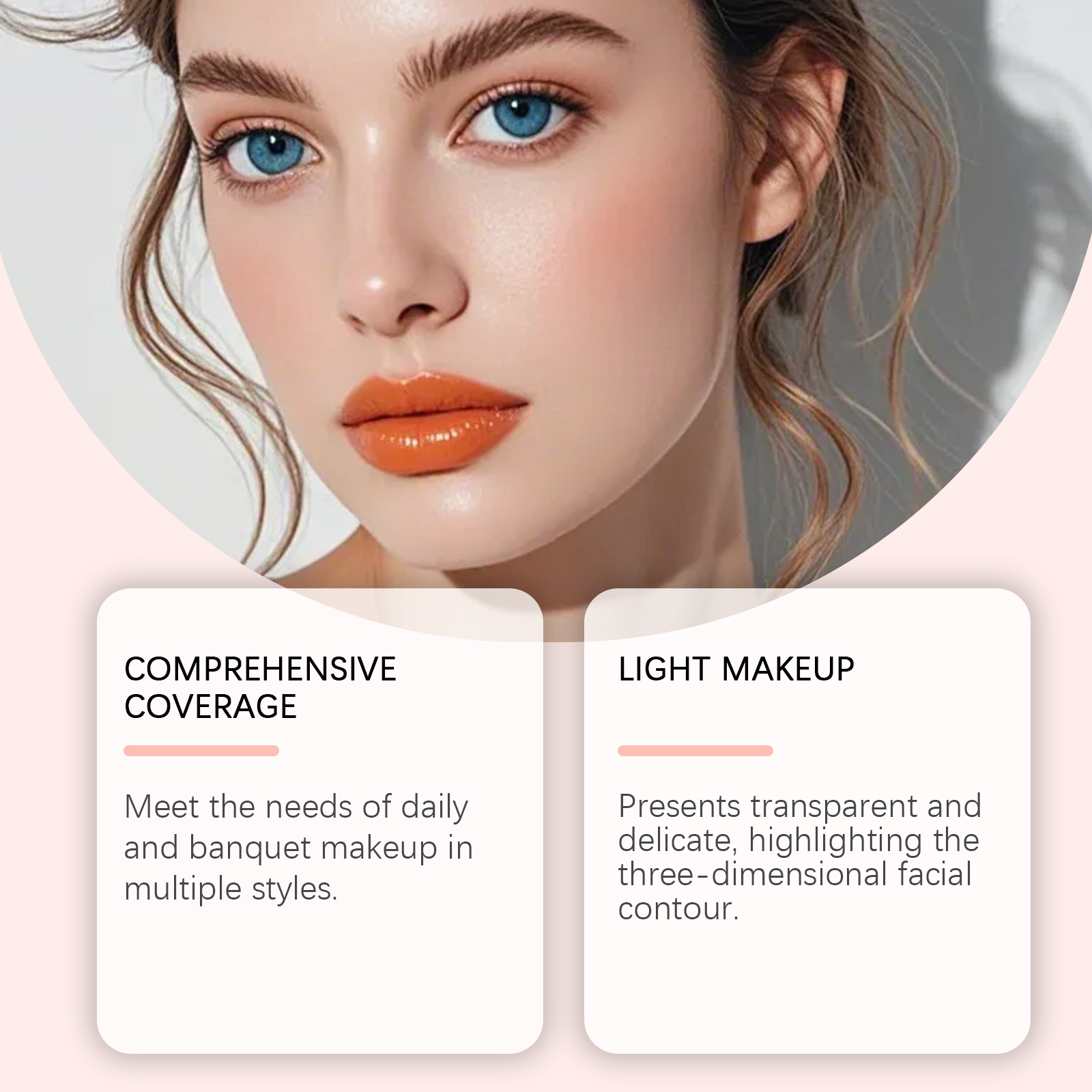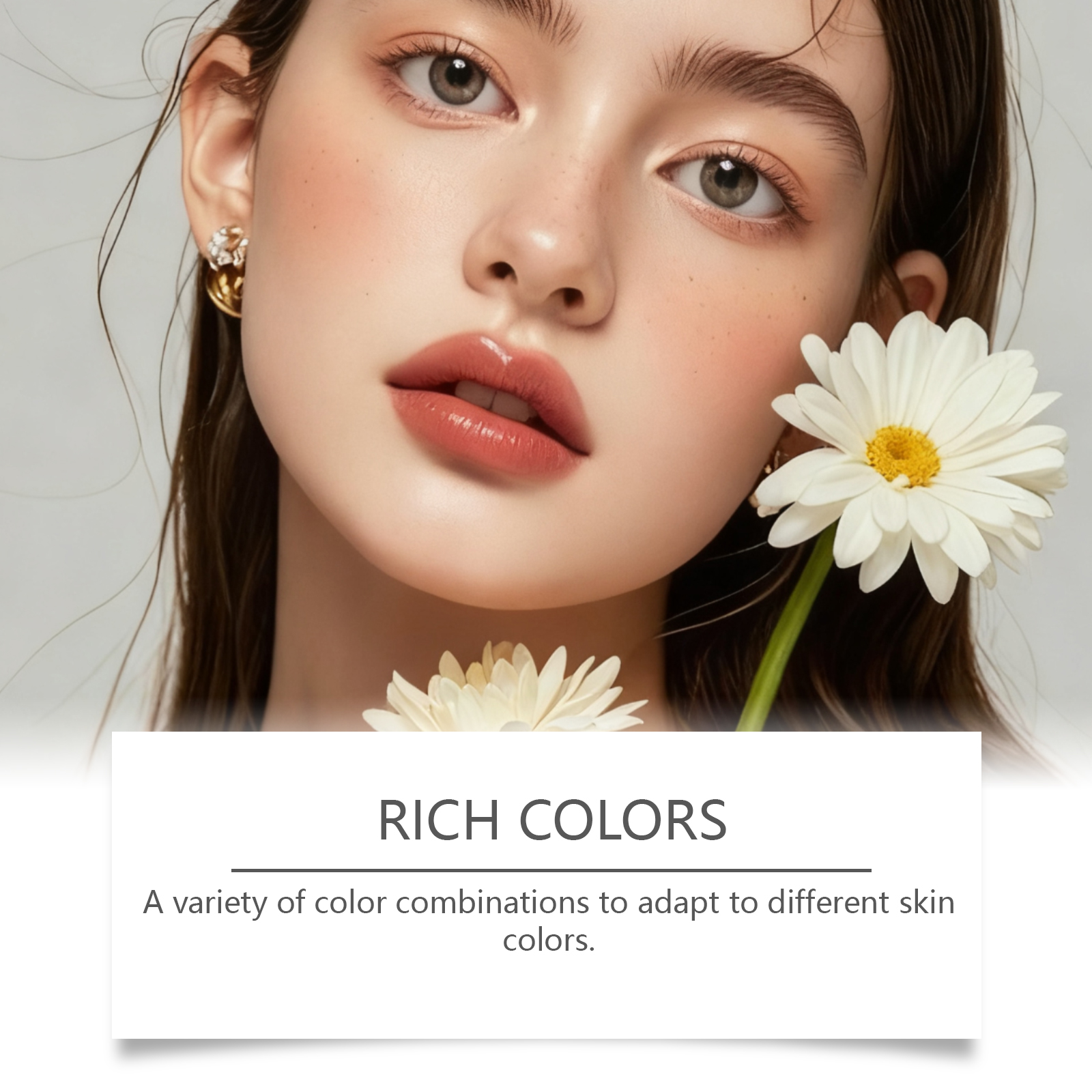 我们的彩妆盘组合套装07#,由云母、硅石精心调配而成。专为满足日常和宴会化妆的多种风格需求设计。使用方法极为便捷:1.清洁面部肌肤并进行基础护肤。2.使用匹配的化妆刷,将粉底均匀涂抹在面部所需区域,如颧骨或下颌线,直至达到理想效果。3.使用与之相匹配的化妆刷或指尖从化妆盘上取用适量色彩。你既可以将它用作眼影、面部高光、暗影塑造或腮红,也可将其涂抹于眼睑、前额、鼻梁颧骨及其他需要突出和修饰的部位。并且可以呈现透明且精致的妆效,突出面部三维轮廓。