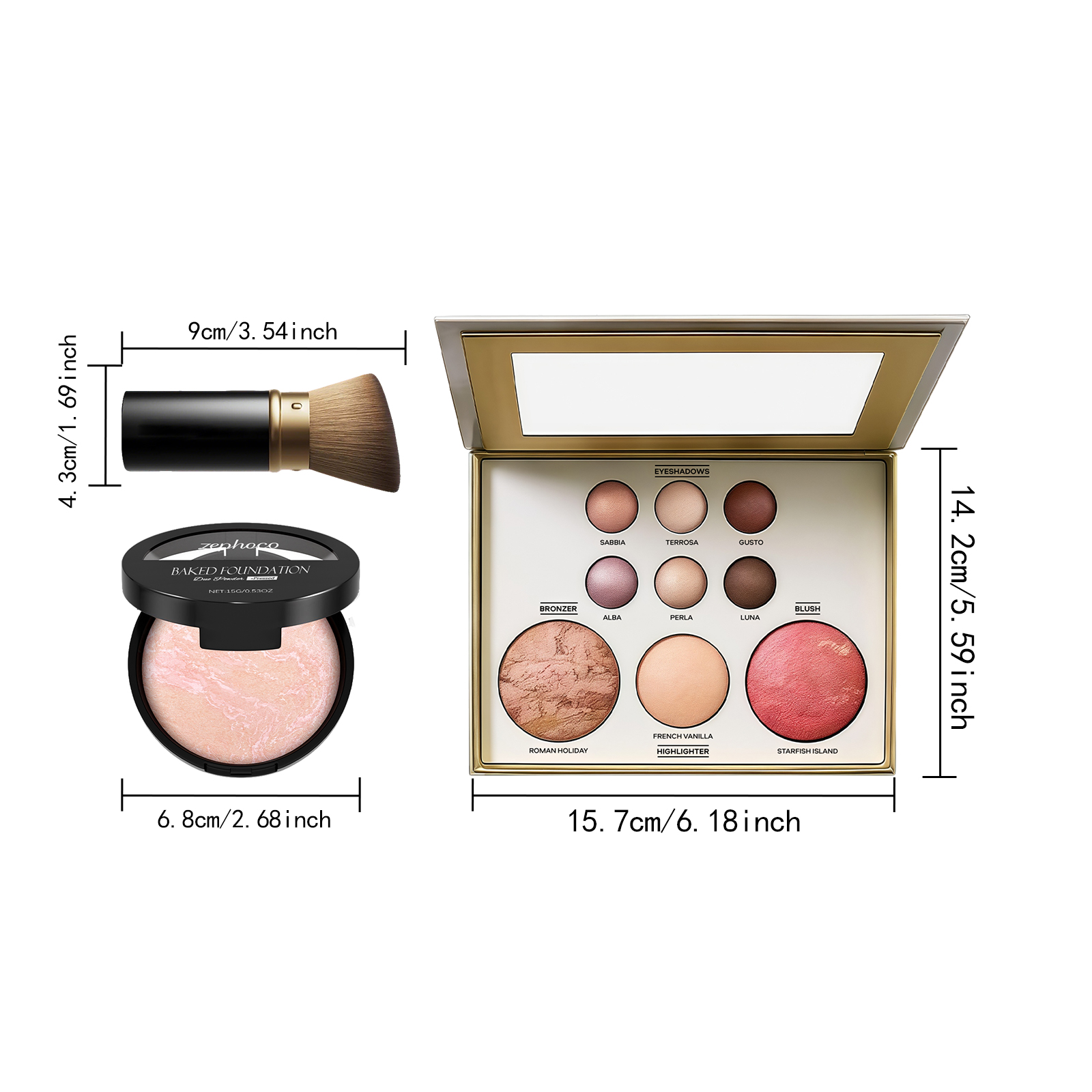 | 产品尺寸 | 斜头刷: 3.1*9*4.3cm,彩妆盘: 15.7*14.2*3cm,烘焙粉底:6.8*6.8*2cm |