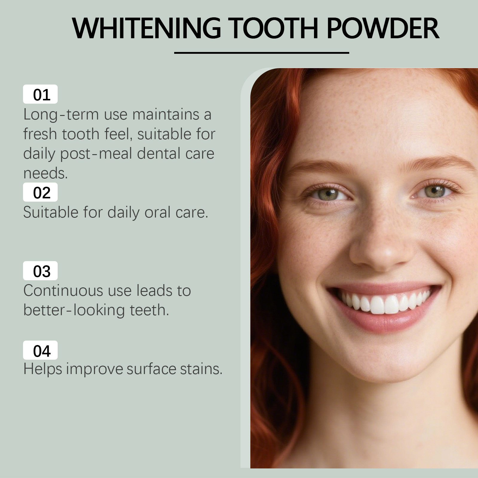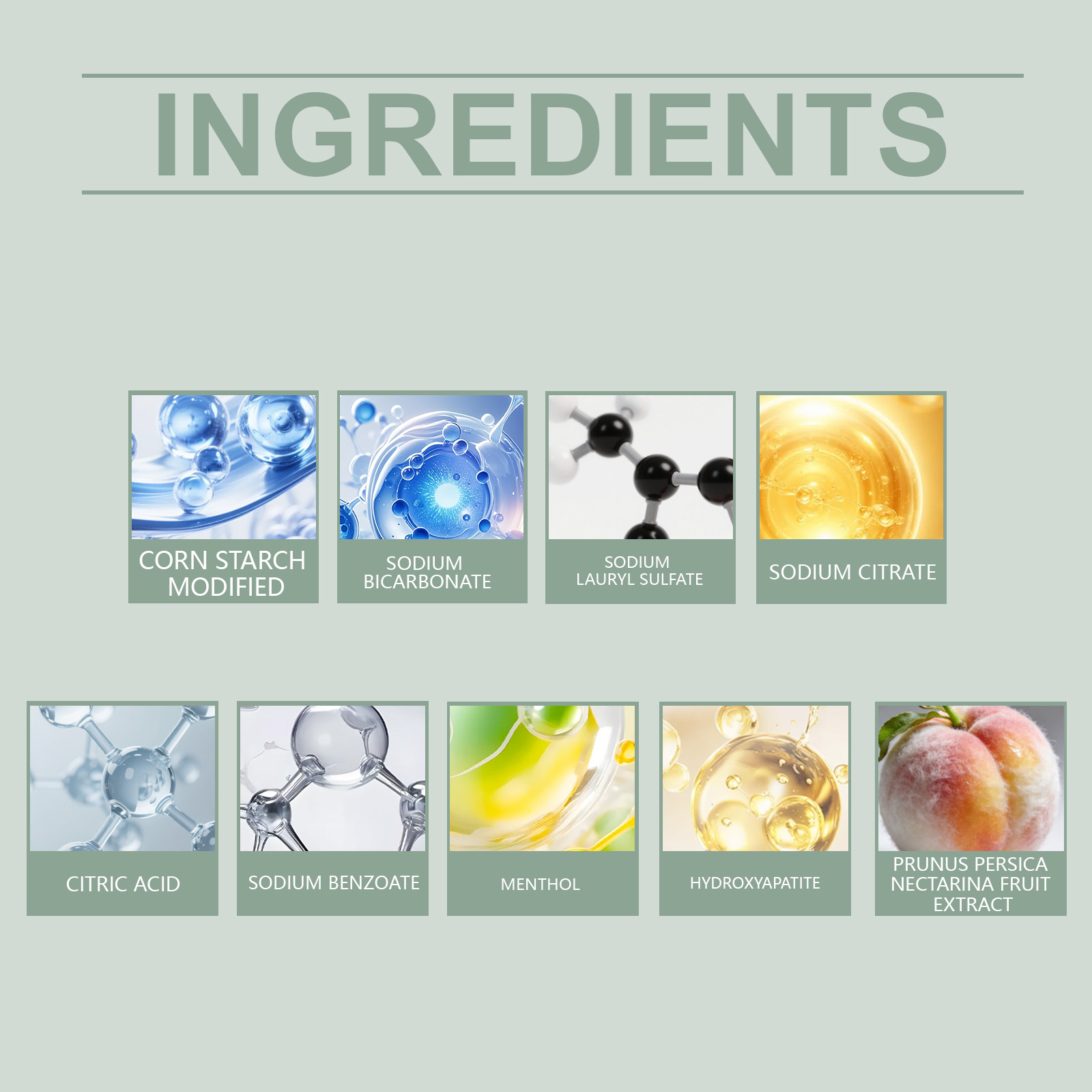 我们的牙粉,由薄荷醇、香蜜桃果提取物精心调配而成。专为使牙齿看起来更白设计。使用方法极为便捷:1.用清水漱口,湿润牙齿。2.将适量牙粉放在湿润的牙刷上,刷牙2-3分钟。3.用清水漱口,直到口腔干净。并且可以使牙齿干净且有光泽。