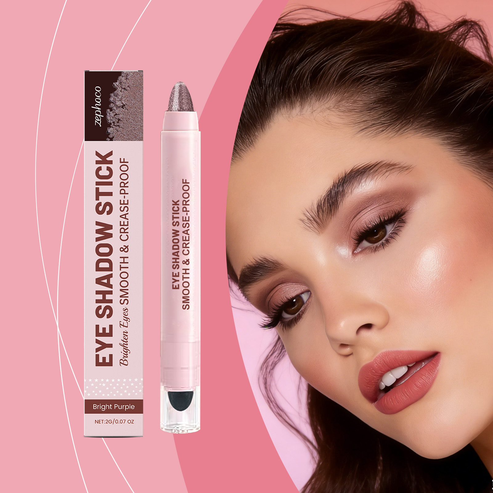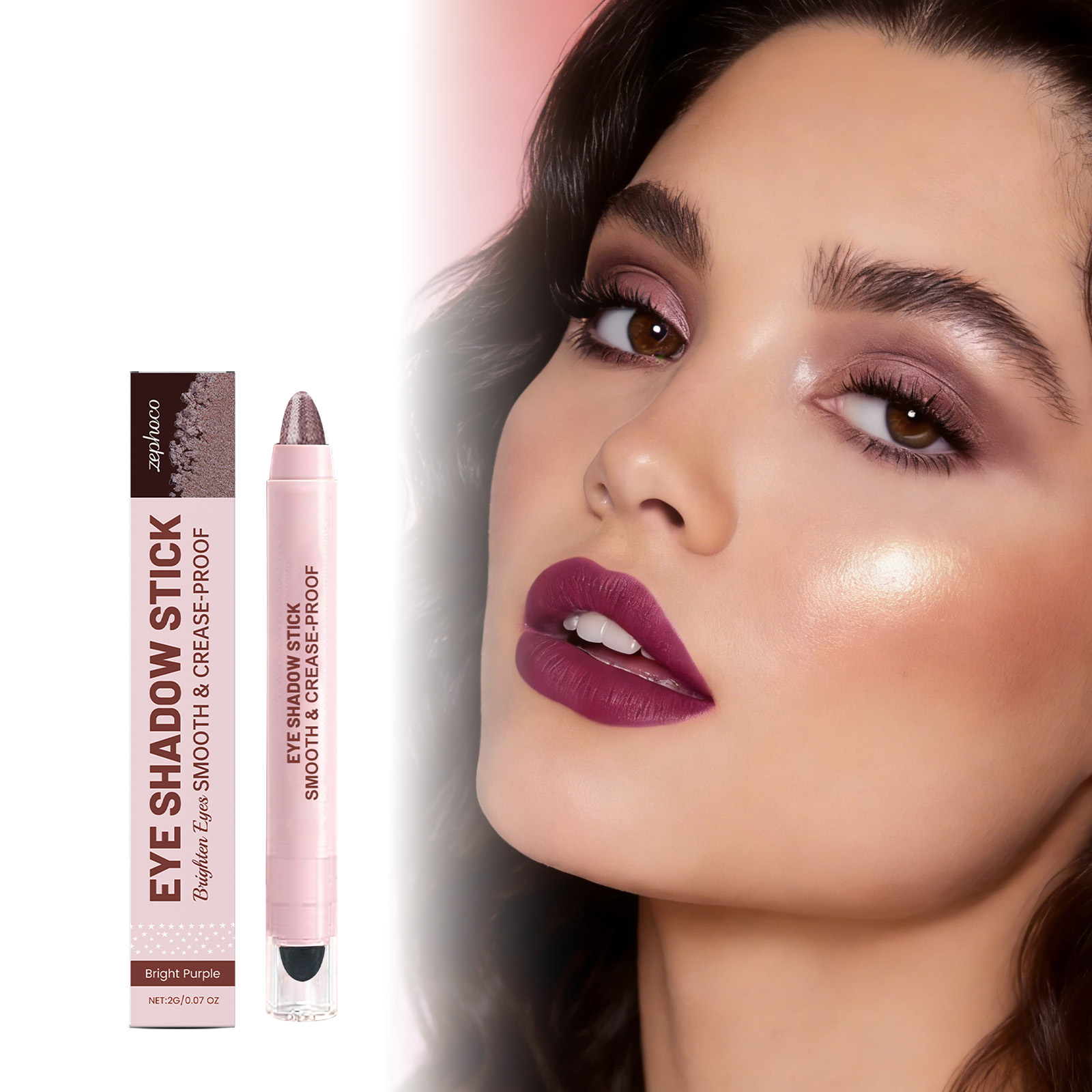 zephoco Shiny Cream Eyeshadow Stick (Bright Purple) Daily Use Party Settable Portable Eyeshadow Stick