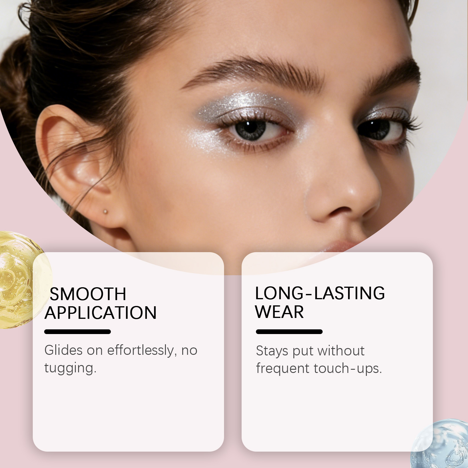 我们的亮银色闪亮奶油眼影棒,由硅石、1,2-己二醇精心调配而成。专为打造日常或浓妆效果设计。使用方法极为便捷:1.使用笔尖勾勒眼睑轮廓。2.填充眼线上的任何空隙,并均勺涂抹一层薄薄的眼影。3.将笔翻转至内置搅拌器,进行晕染。并且持妆久,不易晕染、不易褪色。