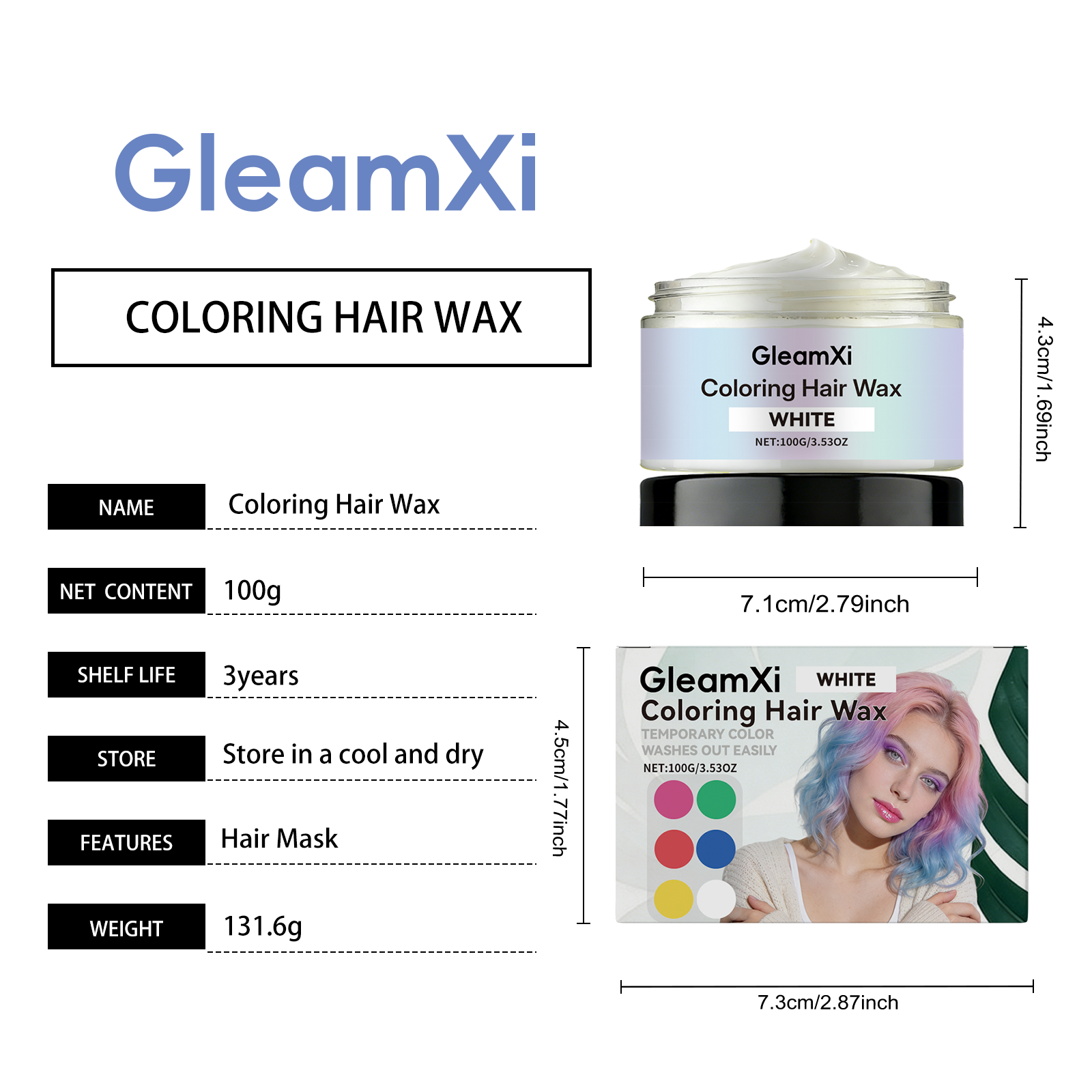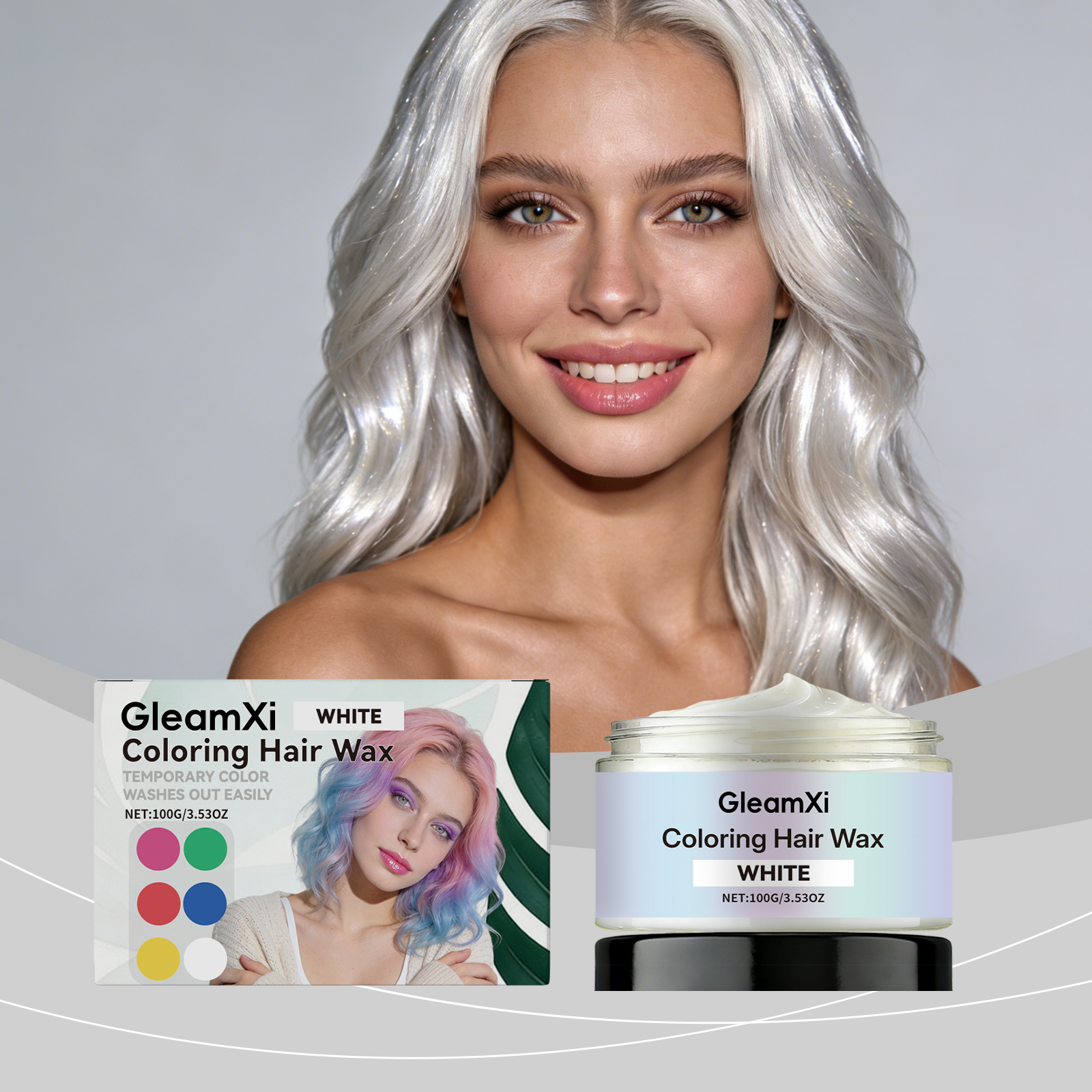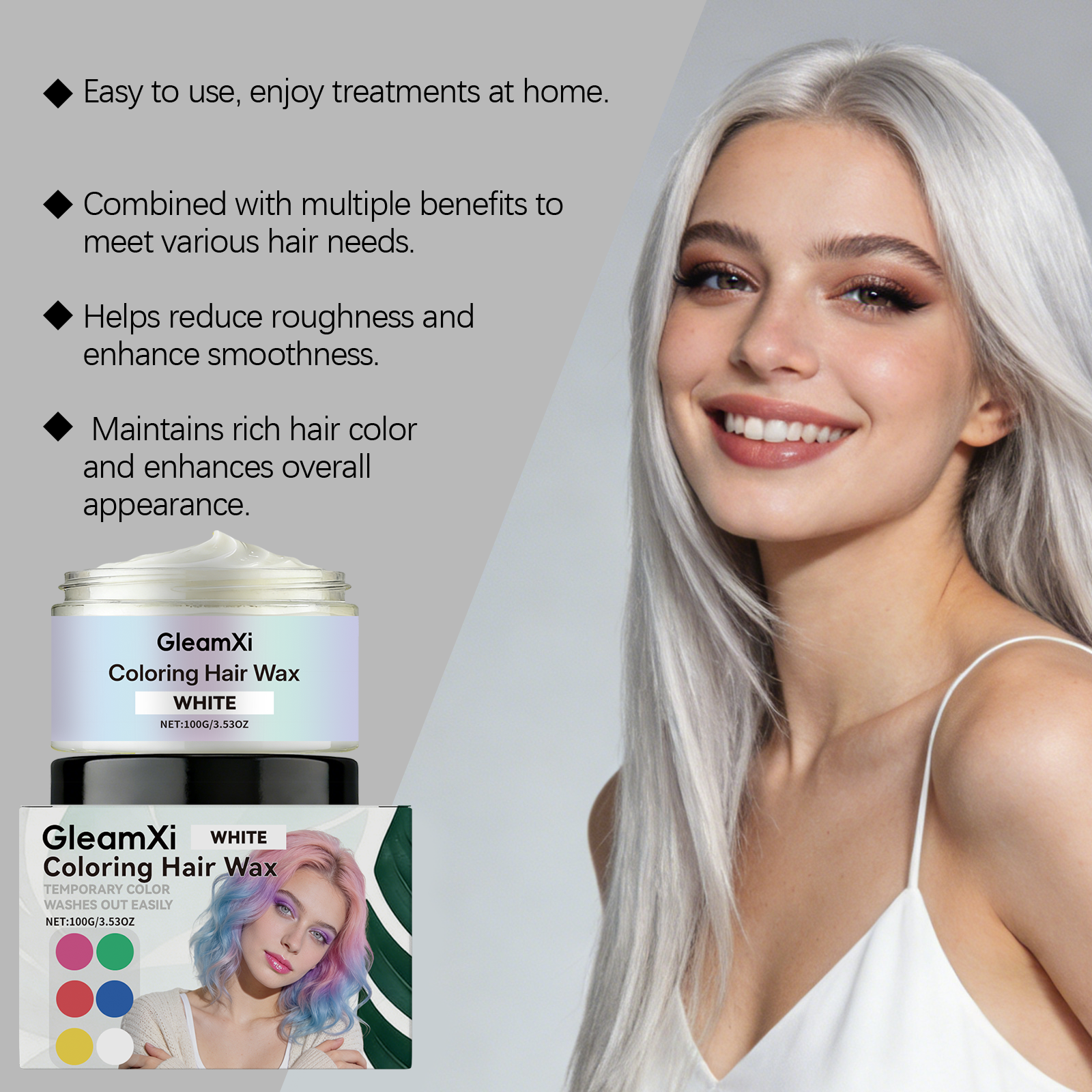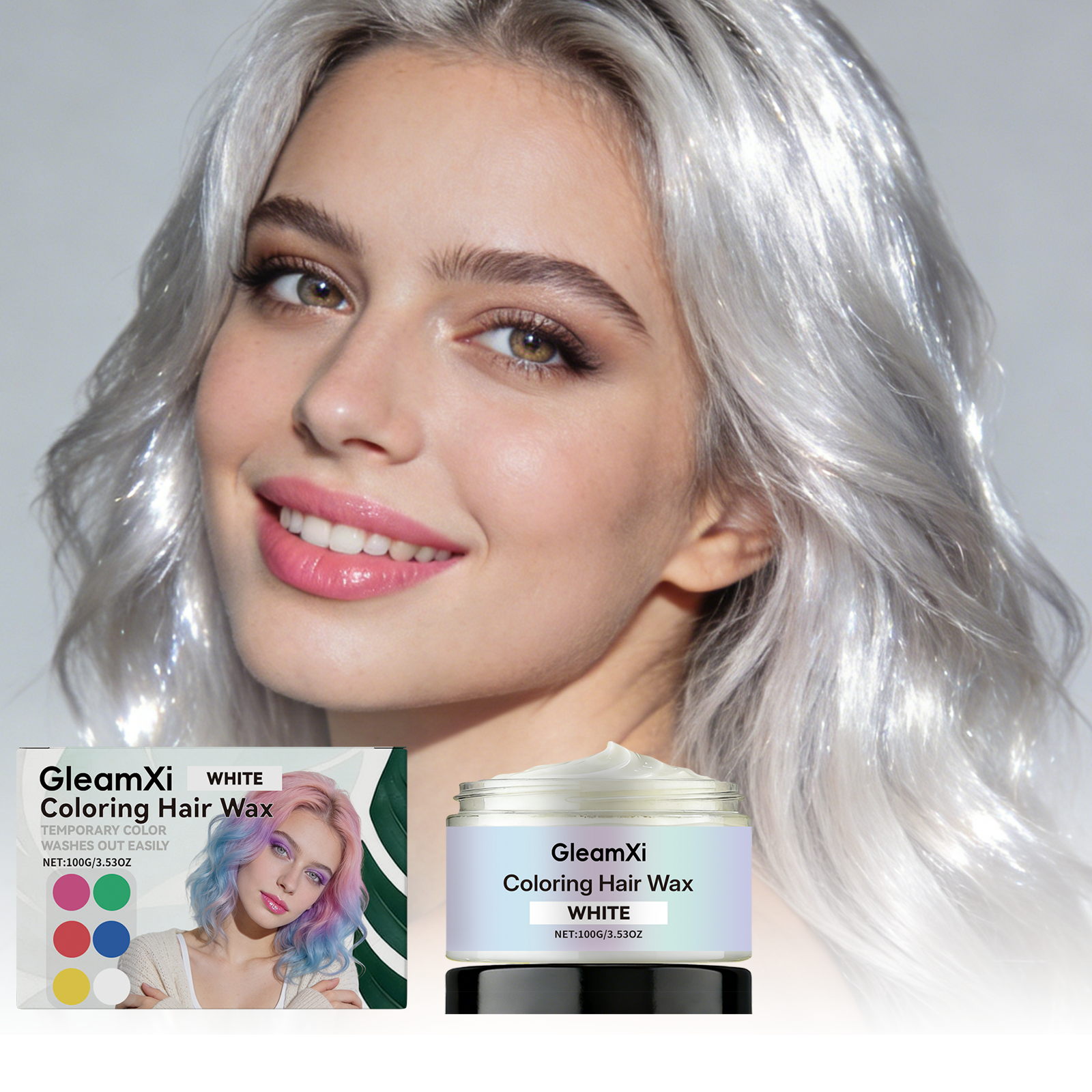GleamXi White Temporary Hair Dye. Gentle And Non-Irritating. Natural Color Showing. Fashionable. Easy To Apply. Convenient Hair Dye.