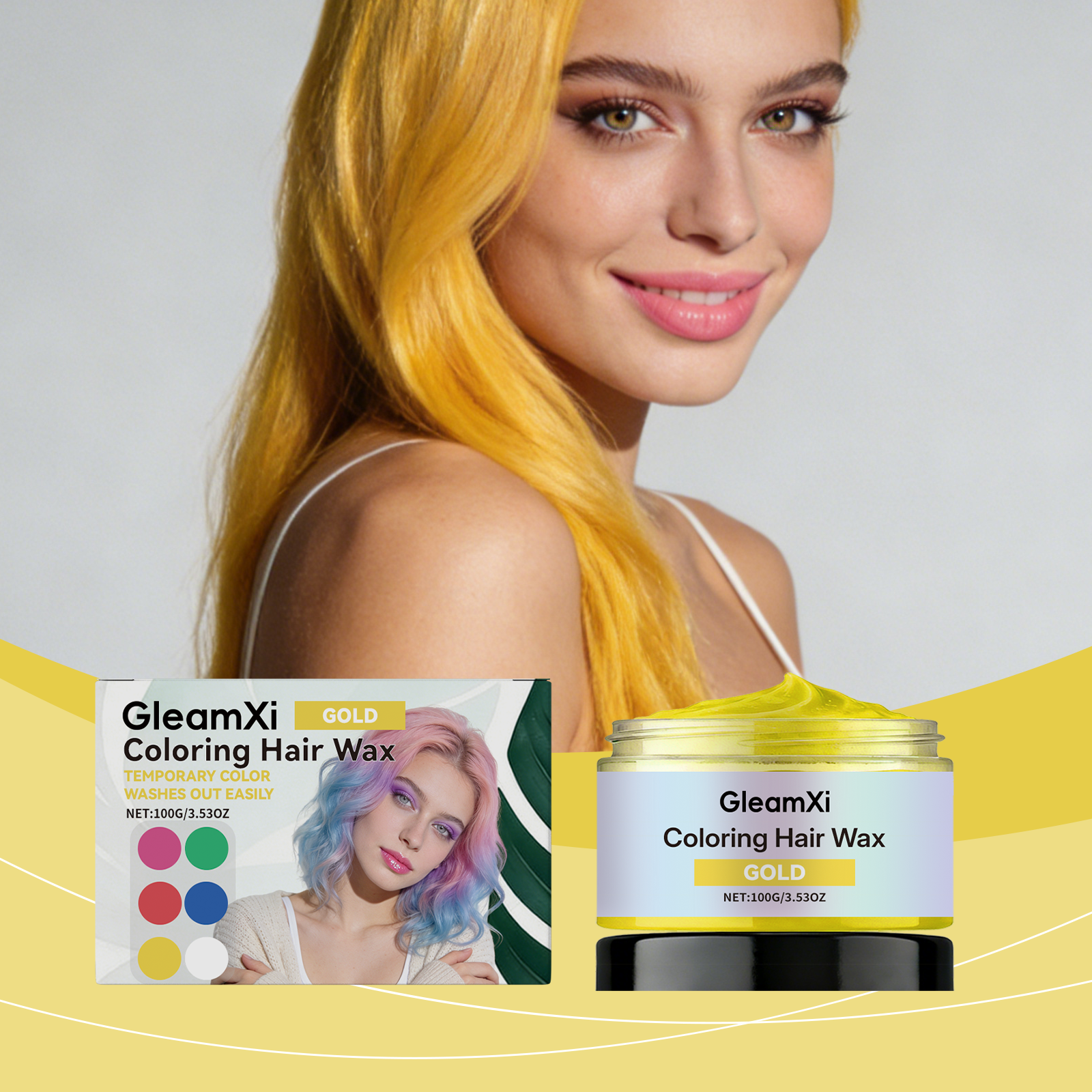 GleamXi Yellow Temporary Hair Color Remover Gentle Hair Color Modifier Fashionable Party Temporary Hair Color Remover