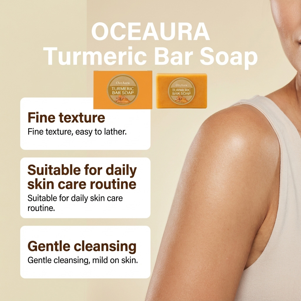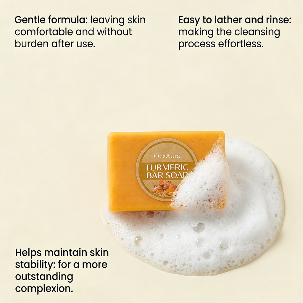 OceAura Turmeric Bath Soap Gentle In Nature, It Cares For Your Skin, Leaving It Fresh, Comfortable, Fragrant And Clean. Ideal For Daily Care.