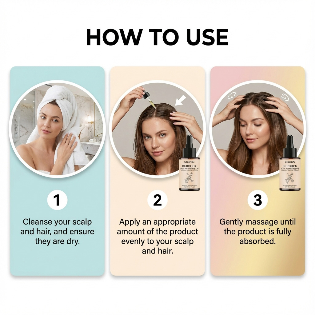我们的轻润护发精华油,由牛蒡根提取物、抗坏血酸(维生素 C)精心调配而成。专为减少打结,使梳理更轻松设计。使用方法极为便捷:清洁头皮和头发,并确保其干燥。将适量产品均匀涂抹于头皮和头发上。轻轻按摩直至产品完全吸收。并且适用于多种发型造型,可遮盖荨麻和刺状毛发。