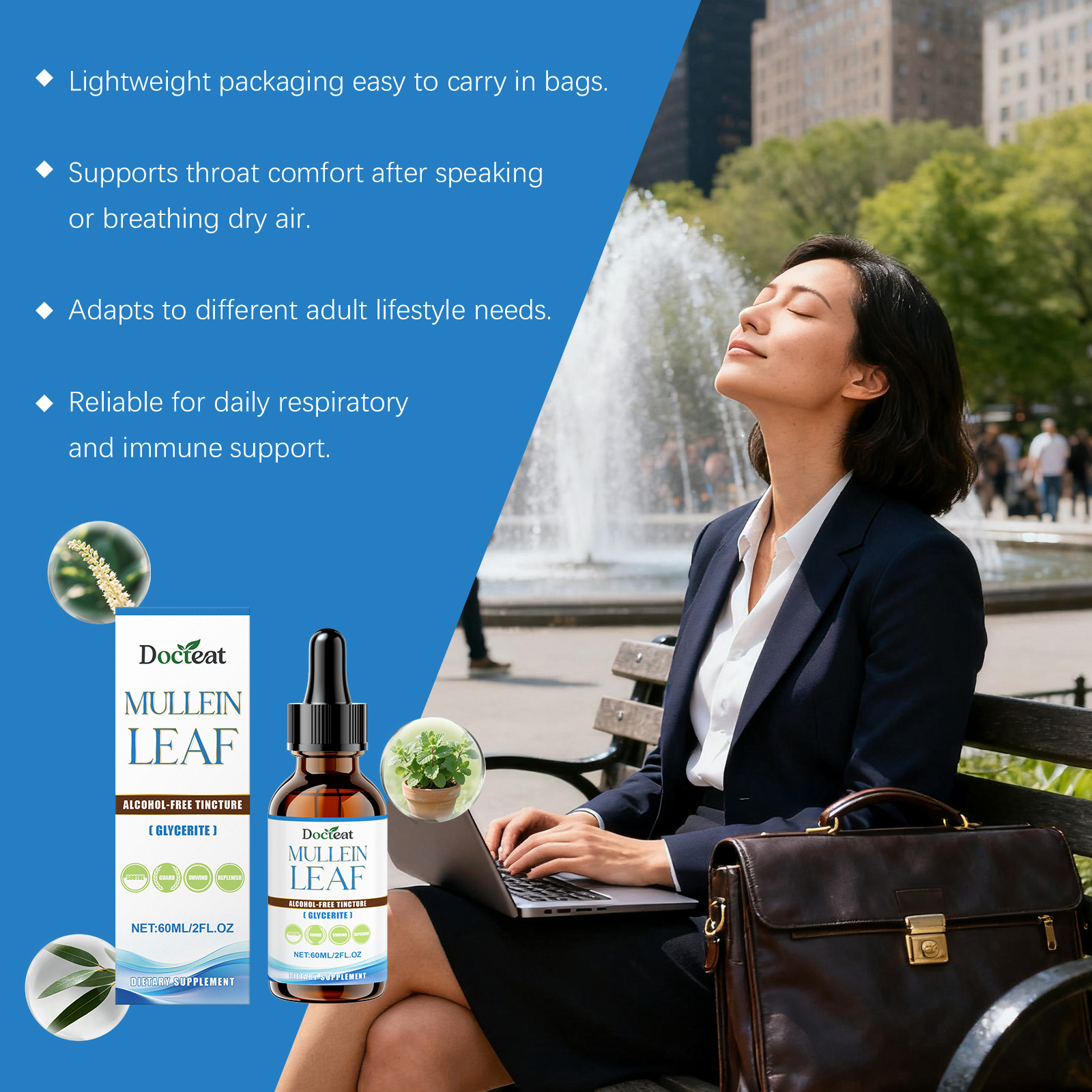 我们的草本日常护理滴剂,由毛蕊花叶提取物、百里香叶提取物精心调配而成。专为支持呼吸舒适状态,支持喉部温和平衡设计。使用方法极为便捷:一天2次,一次1ml,直接服用或与其他食物混合服用。并且它可以支持日常顺畅呼吸,支持季节性健康维护。