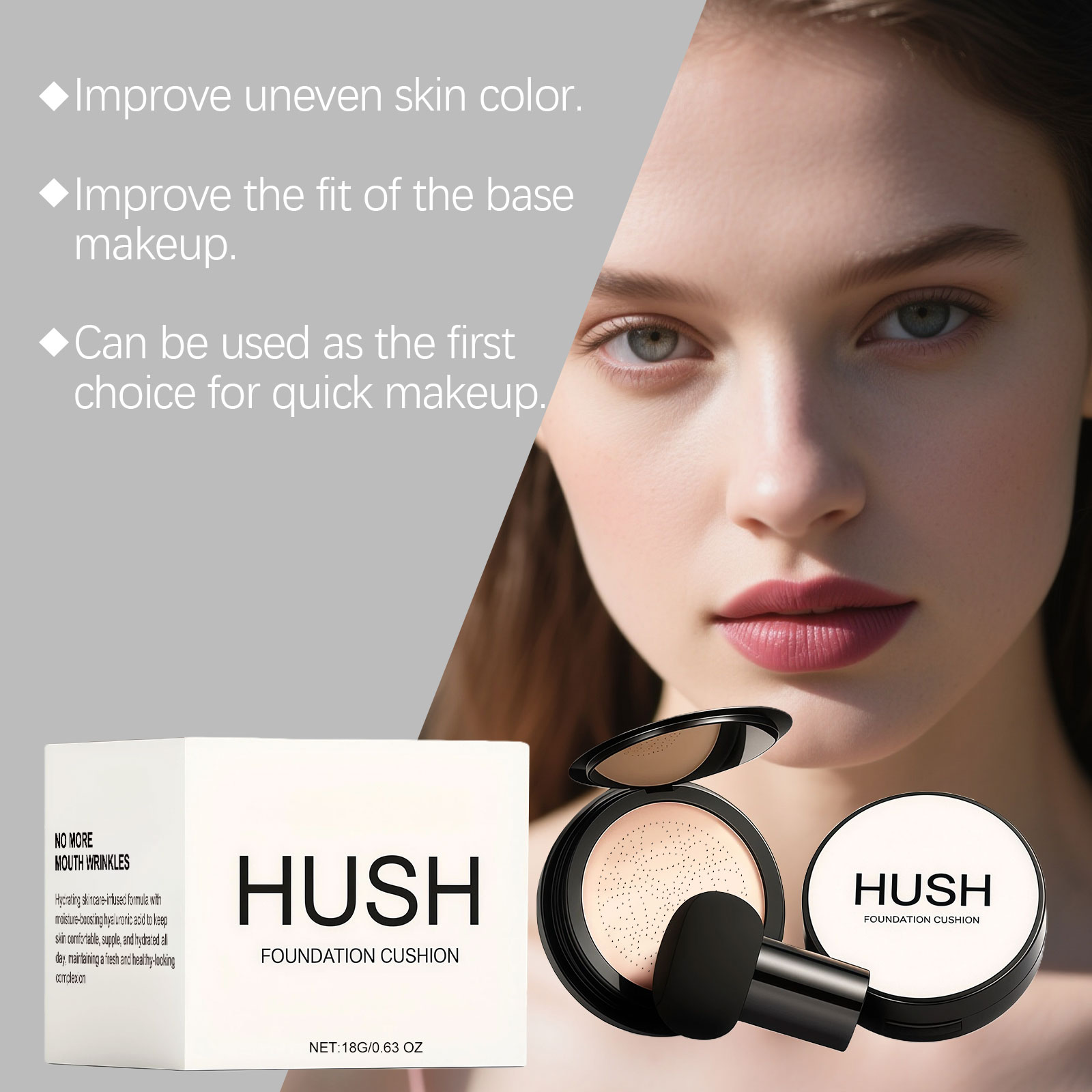 我们的象牙白焕亮净透气垫霜,由矿油、丙二醇精心调配而成。专为有效遮盖皮肤瑕疵和毛孔,改善细纹和暗沉,呈现无瑕的陶瓷肌肤质感设计。使用方法极为便捷:1.清洁面部肌肤并做好肌肤护理。2.使用蘑菇形粉扑取适量本产品,轻轻拍打于面部肌肤,直至肤色均匀。并且它可以轻松推开而不粘粉,创造出均匀且柔滑的基础妆容。