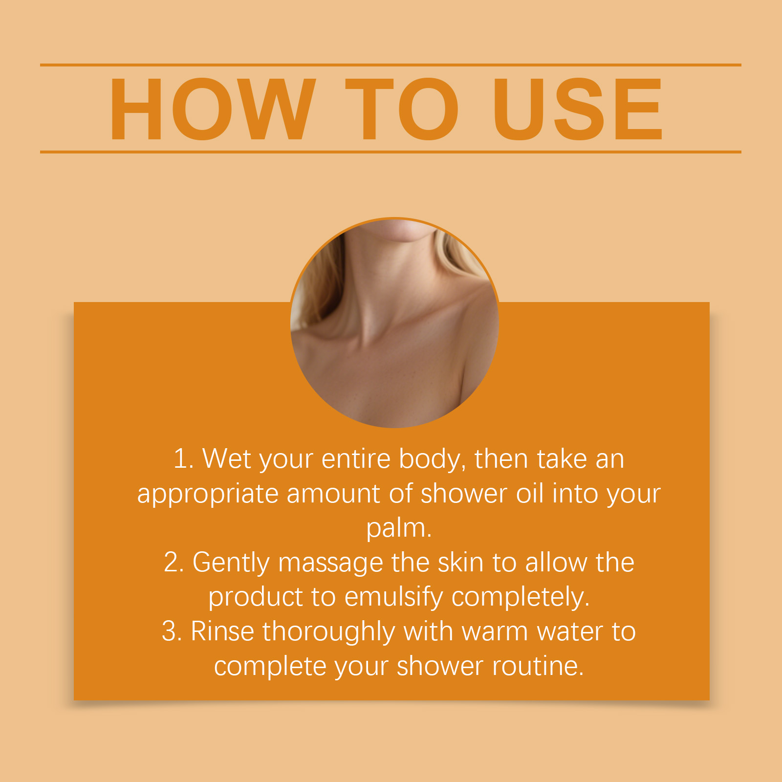 我们的身体沐浴油,由广藿香油、薰衣草油精心调配而成。专为清洁和柔化肌肤,洗后肌肤感觉舒适不紧绷设计。使用方法极为便捷:1.将全身打湿,然后取适量沐浴油于掌心。2.轻柔按摩皮肤,使产品完全乳化。3.用温水彻底冲洗,完成您的沐浴程序。并且可以帮助肌肤实现均匀透亮的光泽,提升肌肤通透感。
