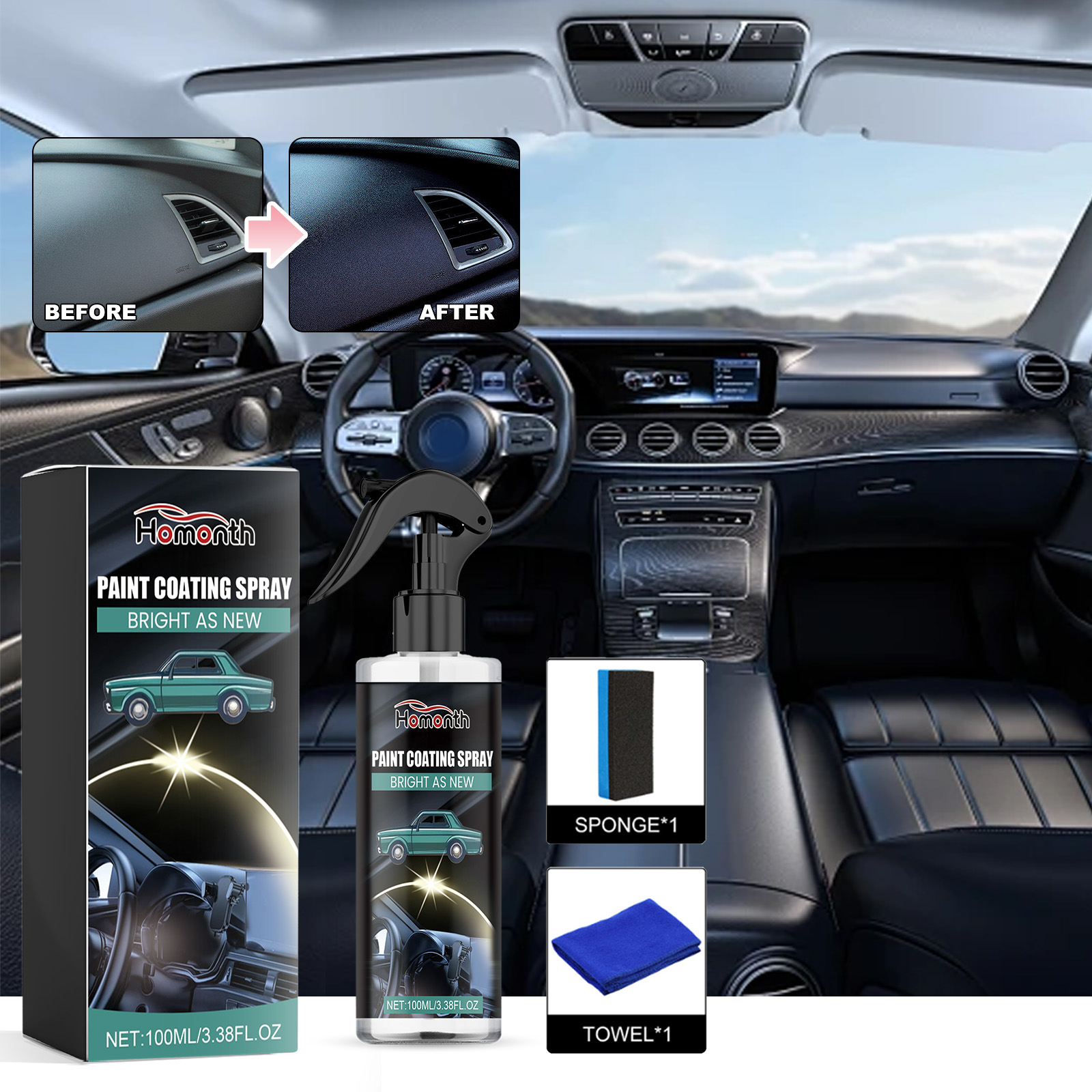 Homonth Paint Coating Spray, Seat Upholstery Instrument Panel Cleaning Stains Polishing Maintenance Refurbishing Agent