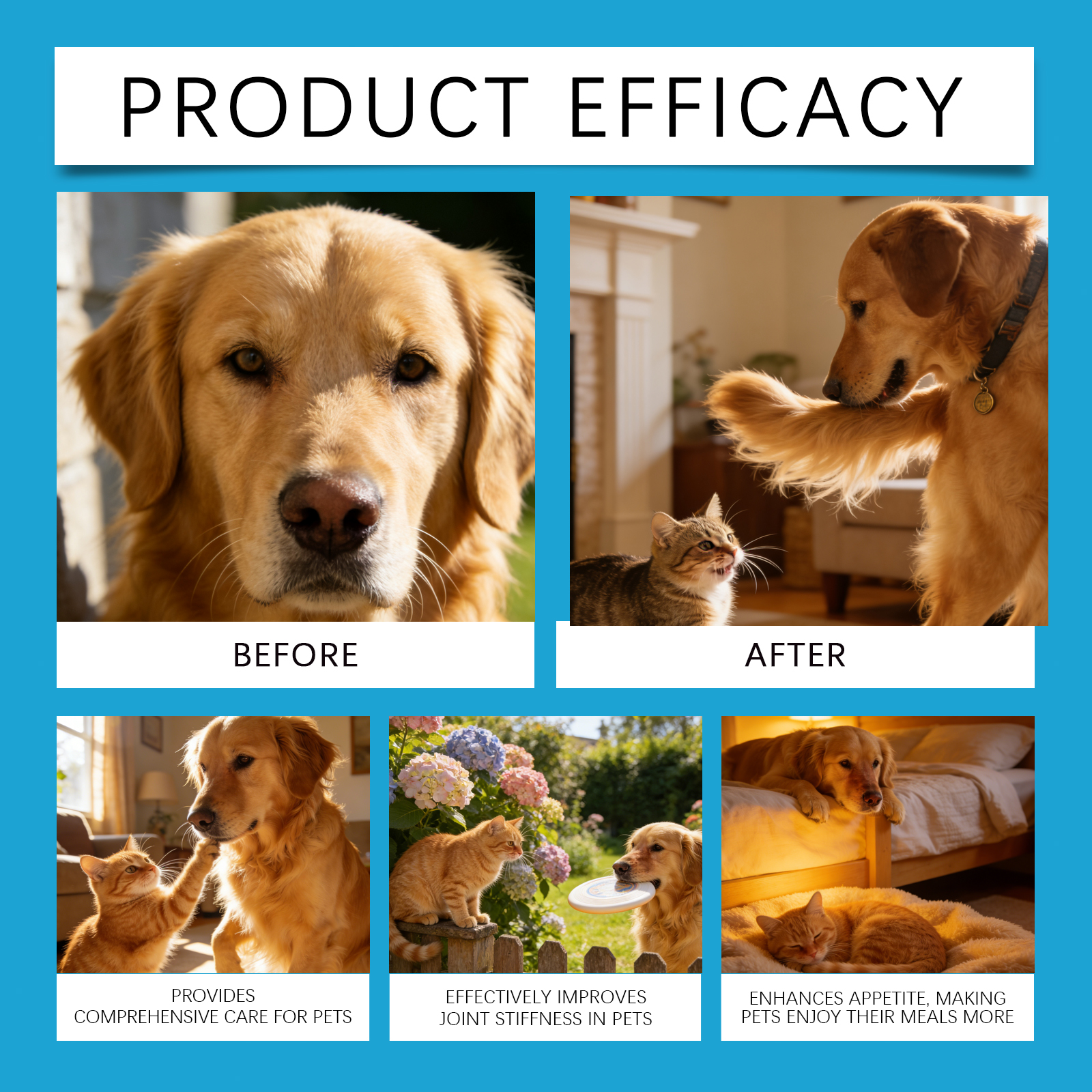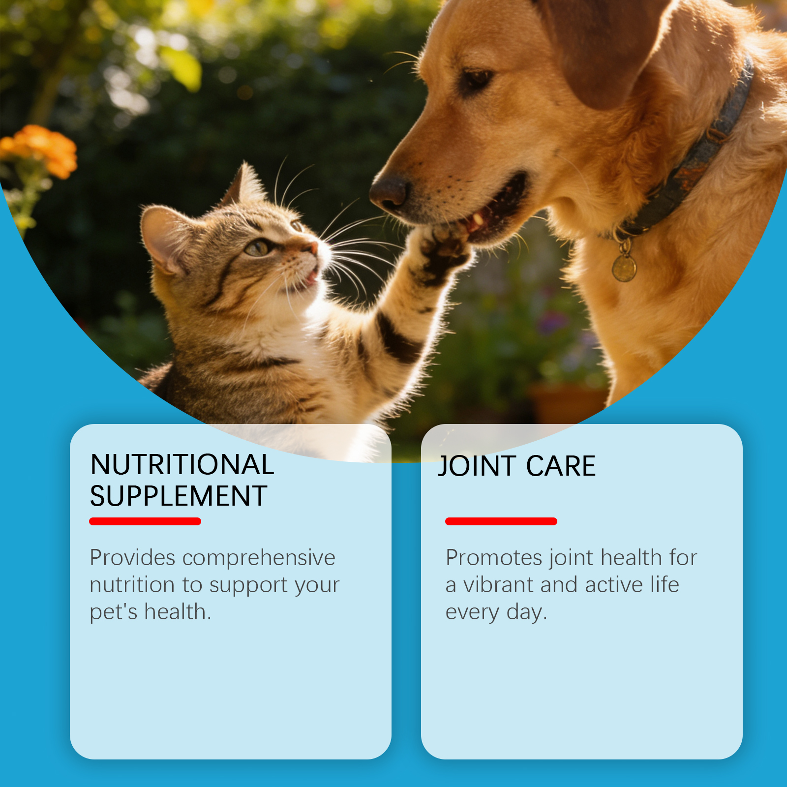 我们的宠物胶原蛋白滴剂,由葡萄糖胺氯化物、透明质酸精心调配而成。专为提供全面营养,支持宠物健康吗,促进关节健康,让您的宠物每天都能活力充沛、活跃生活设计。使用方法极为便捷:体重低于5磅:每天1毫升;5-15磅:每天2毫升;15-35磅:每天3毫升;超过35磅:每天4毫升。并且它可以支持关节健康并促进软骨维护。