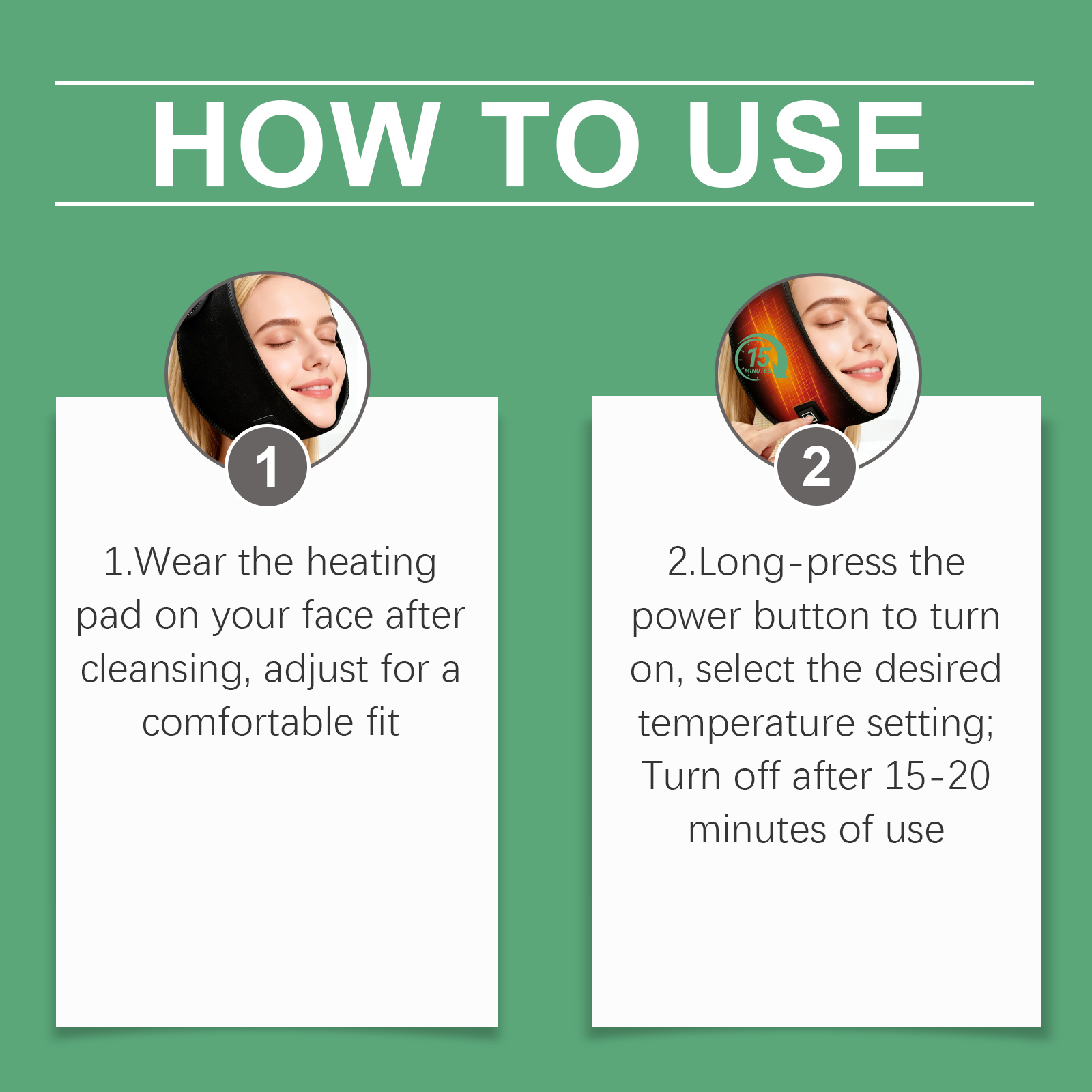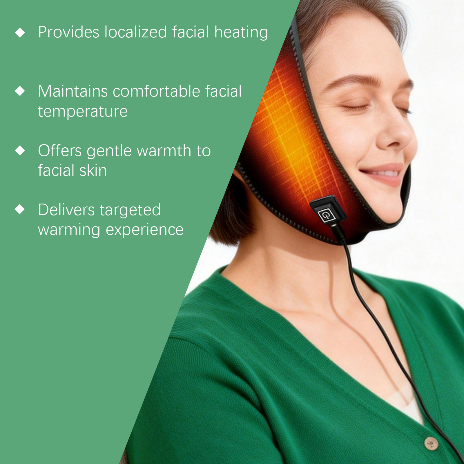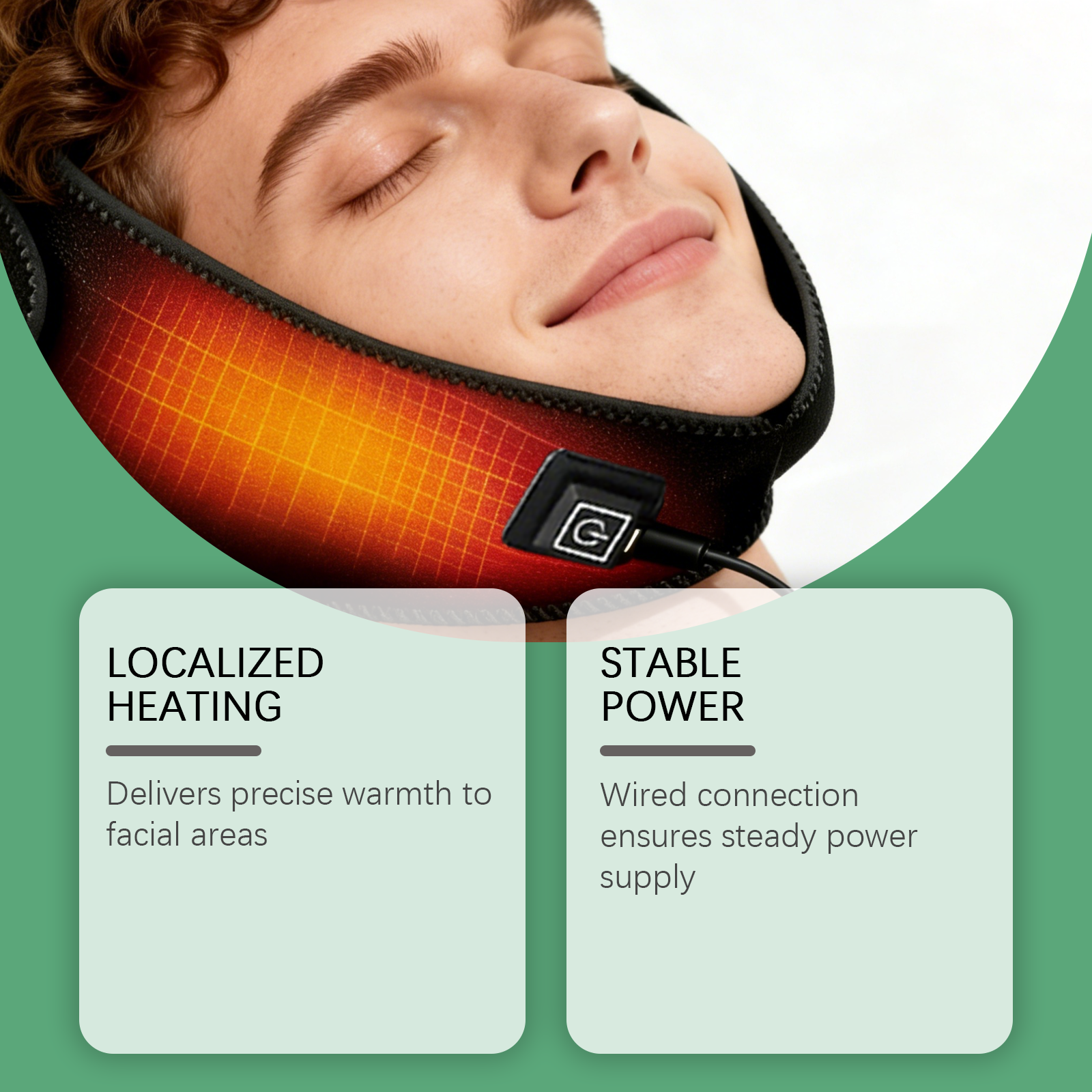 我们的简易暖脸加热面罩,由潜水料精心调配而成。专为面部区域提供精准的温暖设计。使用方法极为便捷:1.洁面后,将加热垫贴于面部,调整至舒适贴合度。2.长按电源按钮开机,选择所需温度设置,使用15-20分钟后关闭。并且可以有线连接,确保稳定供电。