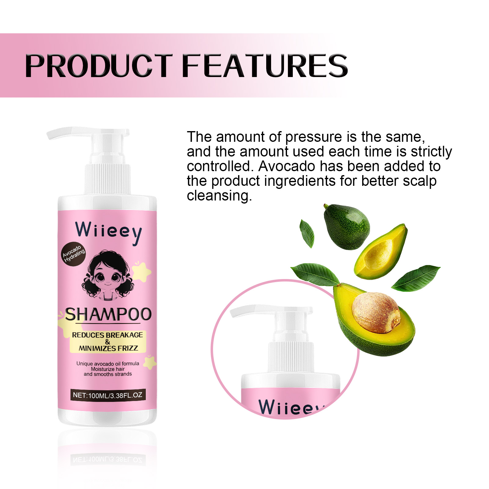 Wiieey Avocado Hair Care Shampoo Moisturizes Scalp Smooth Oil Control Fluffy Long Lasting Fragrance Mild Shampoo