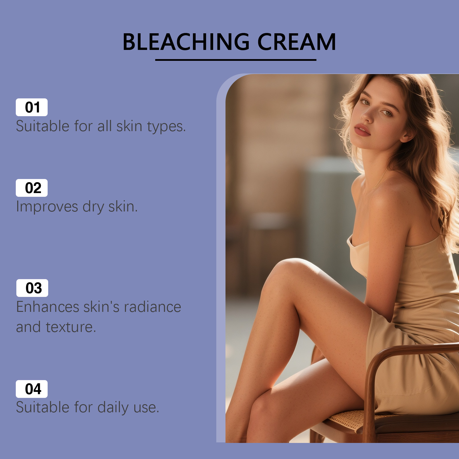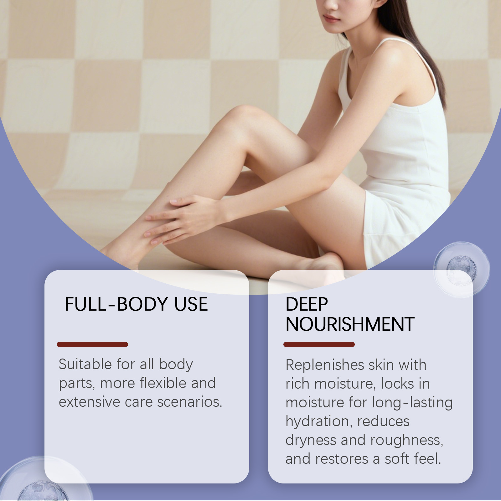 我们的身体亮白护理霜,由矿油、二氧化钛精心调配而成。专为肌肤补充丰富水分锁住水分以实现持久保湿,减少干燥和粗糙感,并恢复柔软触感设计。使用方法极为便捷:清洁并擦干皮肤。取适量本产品均匀涂抹于身体所需部位,并轻轻按摩以促进吸收。并且它可以有助于提亮肤色,平衡皮肤颜色状态。