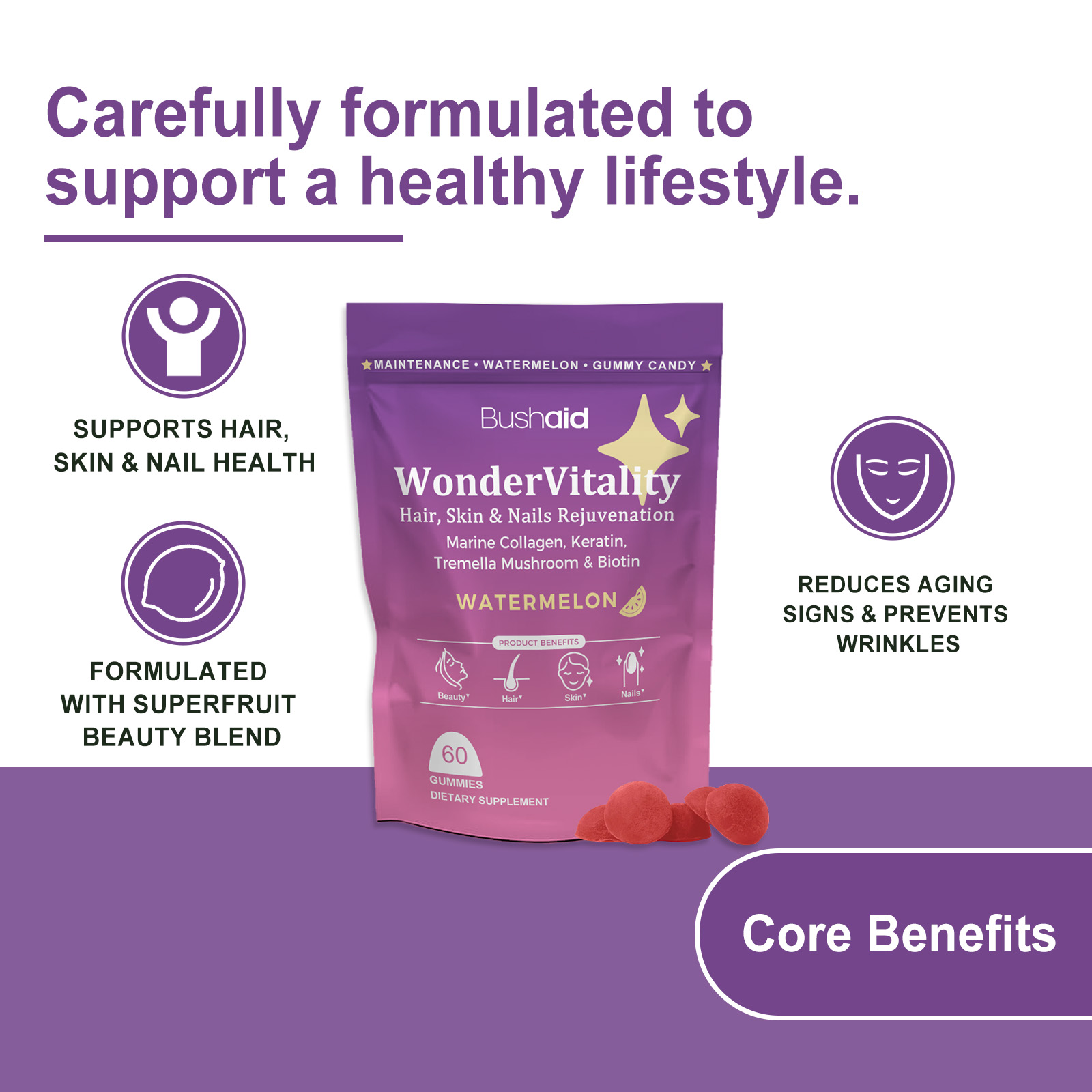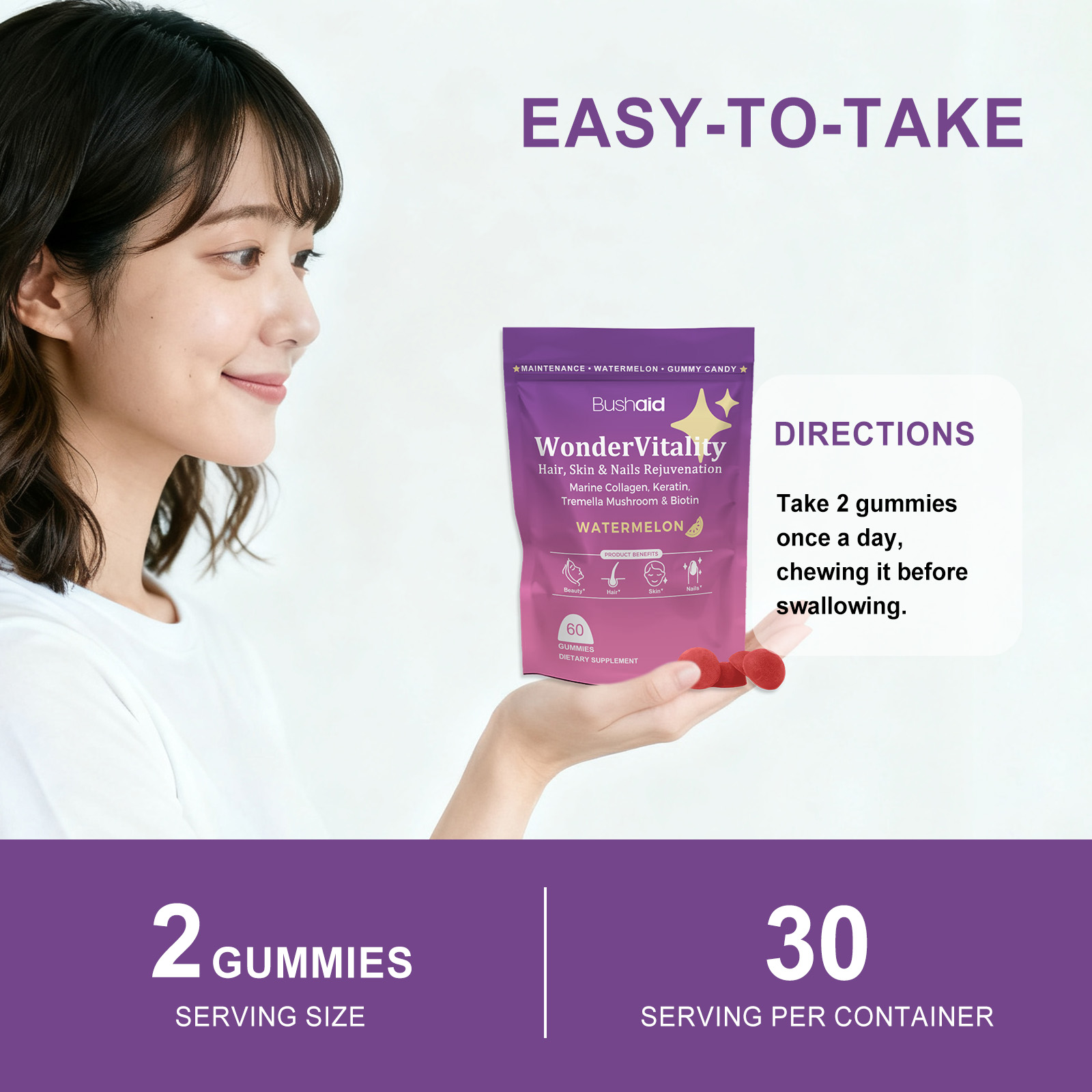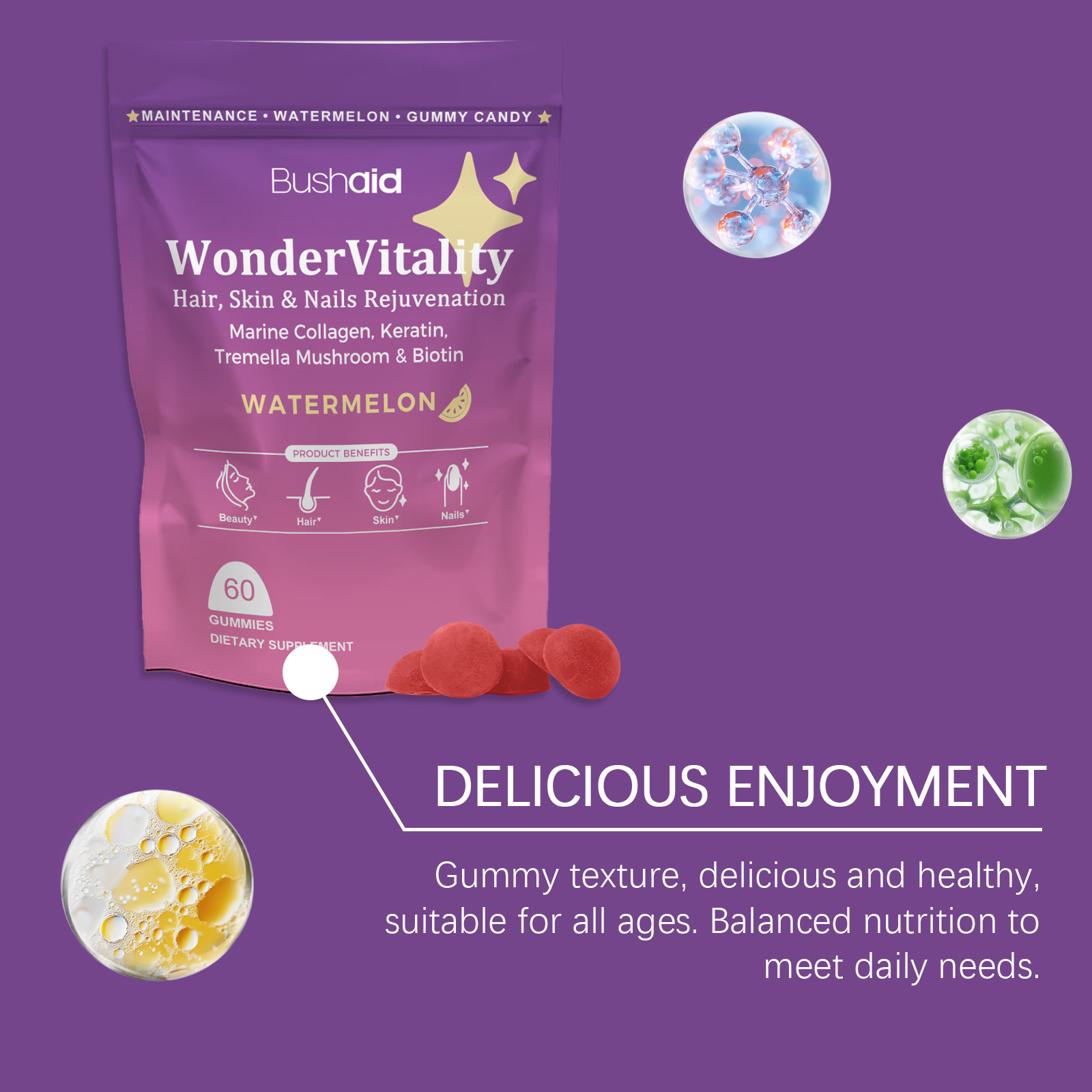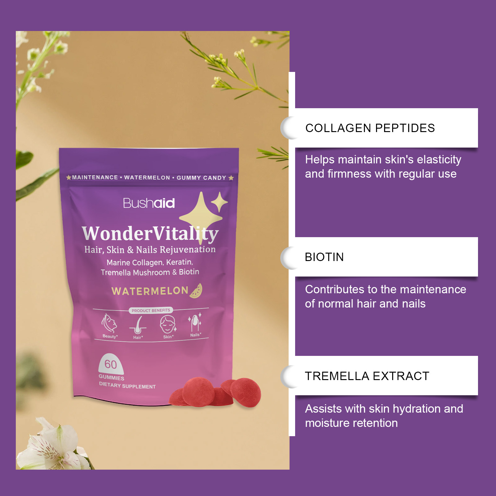 BushAid Watermelon flavored Collagen gummy candy Supplement