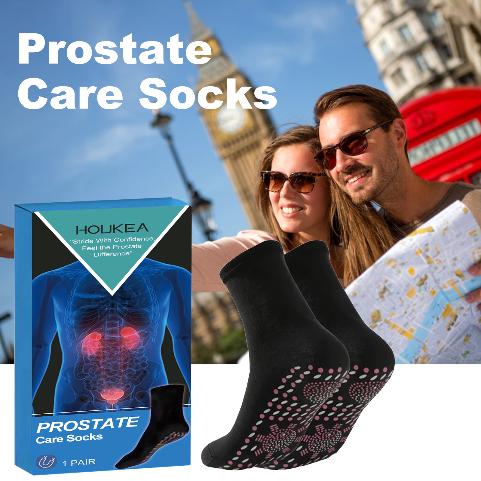 Houkea Prostate Care Socks, Breathable Skin Friendly Soft Comfortable Non-Slip Outdoor Sports Fitness Socks Foot Care