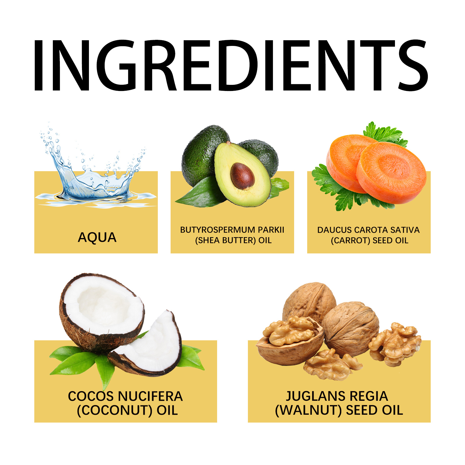 | 成分 | 乳木果油、胡萝卜籽油、椰子油 |