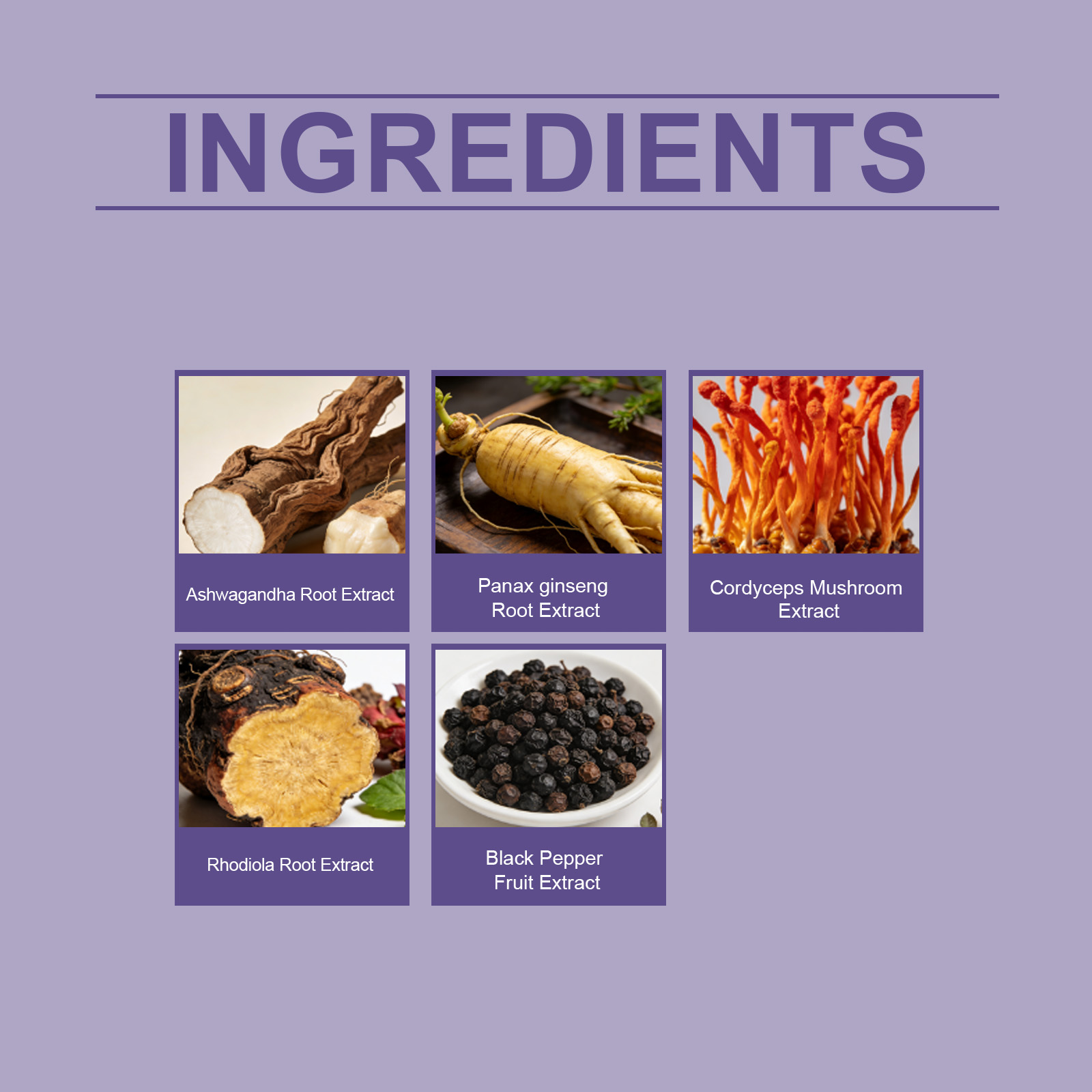 | 成分 | 南非醉茄根提取物、人参根提取物 |