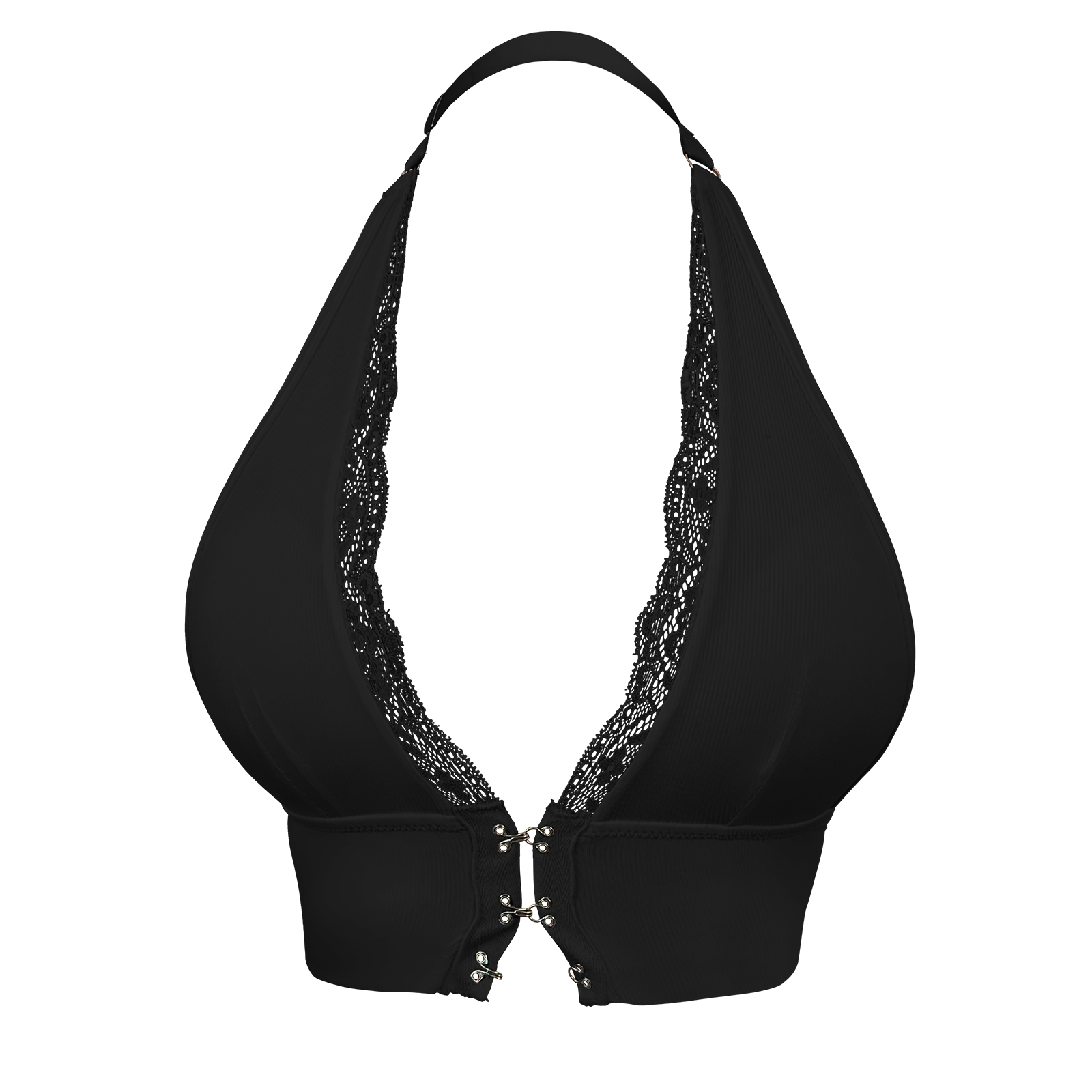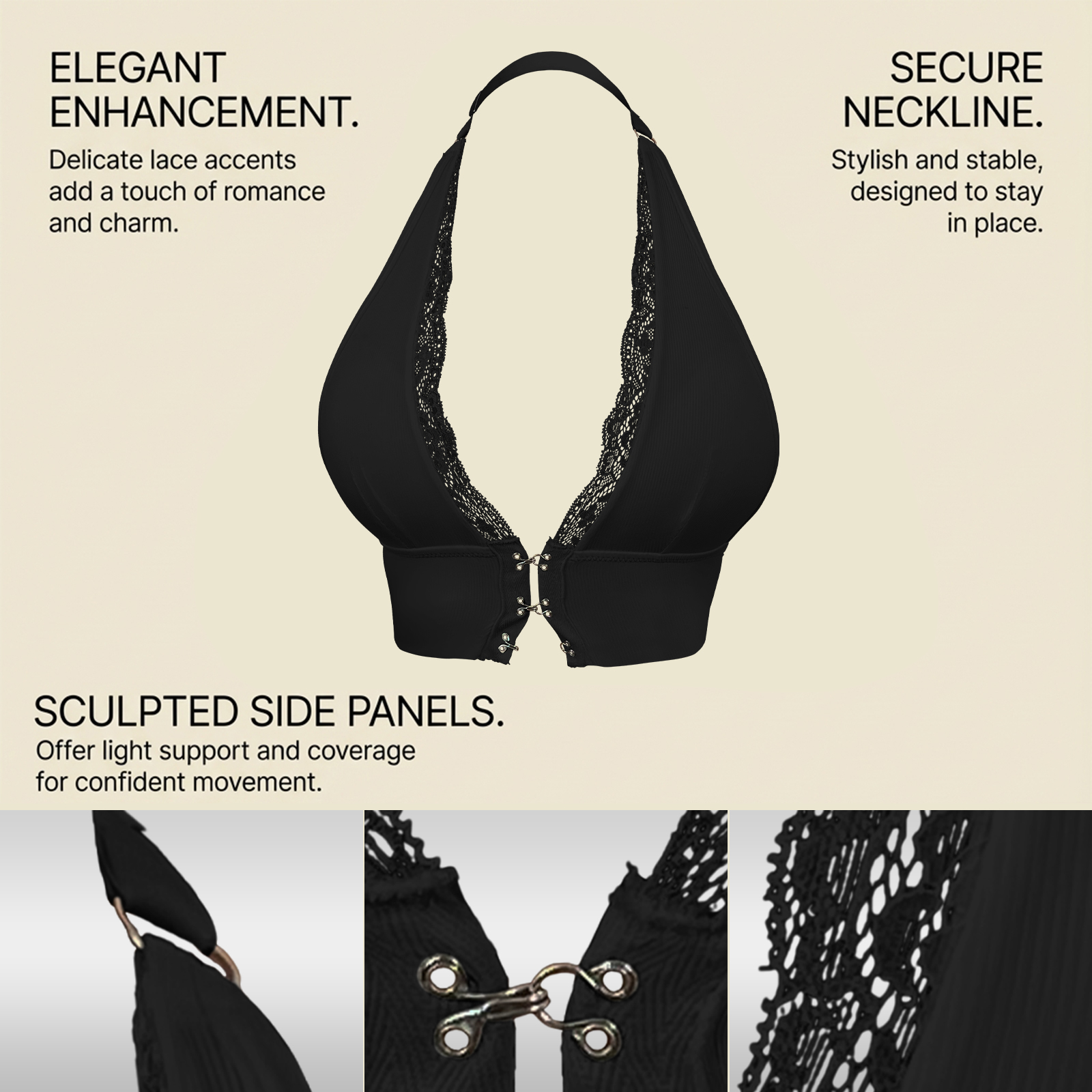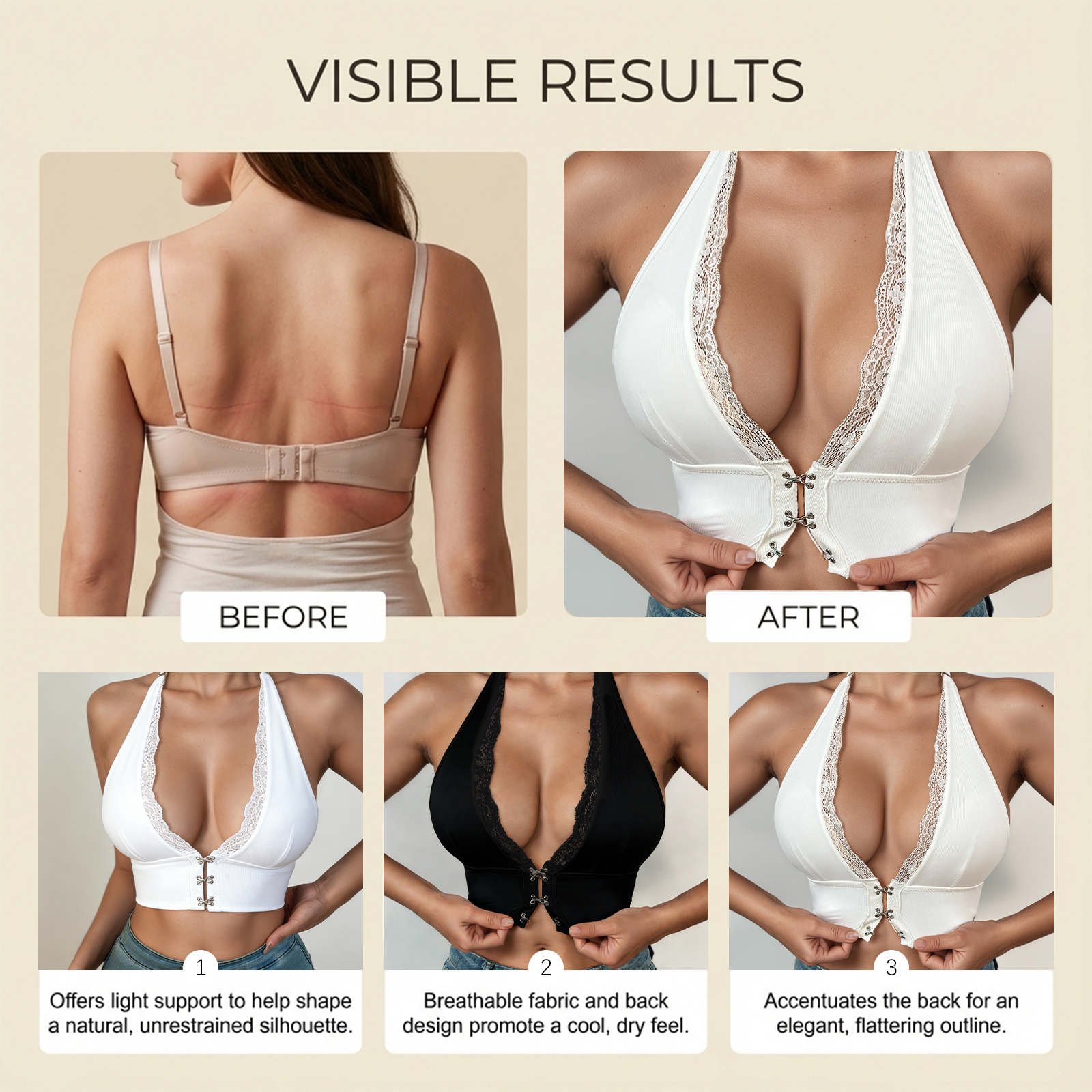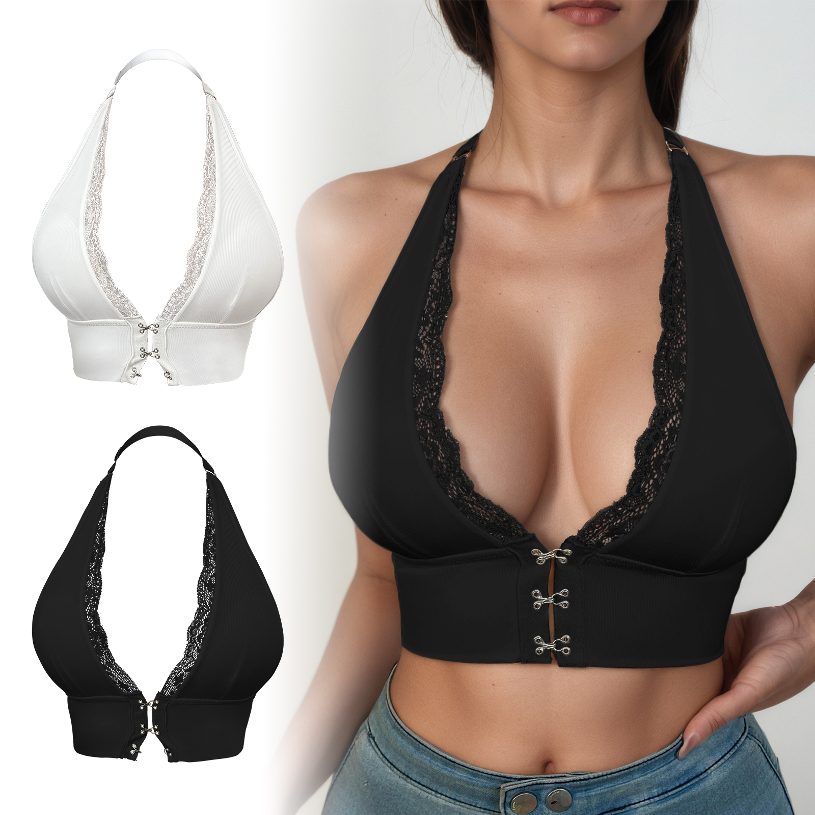 我们的挂脖深 V 蕾丝露背内衣,由棉纶86%,氨纶14%精心制作而成。专为提升贴身穿着的舒适感设计。并且采用高弹面料,适配多种身形,贴合胸部曲线,既能修饰轮廓又不紧绷。 短款收腰版型,可外穿作吊带,也能内搭衬衣,穿搭场景丰富不局限。 前扣金属件质感耐用,开合顺畅不卡涩,穿脱便捷度远超传统内衣。
