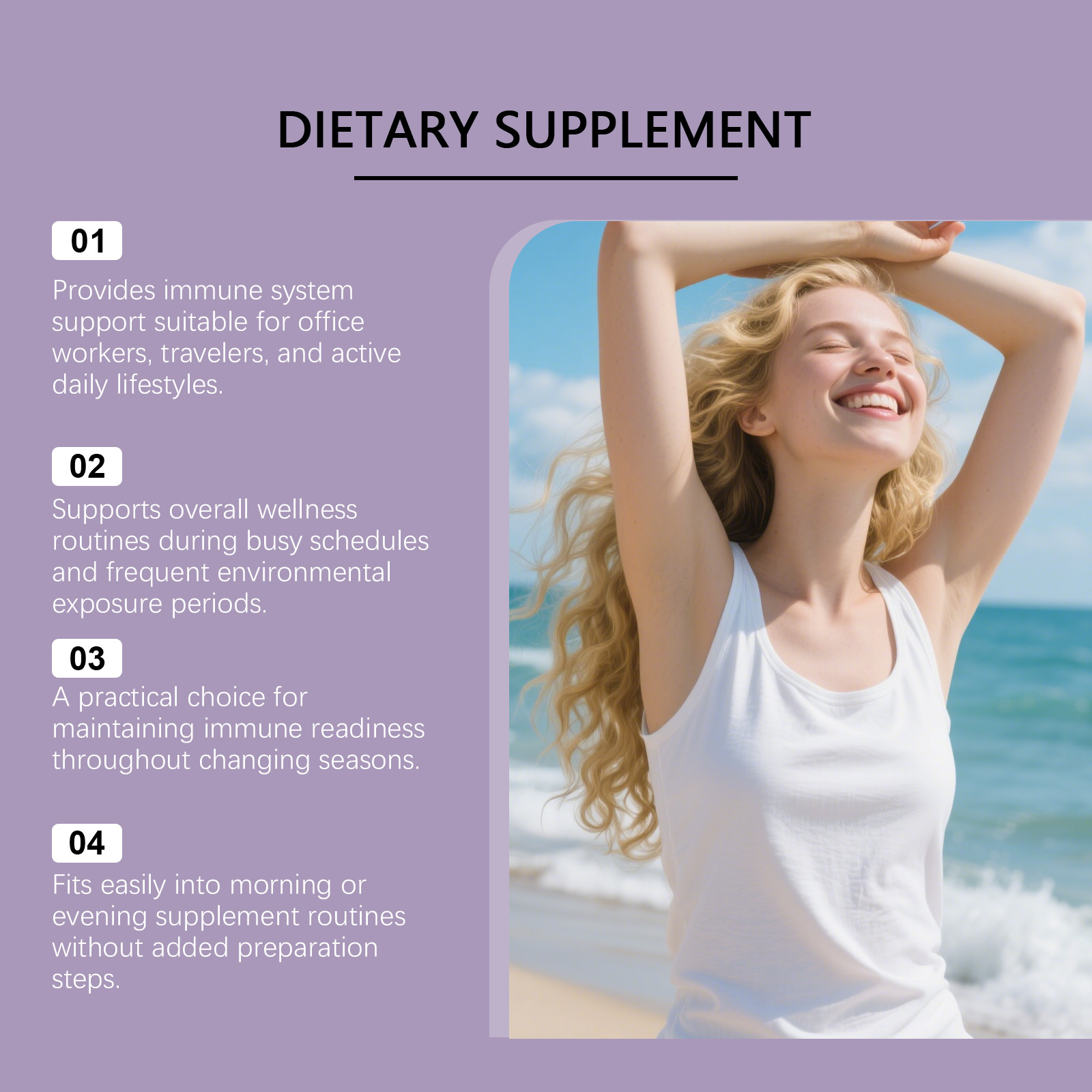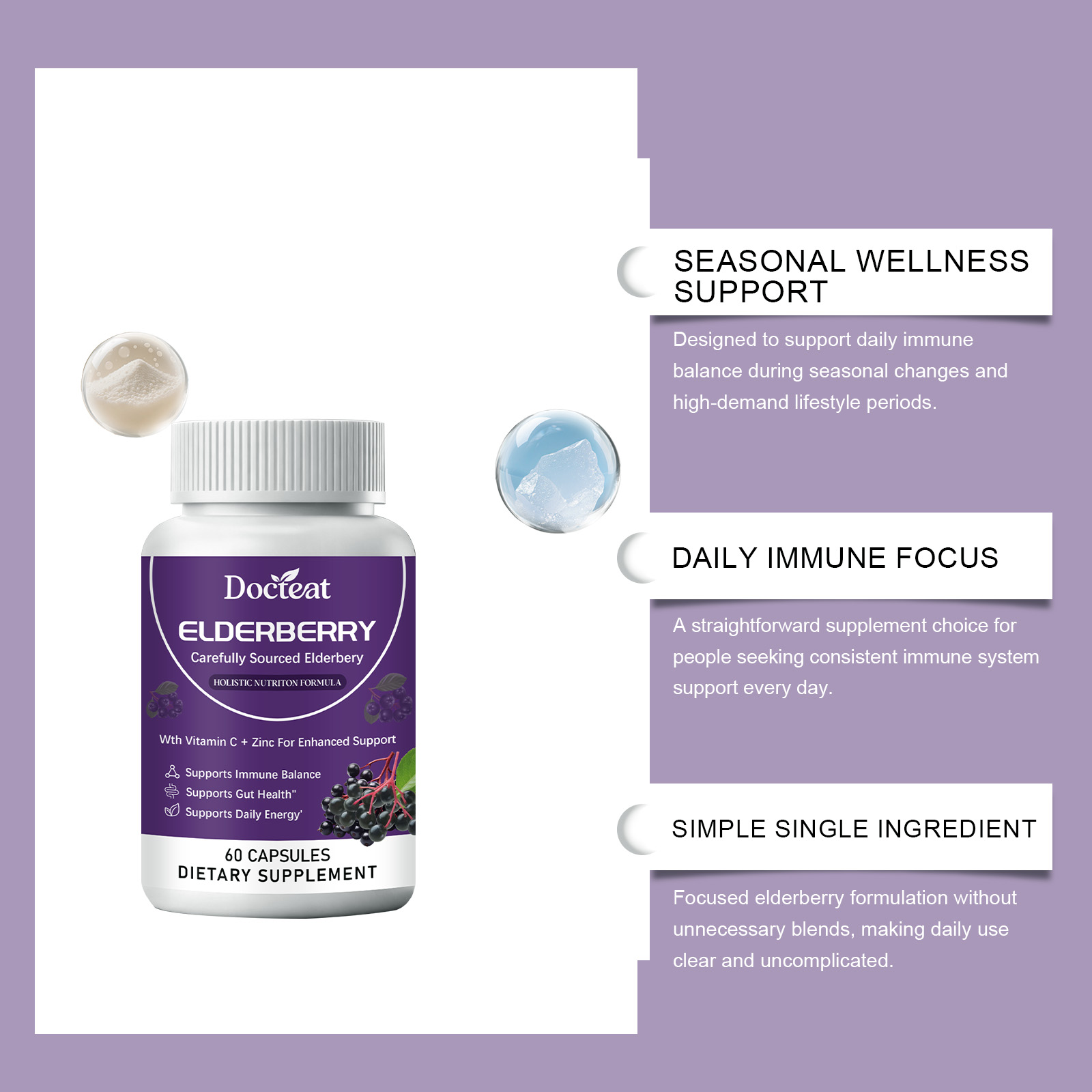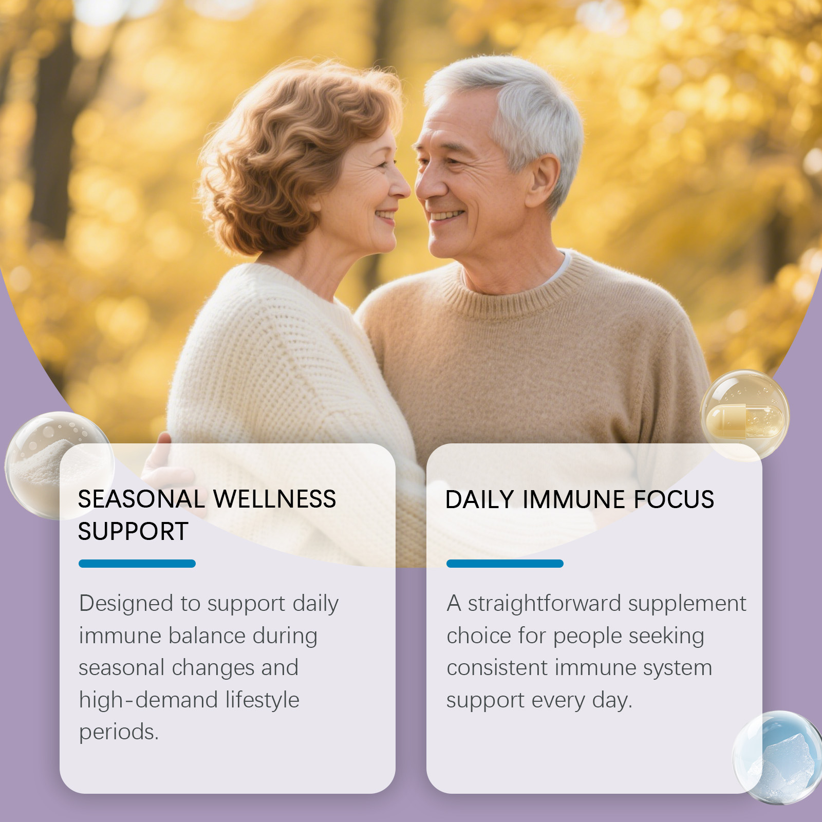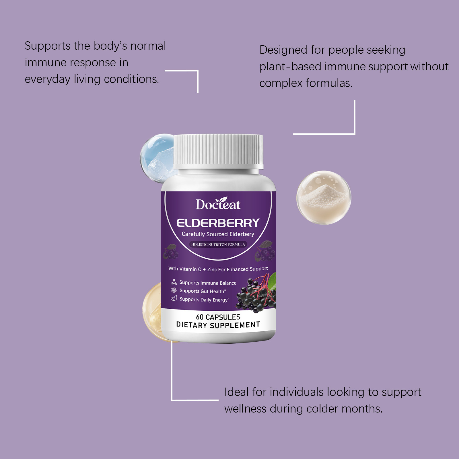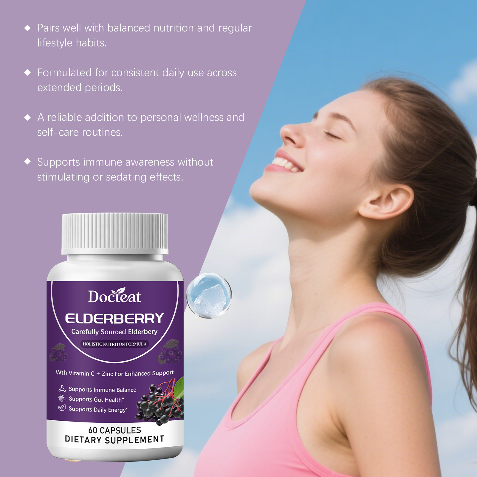 我们的接骨木支持胶囊,由接骨木黑果精心调配而成。专为用于在季节变化和高需求生活方式期间支持日常免疫平衡设计。使用方法极为便捷:每天服用2粒胶囊。并且它可以为办公室工作者、旅行者和活跃的日常生活提供免疫系统支持。