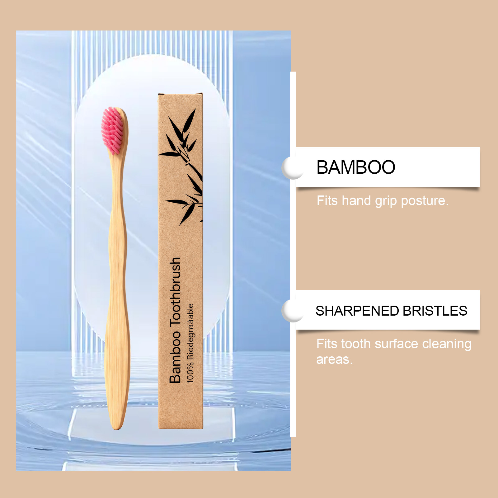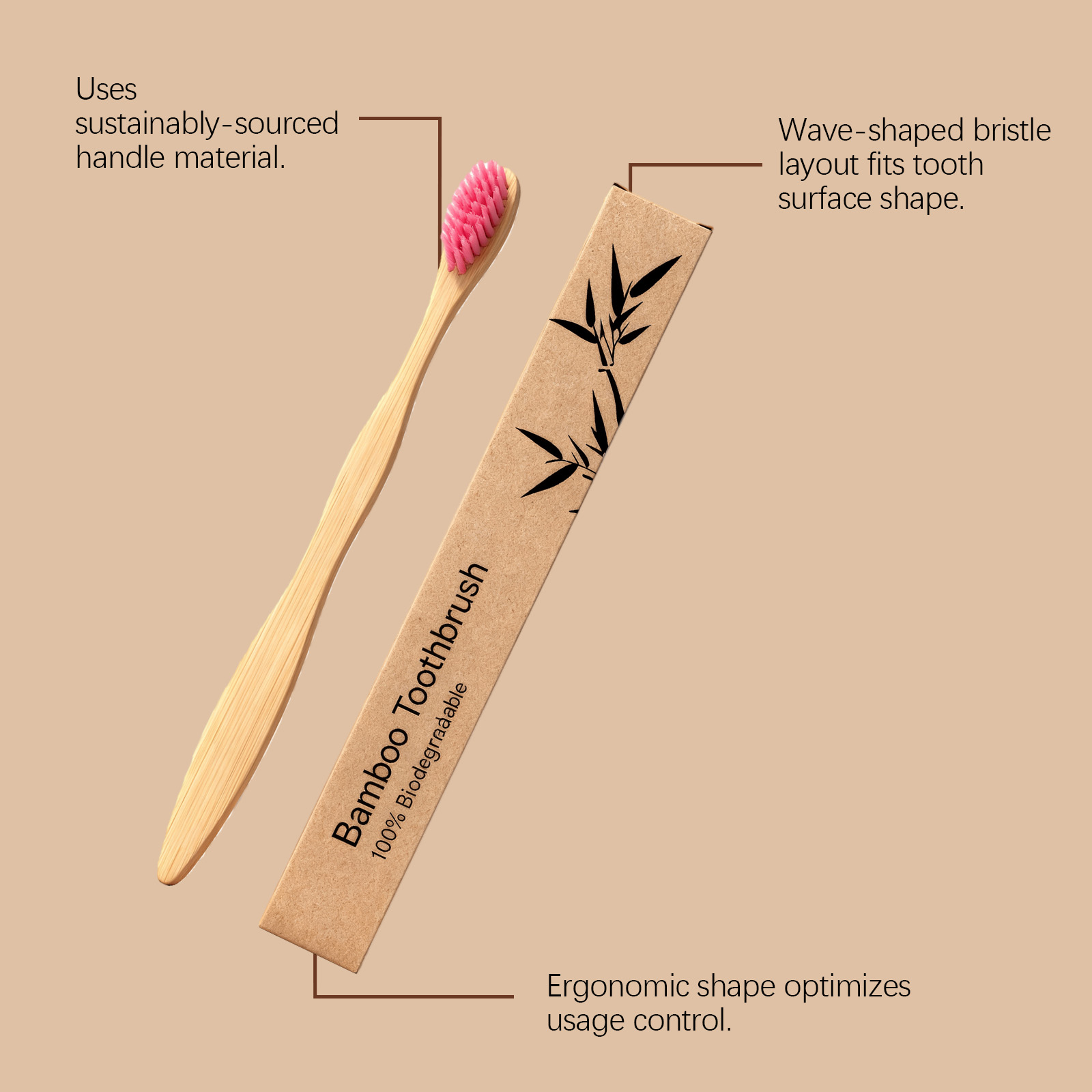 AMZ Wavy Bamboo Toothbrush (Pink) With A Soft Bristle Head Is Suitable For Daily Teeth Cleaning And Is Ideal For Household Bamboo Toothbrushes