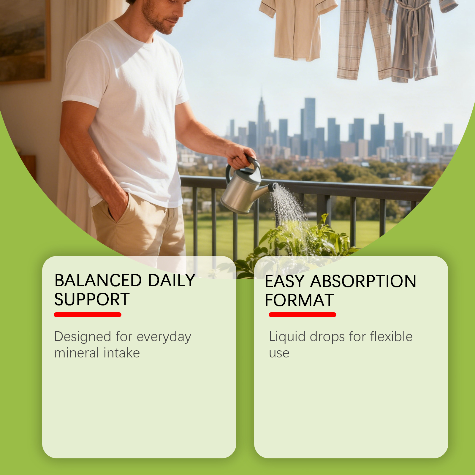 我们的复合营养滴剂,由钙、镁精心调配而成。专为日常矿物质摄入设计。使用方法极为便捷:每日两次,每次1毫升,可直接服用或与食物混合服用。并且它可以适合不同的日常作息,无需药片即可支持矿物质平衡。