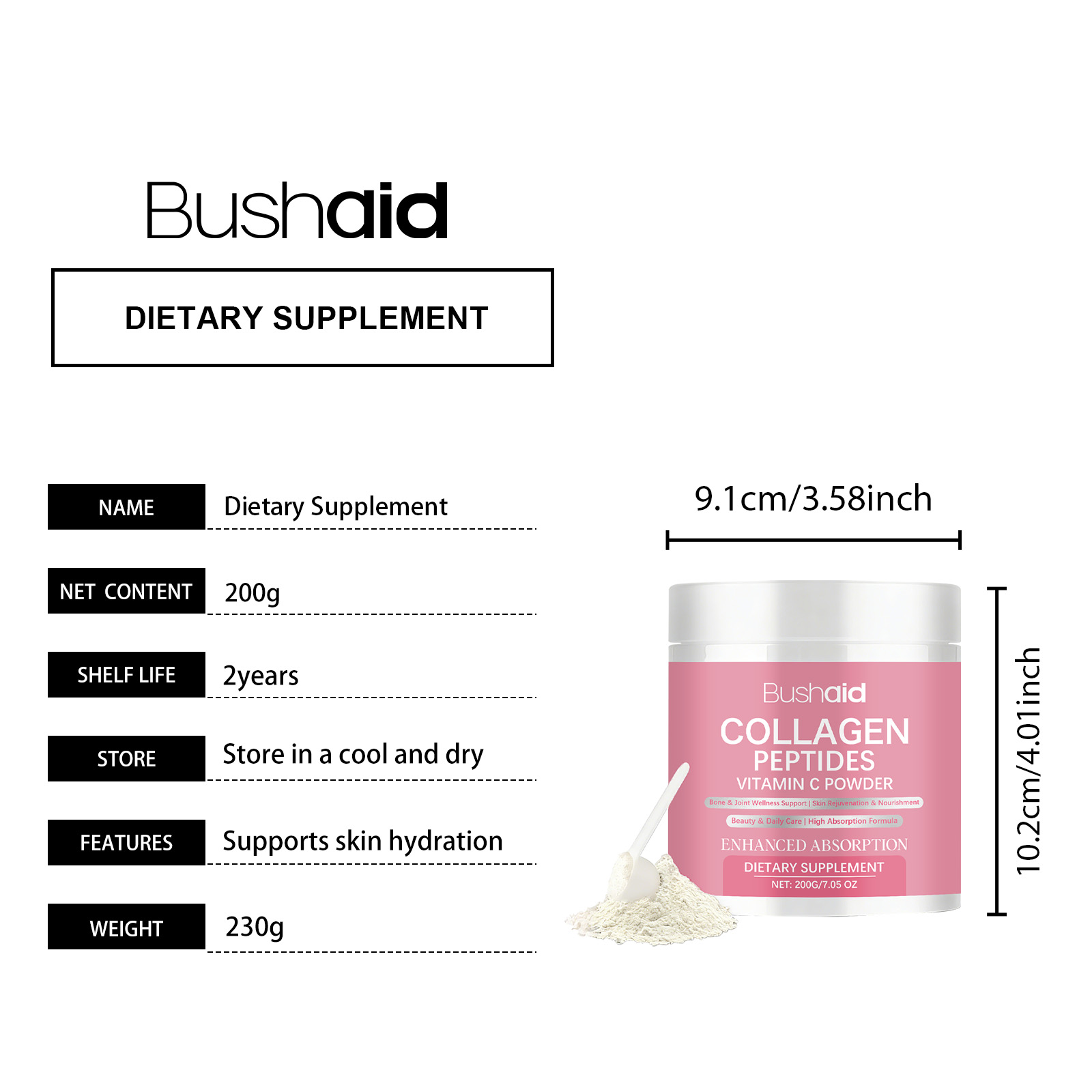 BushAid Collagen Vitamin C Dietary Powder Daily Maintenance