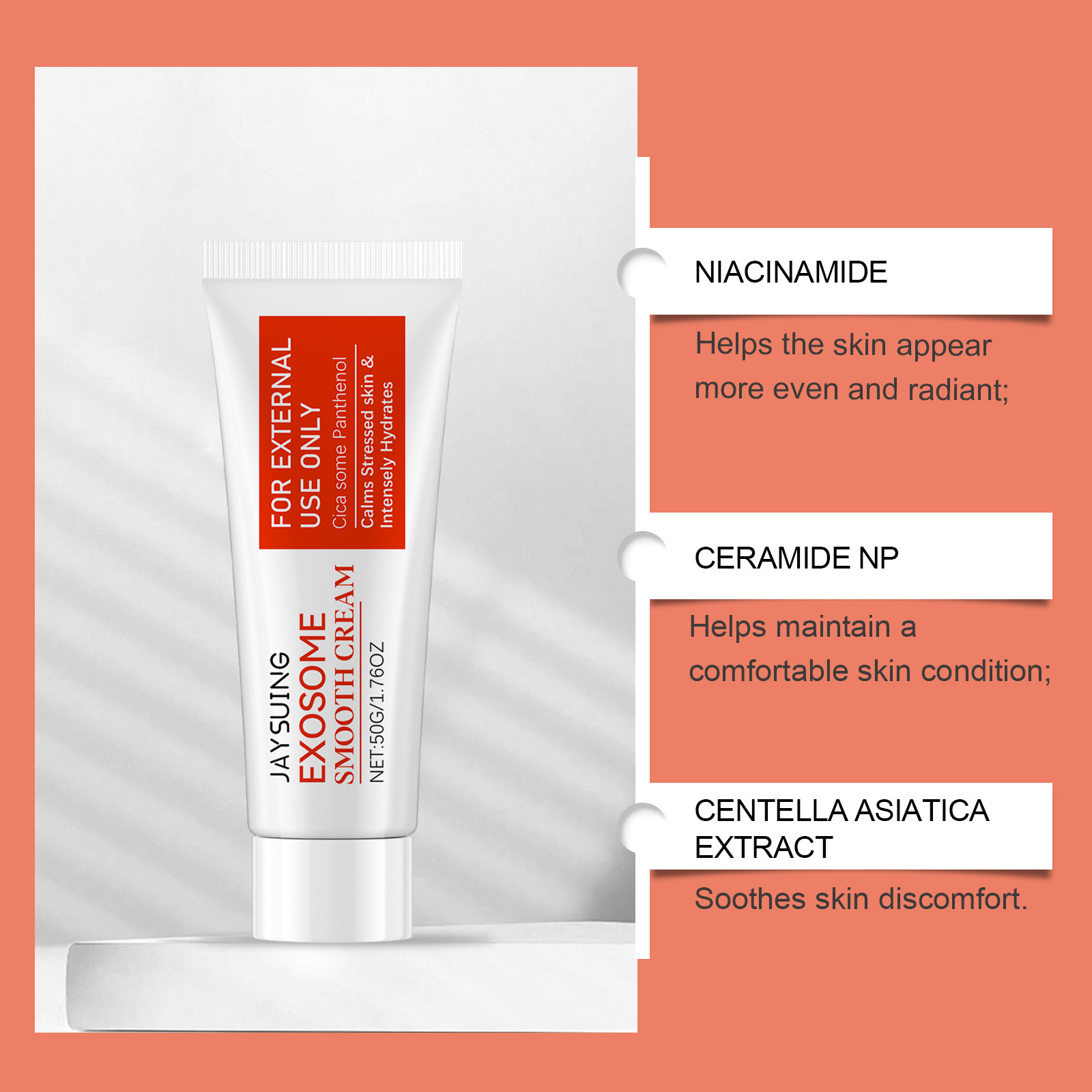 我们的积雪草保湿护理霜,由卡波姆、精氨酸精心调配而成。专为肌肤补充丰富水分锁住水分,以实现持久保湿设计。使用方法极为便捷:清洁并擦干患处,取适量涂抹于皮肤上,轻轻按摩至完全吸收。并且能减少干燥和粗糙感,并恢复柔软触感。