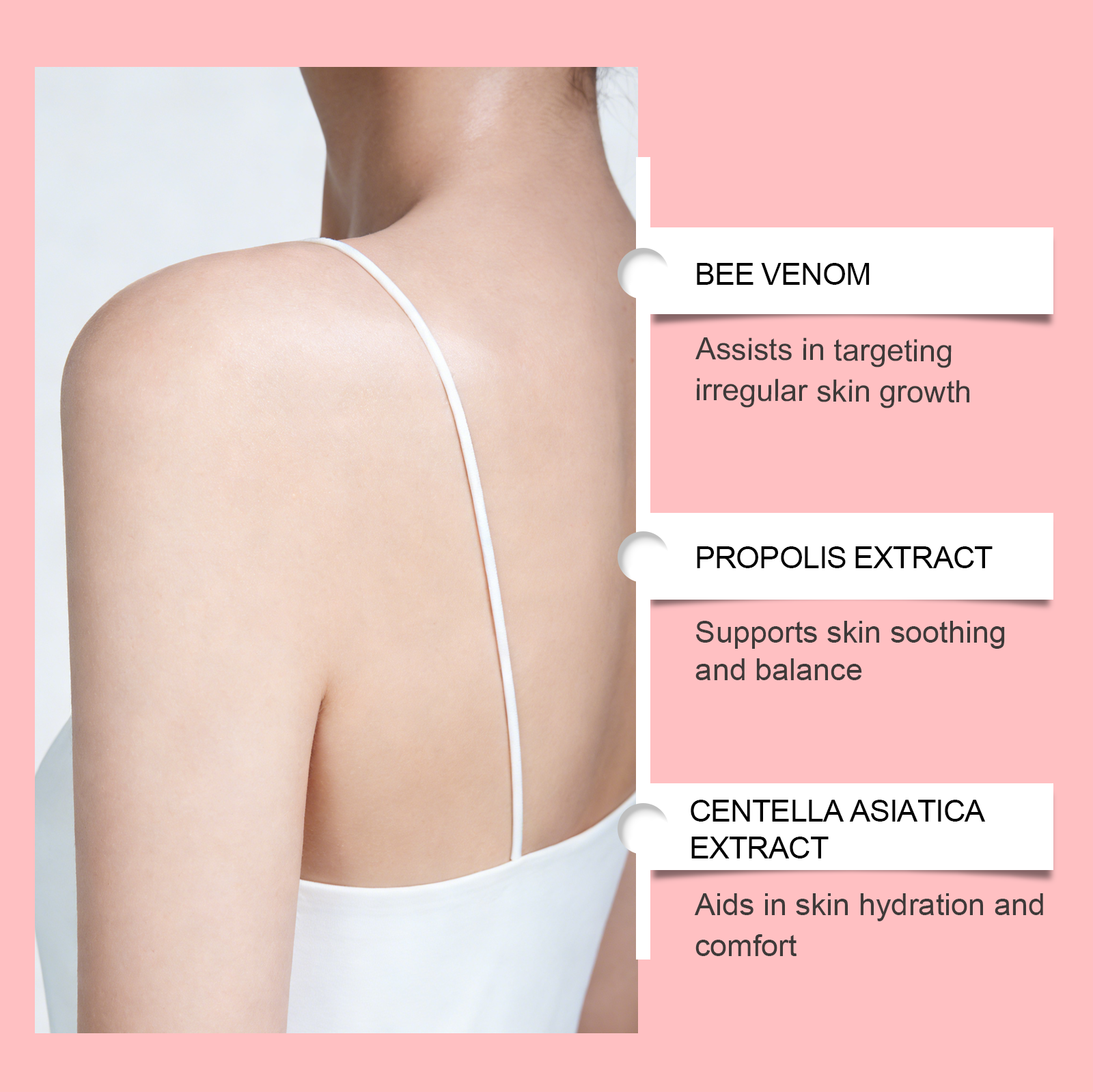 我们的肌肤精华液,由甘油、1,2-己二醇精心调配而成。专为有助于针对不规则的皮肤生长设计。使用方法极为便捷:清洁肌肤并干燥,取适量本品点涂在疣或痣上,等待其吸收即可。并且它可以支持皮肤舒缓与平衡,有助于皮肤保湿和舒适感。