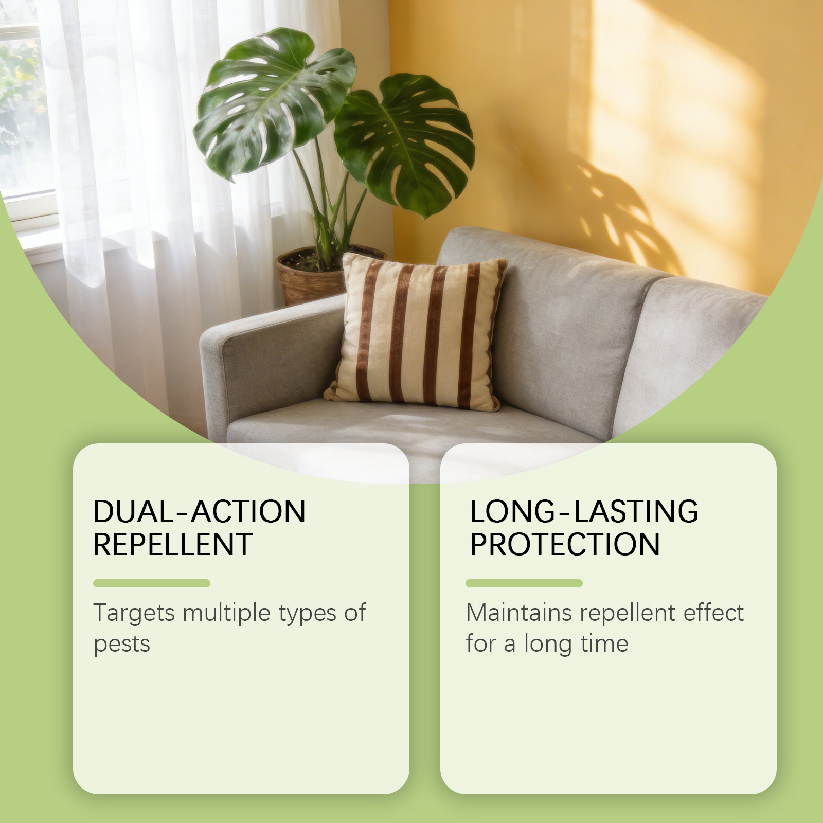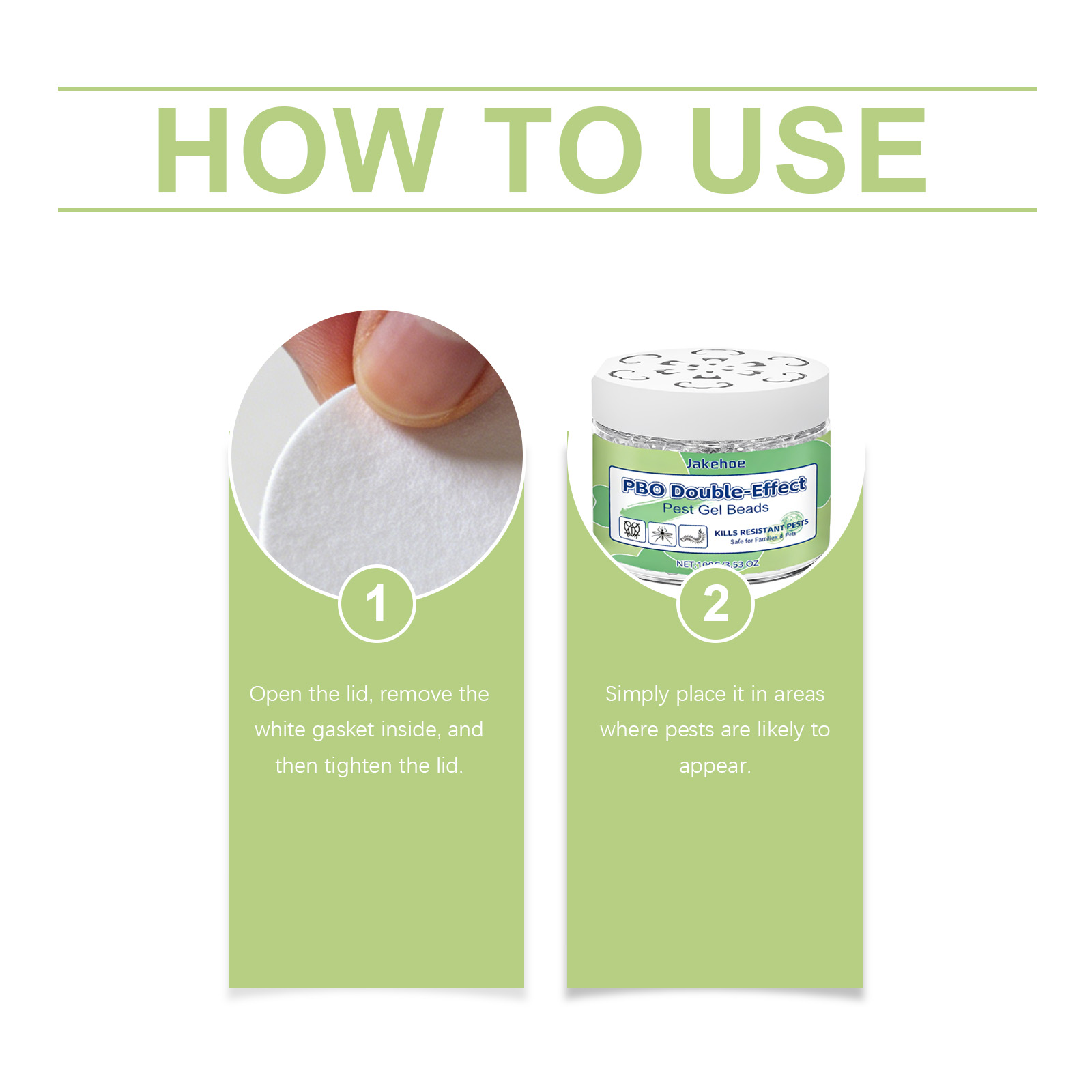 我们的双效防虫凝珠,由聚丙烯酸钠, 胡椒基丁醚精心调配而成。专为有效驱赶常见家庭害虫设计。使用方便极为便捷:打开盖子,取出内部的白色垫片,然后拧紧盖子。只需将其放置在害虫可能出现的区域。并且无刺鼻气味,适合室内居住空间。