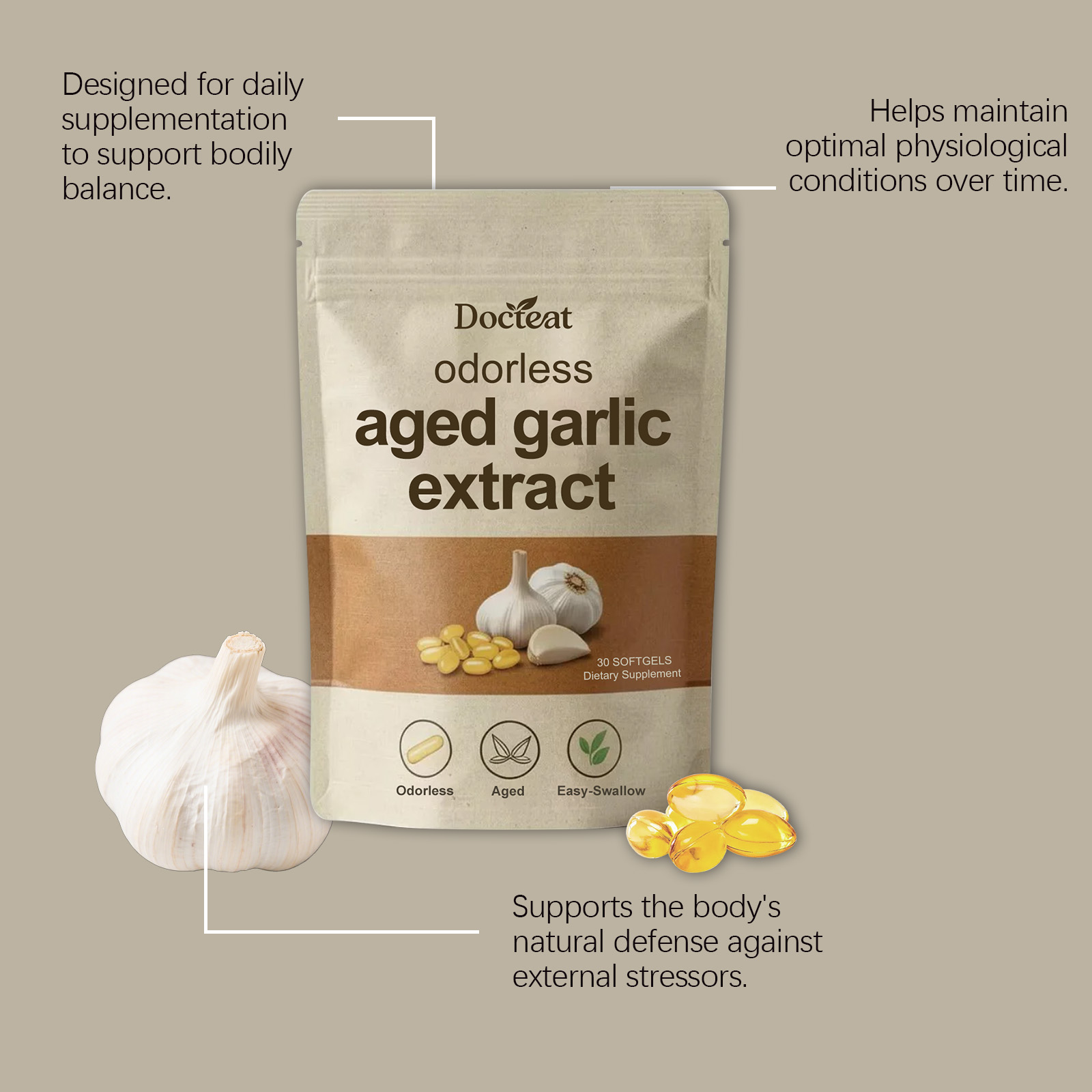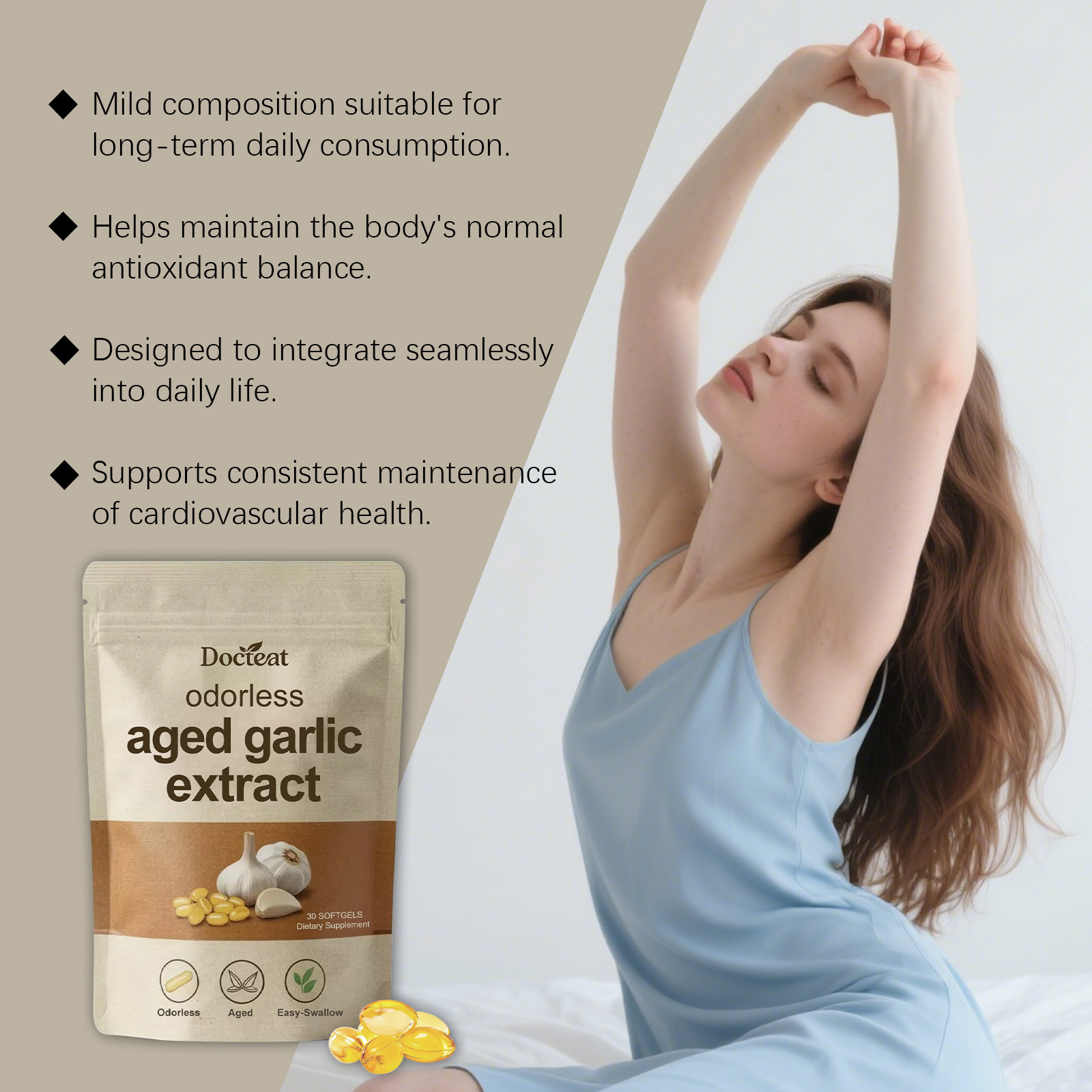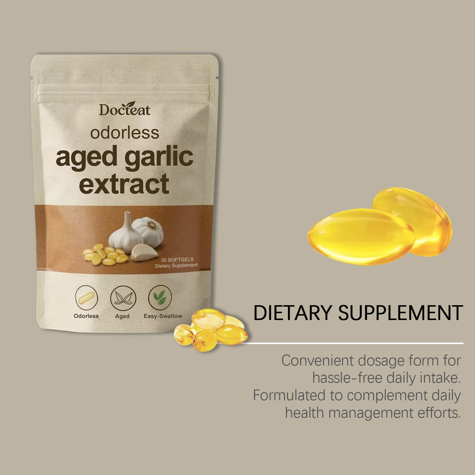 Docteat Garlic Essence Capsules - Gentle And Nourishing Daily Body Supplement Care Capsules Containing Garlic Essence