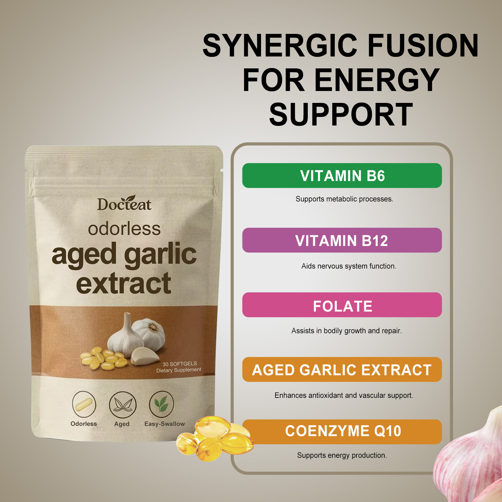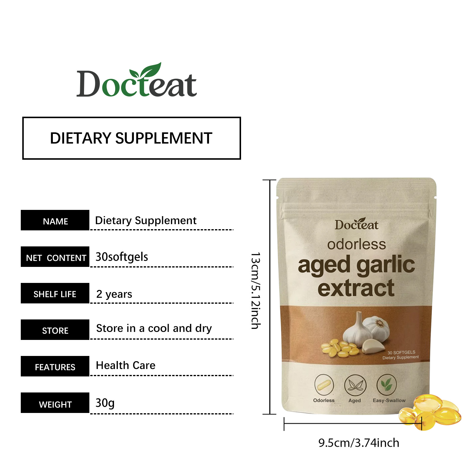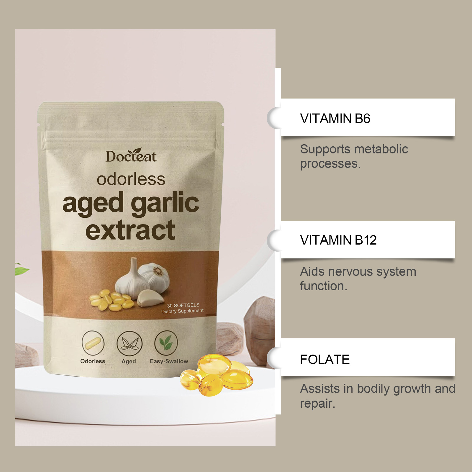 Docteat Garlic Essence Capsules - Gentle And Nourishing Daily Body Supplement Care Capsules Containing Garlic Essence