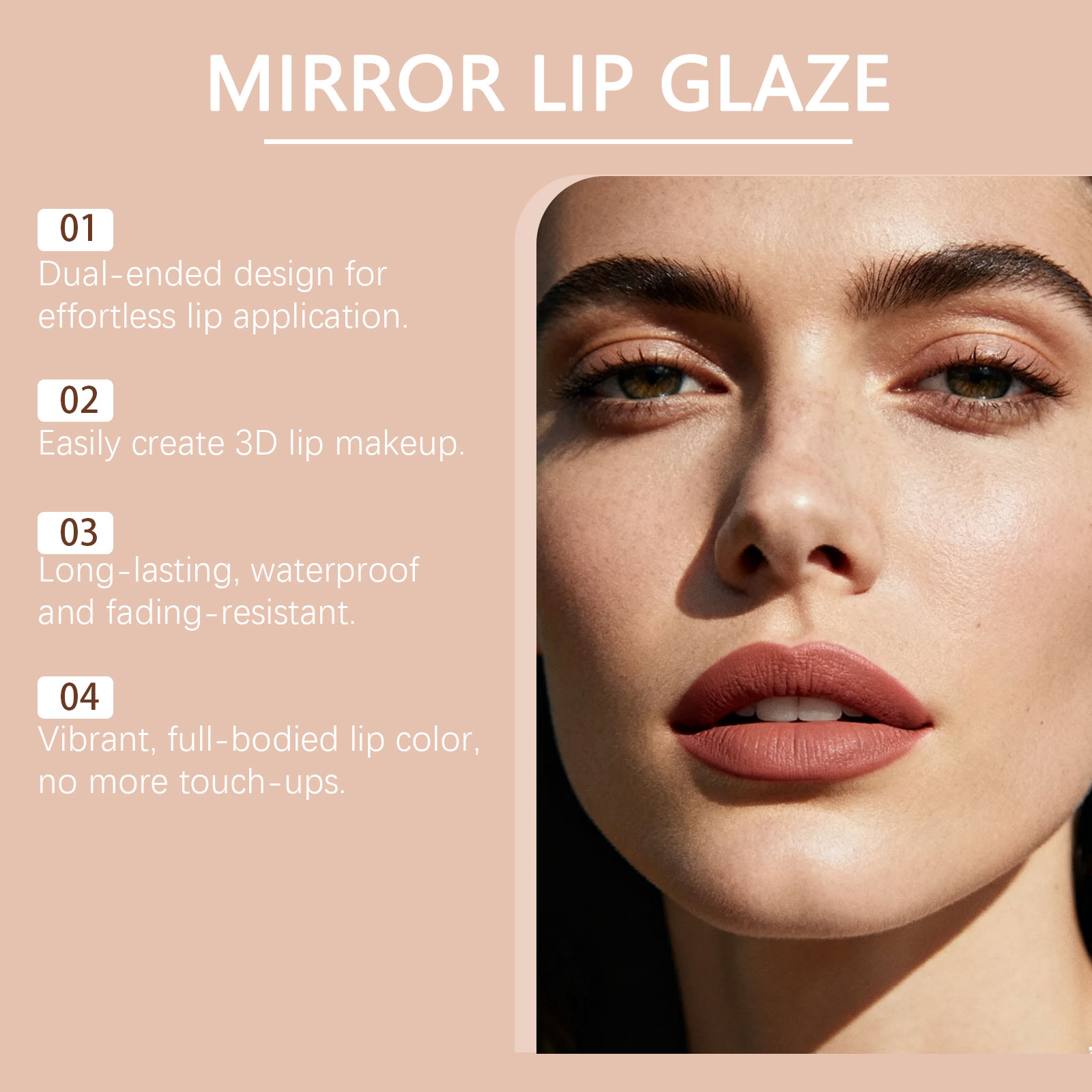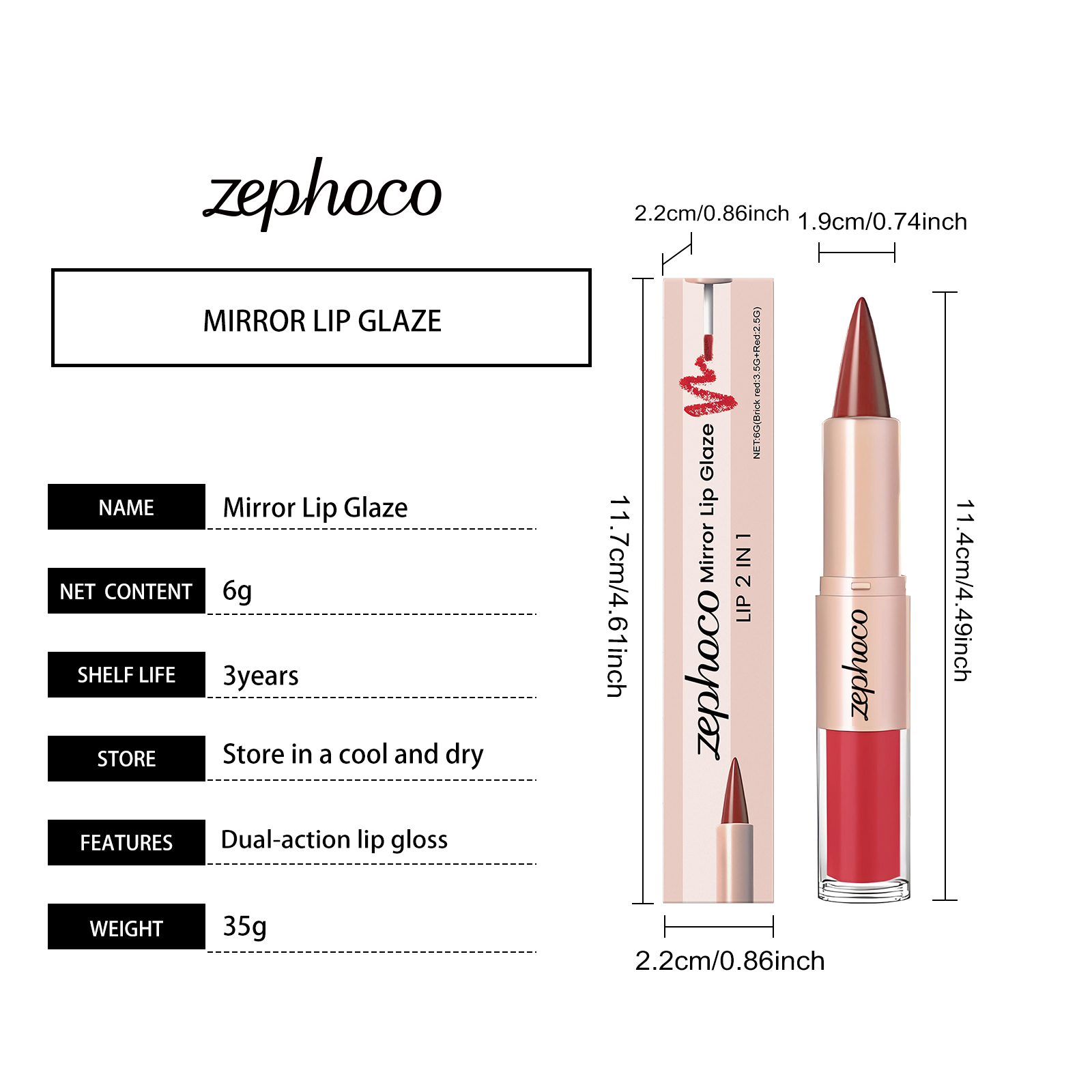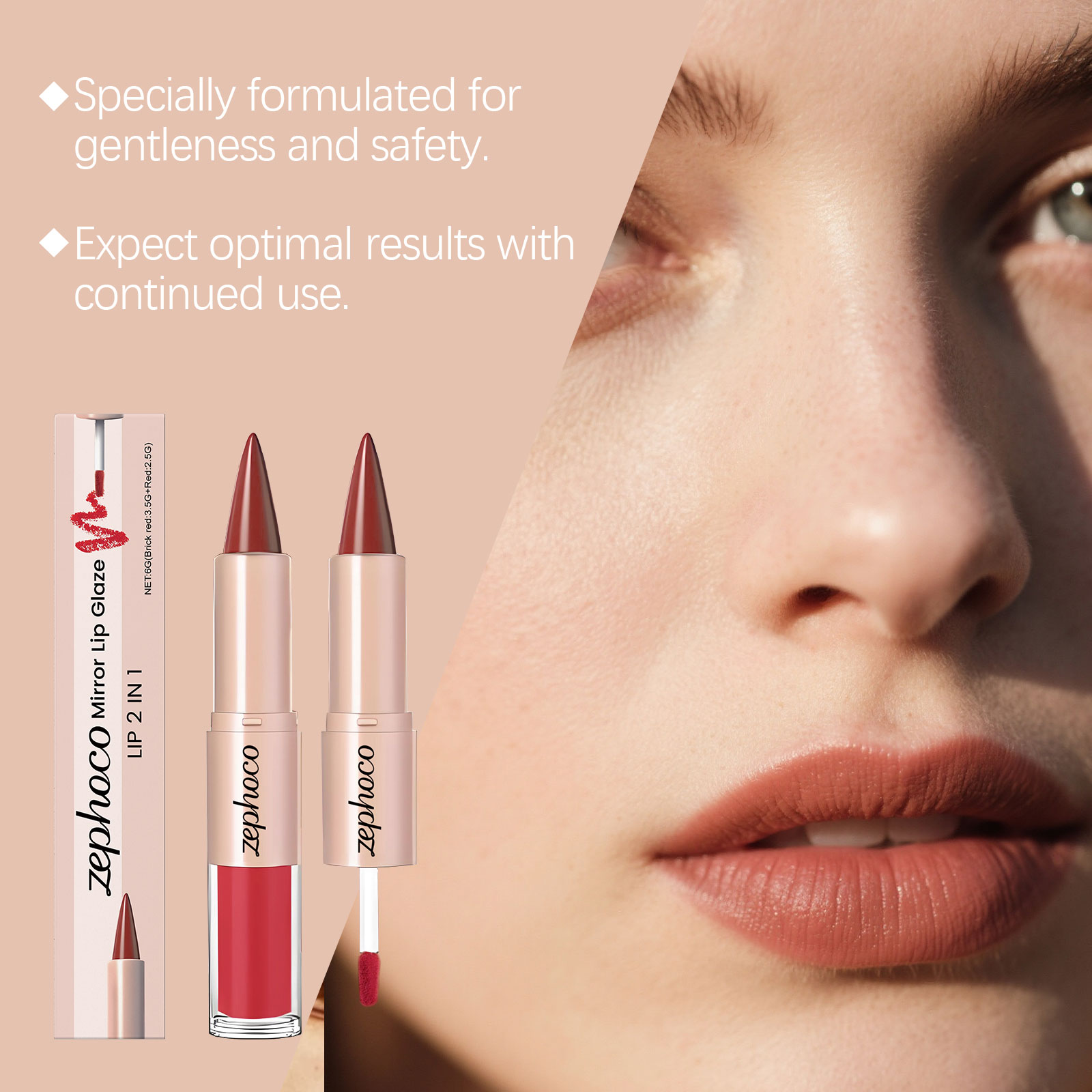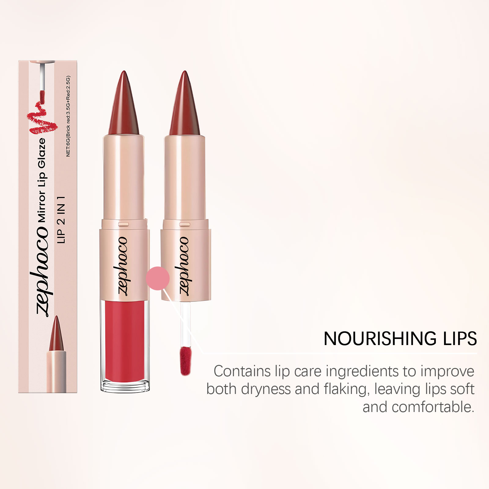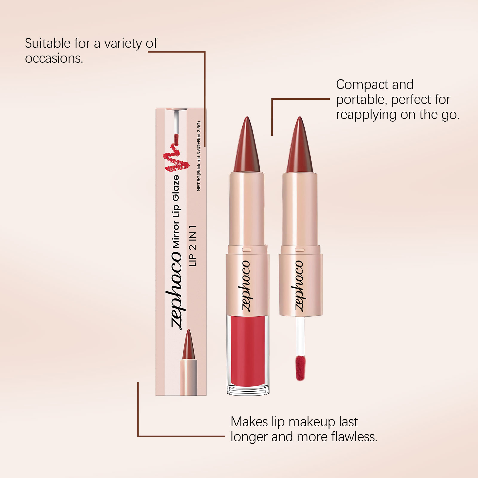 zephoco Brick Red Two-In-One Mirror Lip Gloss Lip Makeup, Bright And Beautiful Color, Lipstick Makeup