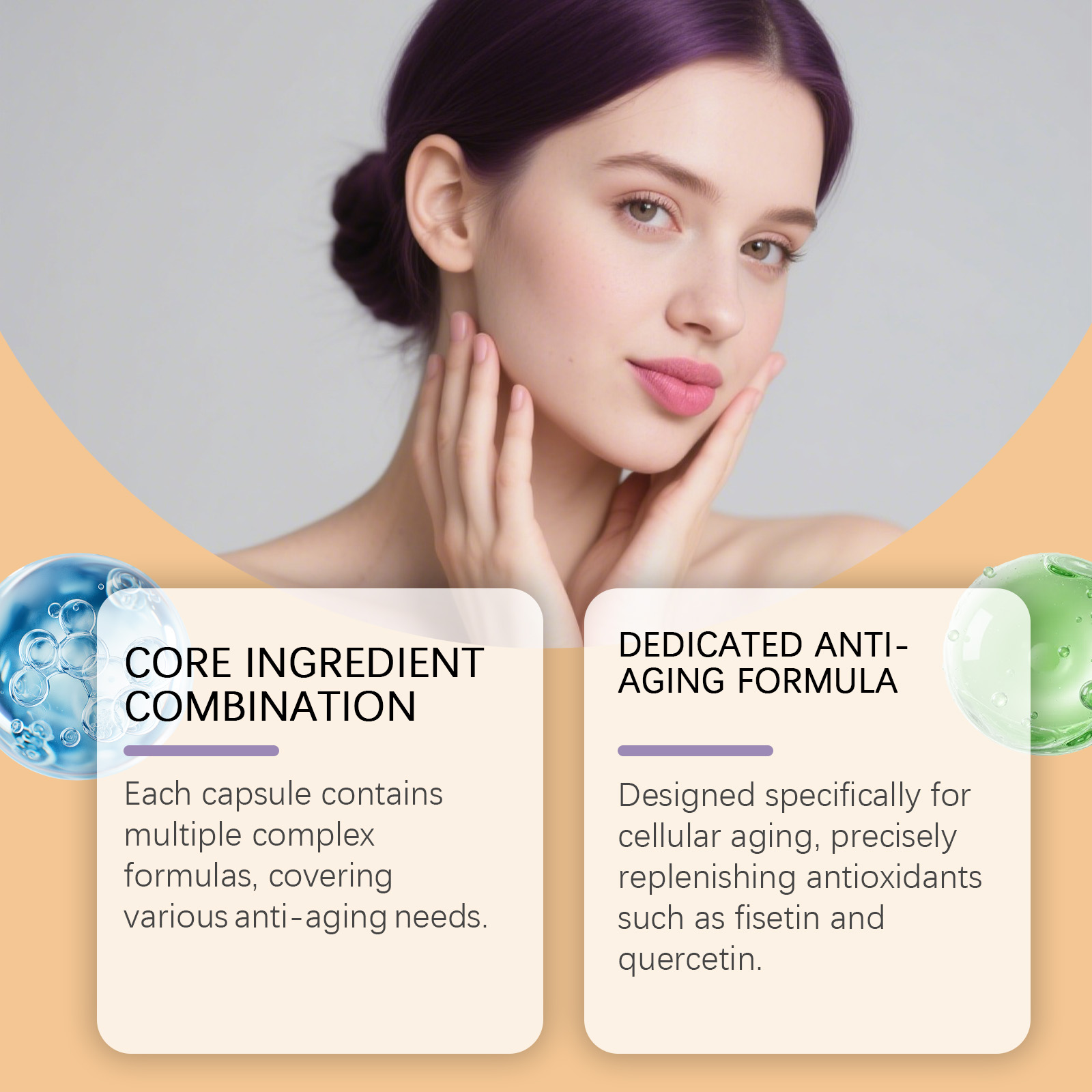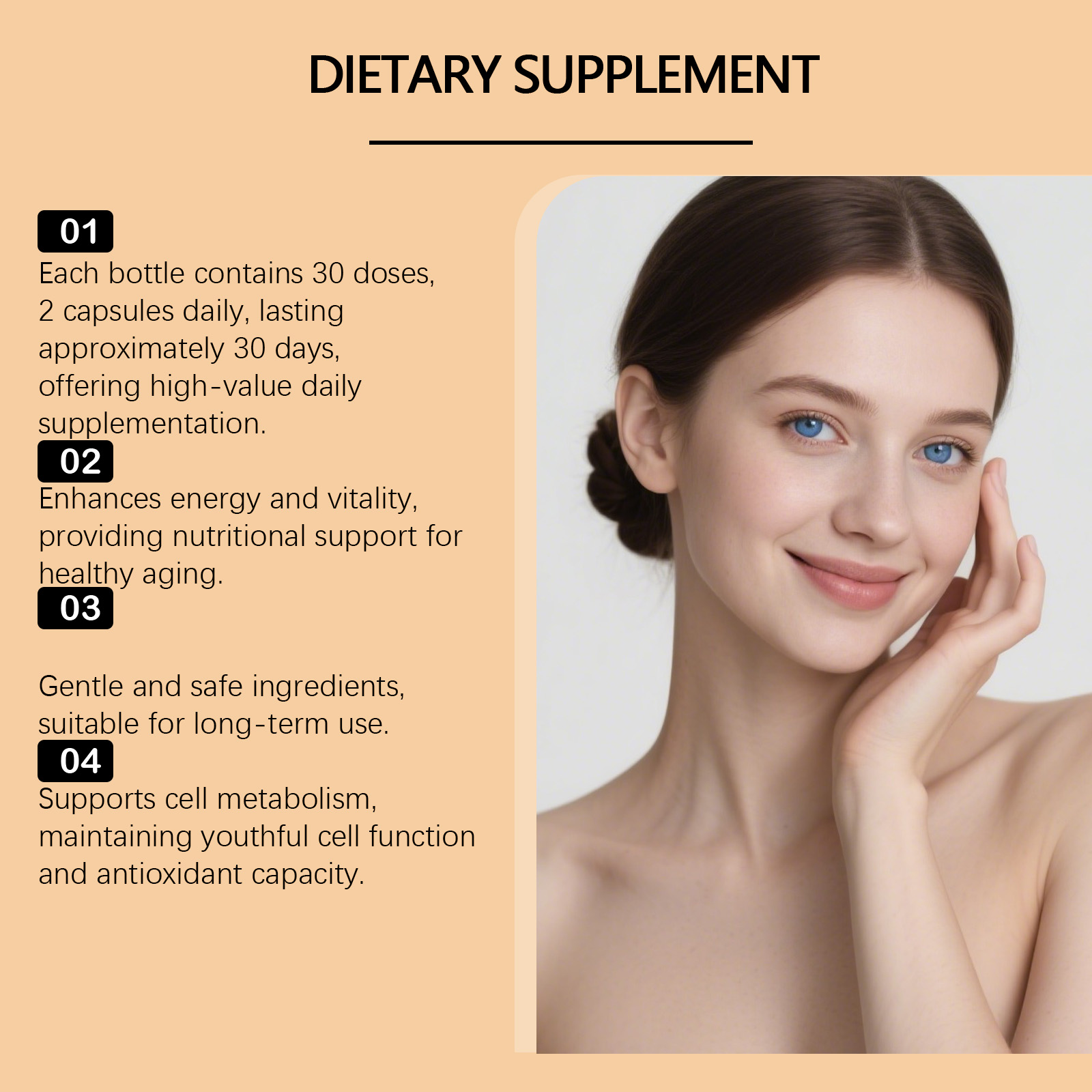 我们的身体护理胶囊,由姜黄、伏牛花提取物精心调配而成。专为细胞老化设计精准补充叶黄素和槲皮素等抗氧化剂。使用方法极为便捷:每天服用2粒胶囊,餐前30分钟用水送服。并且它可以支持细胞抗氧化活性,维持年轻外观。