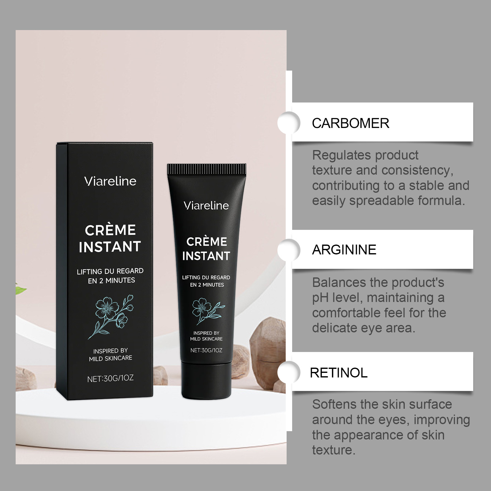 Viareline Retinol Moisturizing Eye Cream Moisturizes And Hydrates The Skin Around The Eyes, Making It Soft And Comfortable. It Is A Daily Skin Care Eye Cream