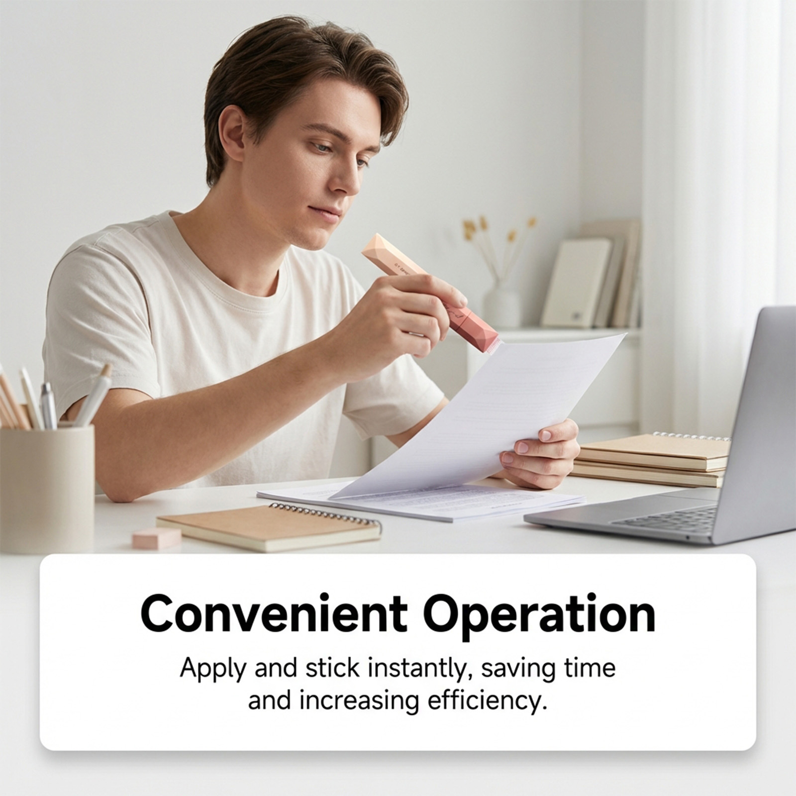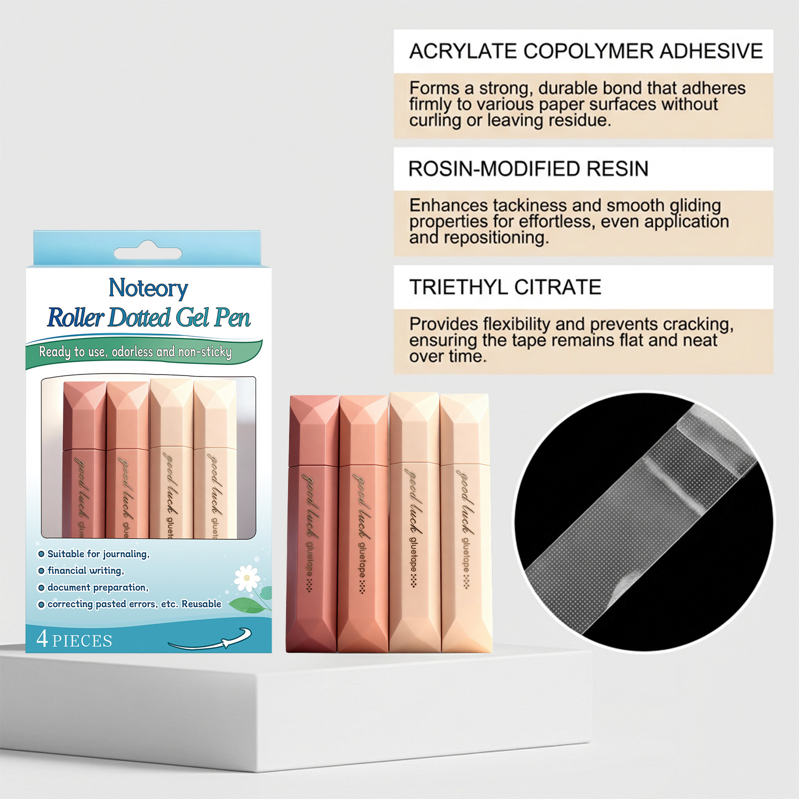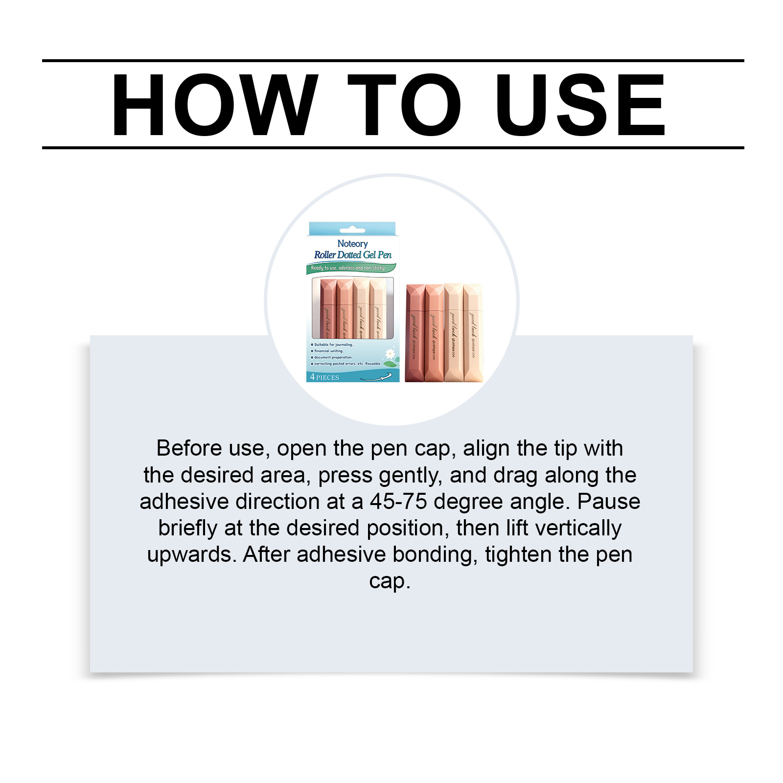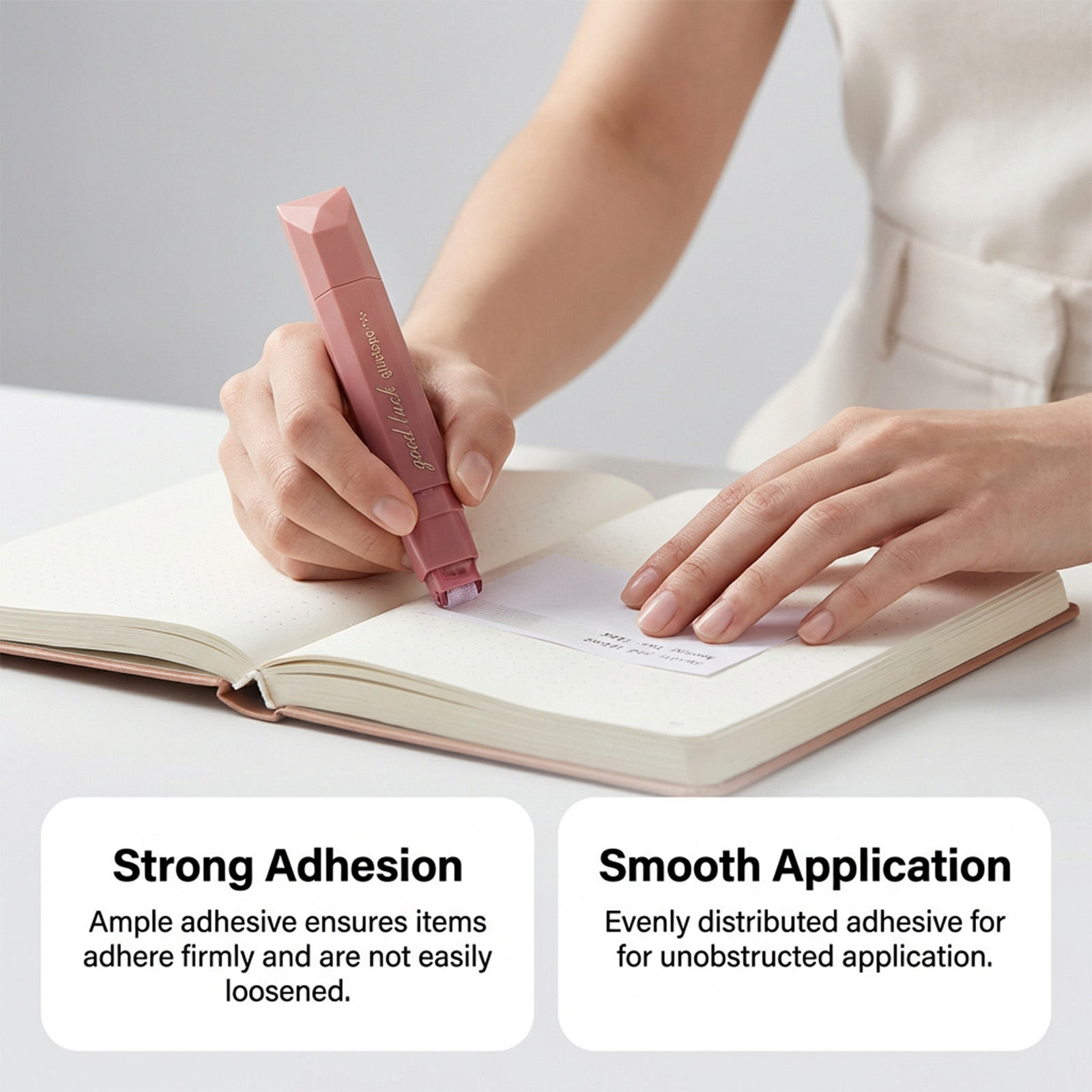 我们的双面点点胶笔套装,由丙烯酸酯类共聚物黏合剂、松香改性树脂精心调配而成。专为充足的粘合剂确保物品牢固附着,不易松脱设计。使用方法极为便捷:使用前,请打开笔盖,将笔尖对准目标区域,轻轻按压,并以 45 至75 度的角度沿胶粘方向进行拖动。在目标位置稍作停顿后,再垂直向上提起。完成胶粘后,请拧紧笔盖。并且它可以均匀分布的粘合剂,确保无阻碍的应用。