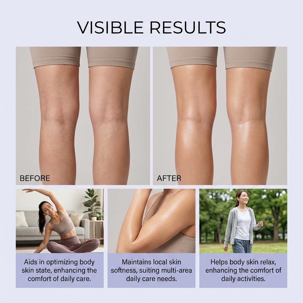 我们的腿部护理霜,由卡波姆、精氨酸精心调配而成。专为舒缓腿部酸疼设计。使用方法极为便捷:1.首先,彻底清洁并擦干皮肤。2.将适量本产品均匀涂抹于身体所需部位。3.轻柔按摩直至完全吸收。并且可以持久感受,放松状态,稳定体验,安全护理。