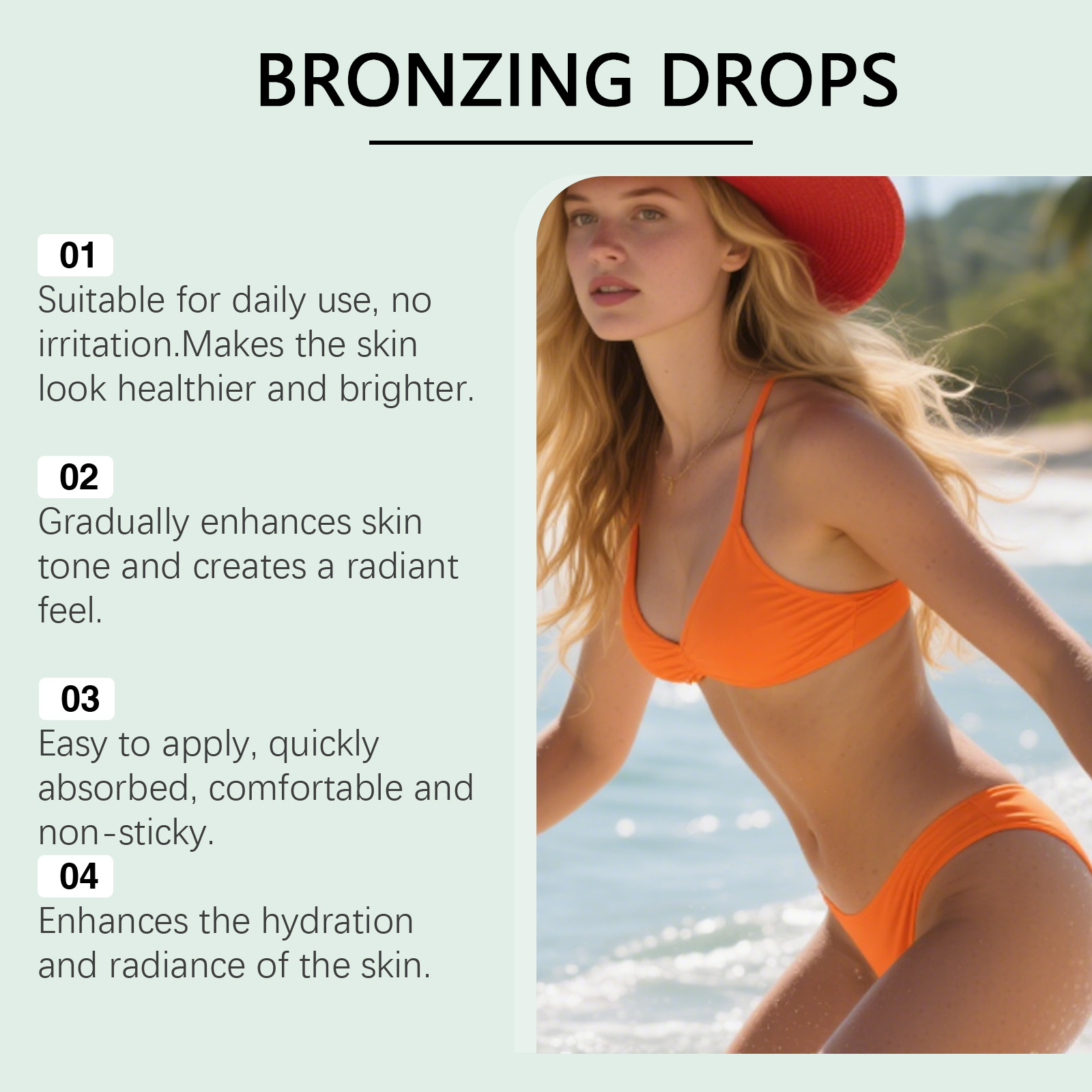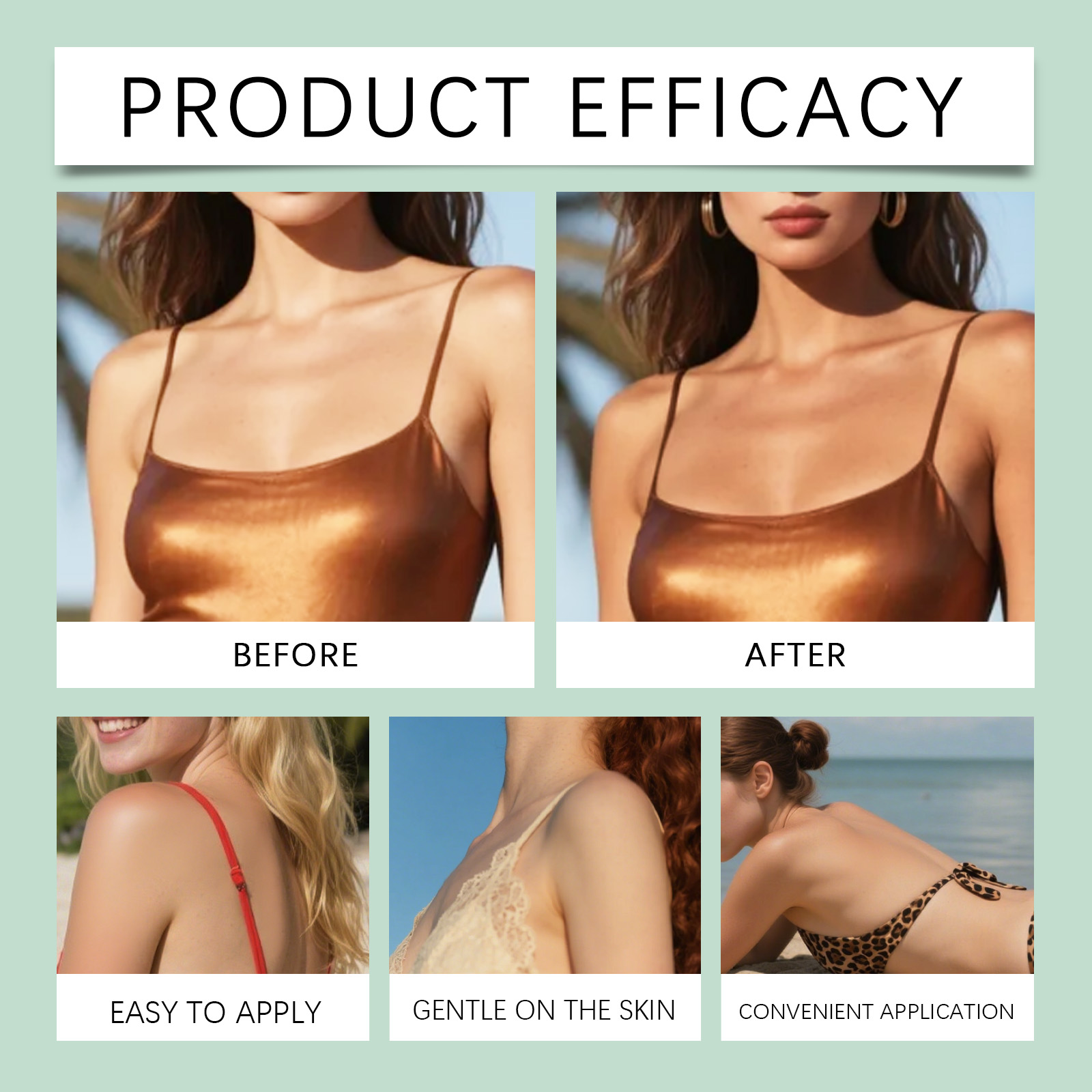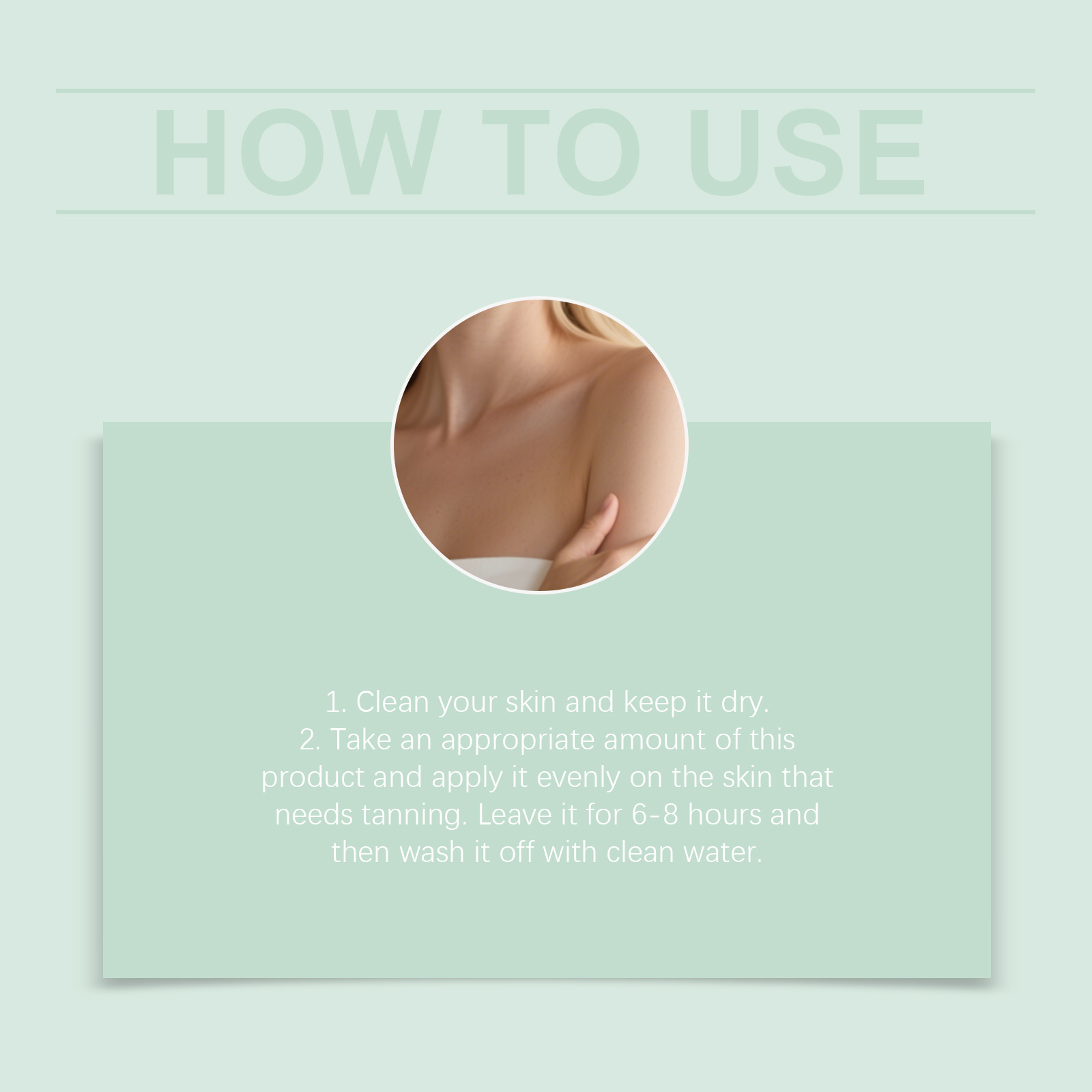 我们的美黑慕斯,由龙胆根提取物、马齿苋提取物精心调配而成。专为舒缓皮肤,并在使用过程中增强舒适感设计。使用方法极为便捷:1.清洁皮肤并保持干燥。2.取适量本产品,均匀涂抹于需要晒黑的皮肤上。静置6-8小时后,用清水洗净。并且可以适用于浅色和深色肤色,呈现自然妆效。