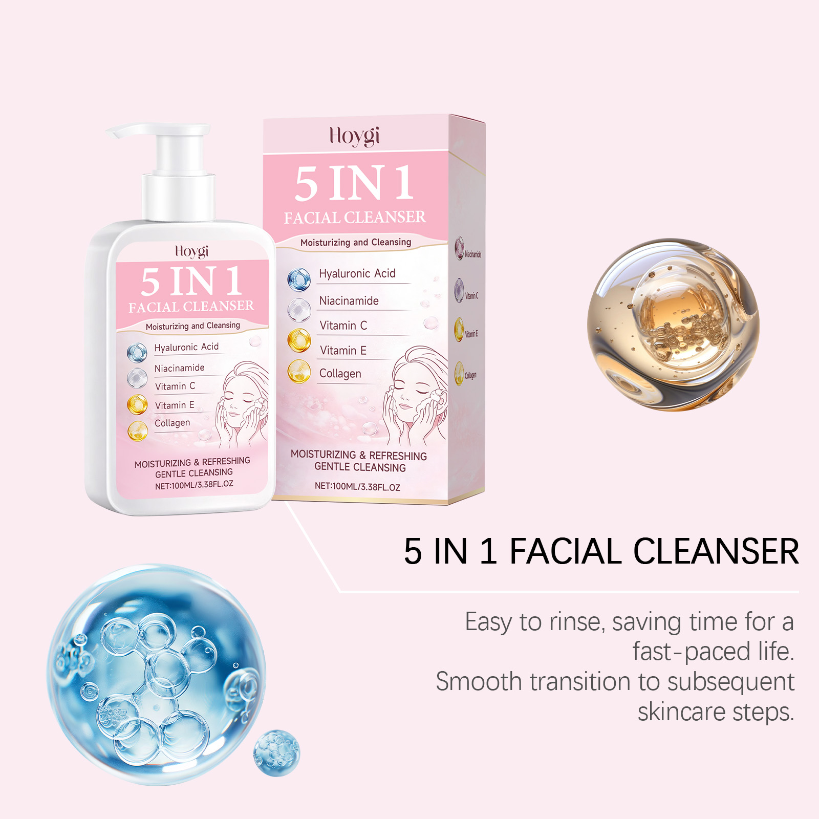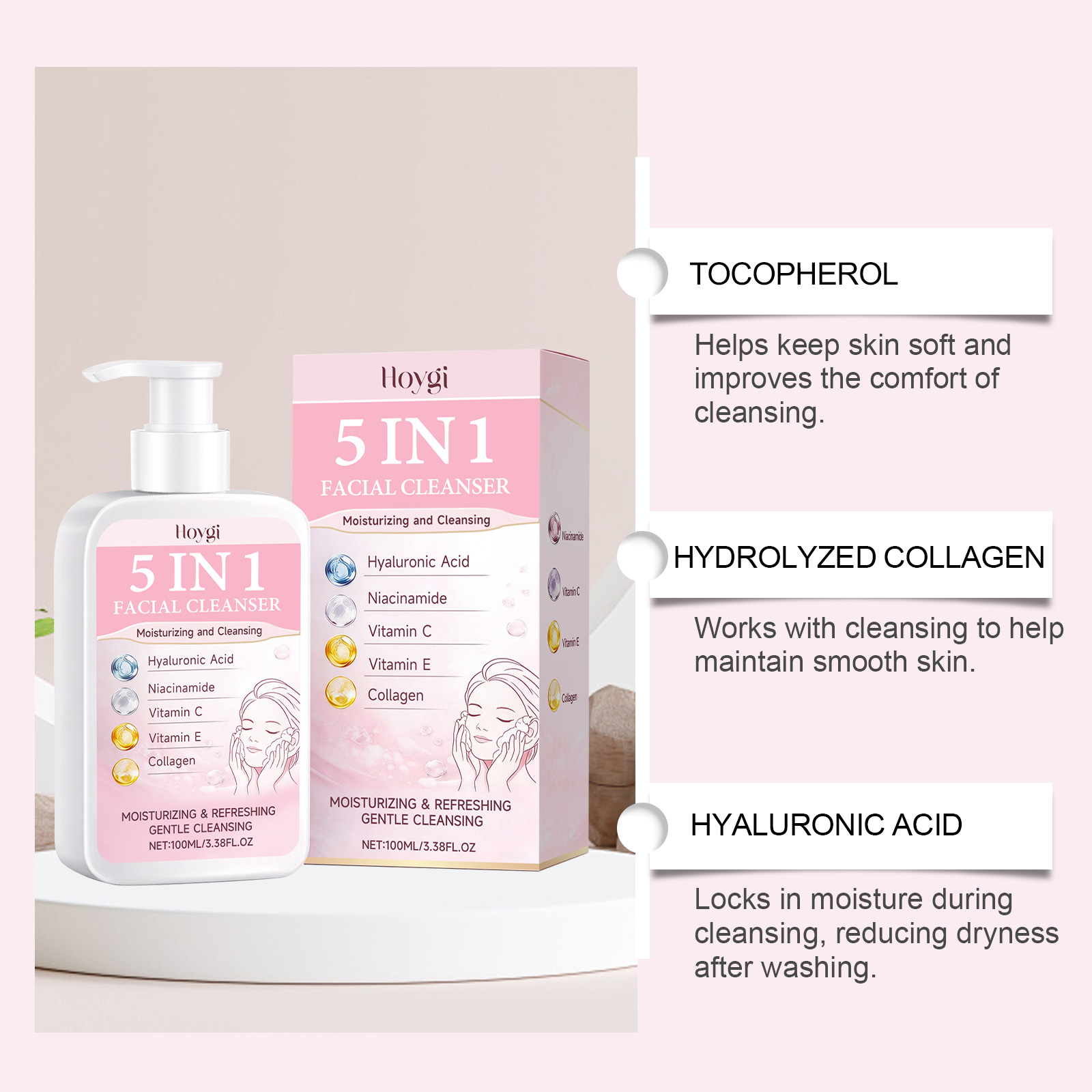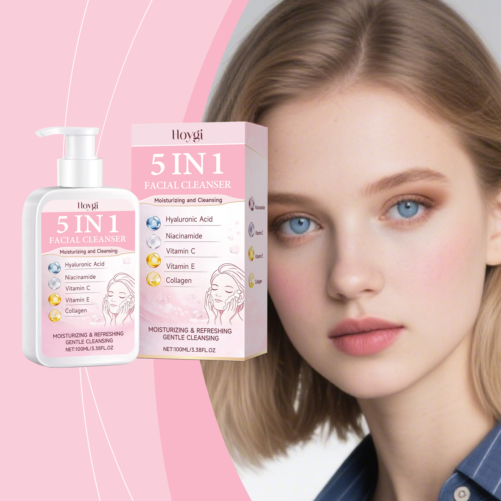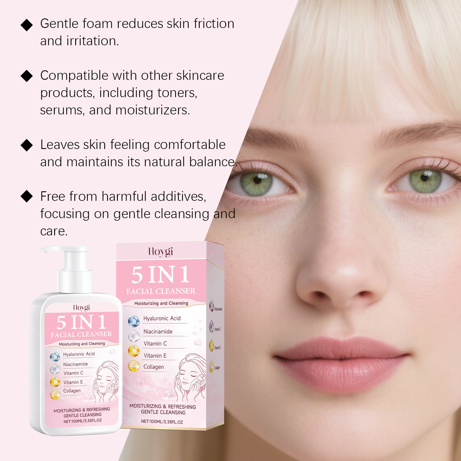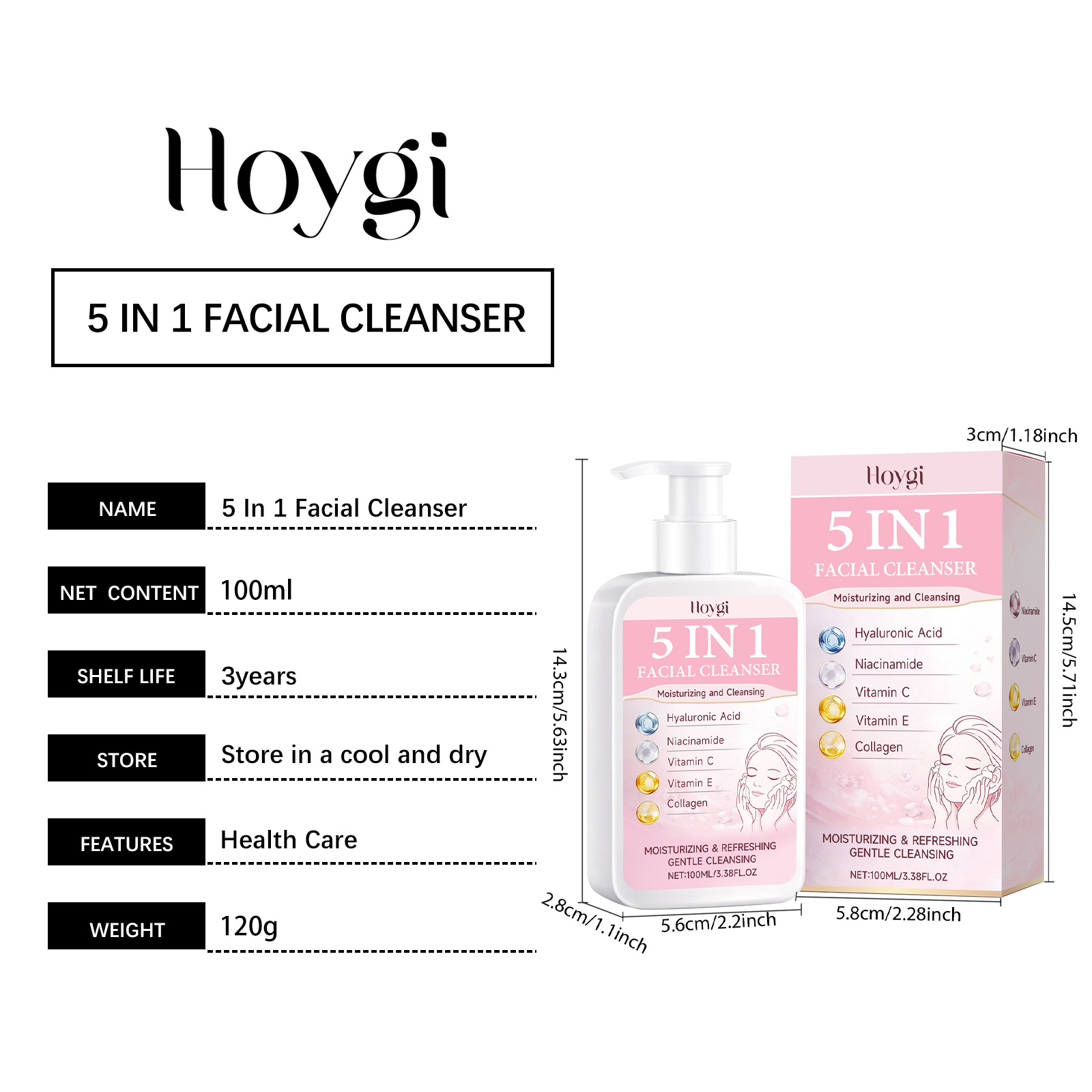 Hoygi Five-In-One Moisturizing Facial Cleanser, With Its Dense Foam And Light Texture, Provides A Gentle And Smooth Daily Cleansing Effect On The Face